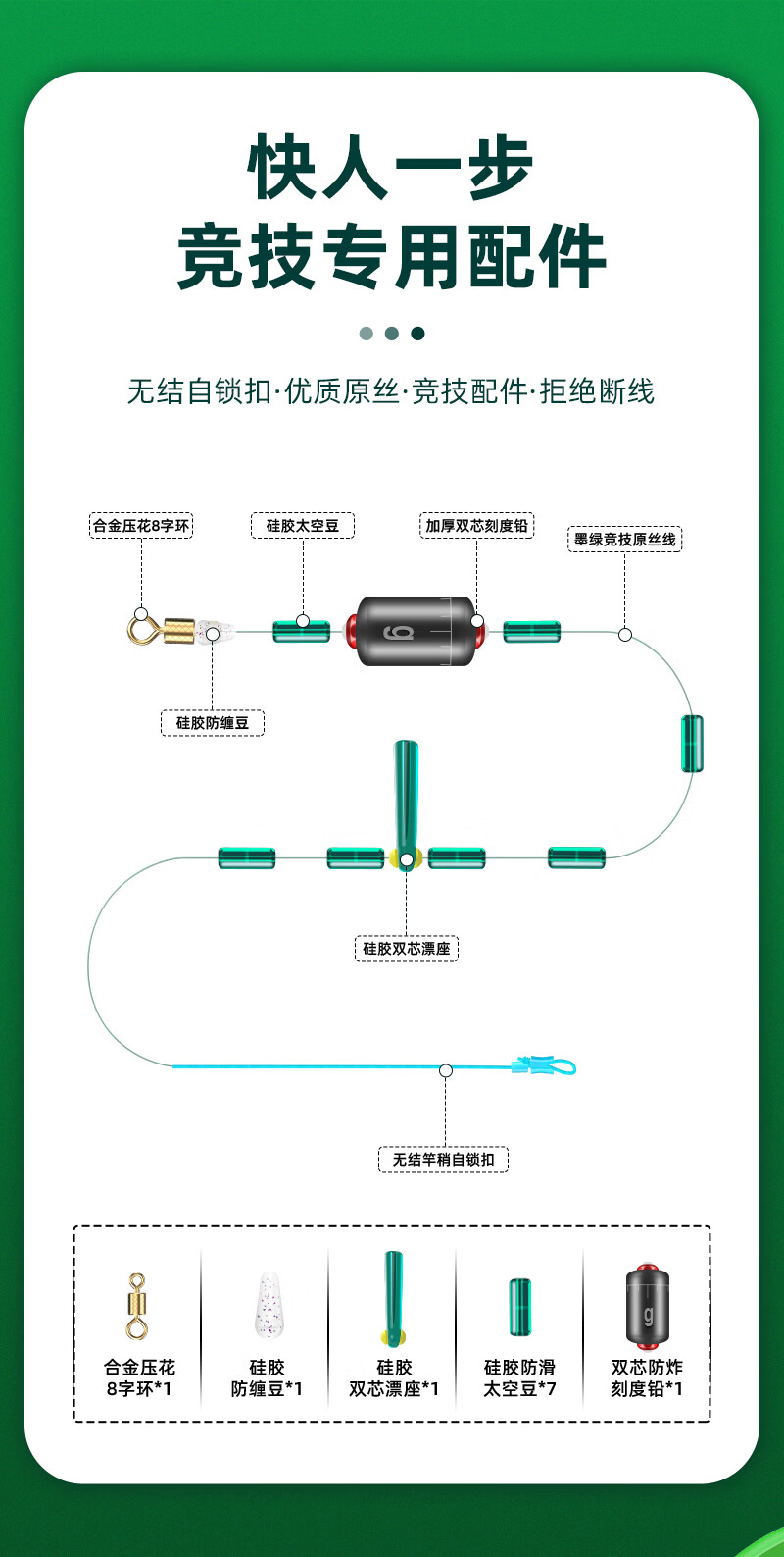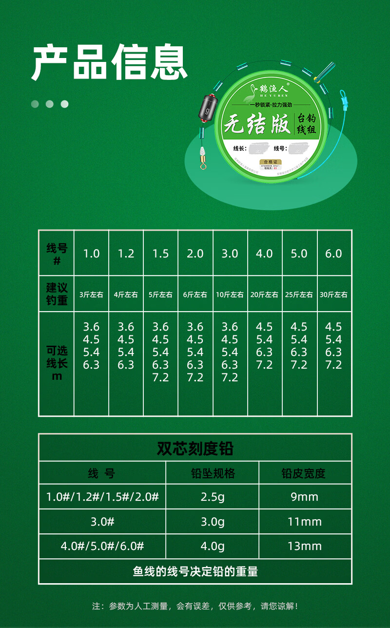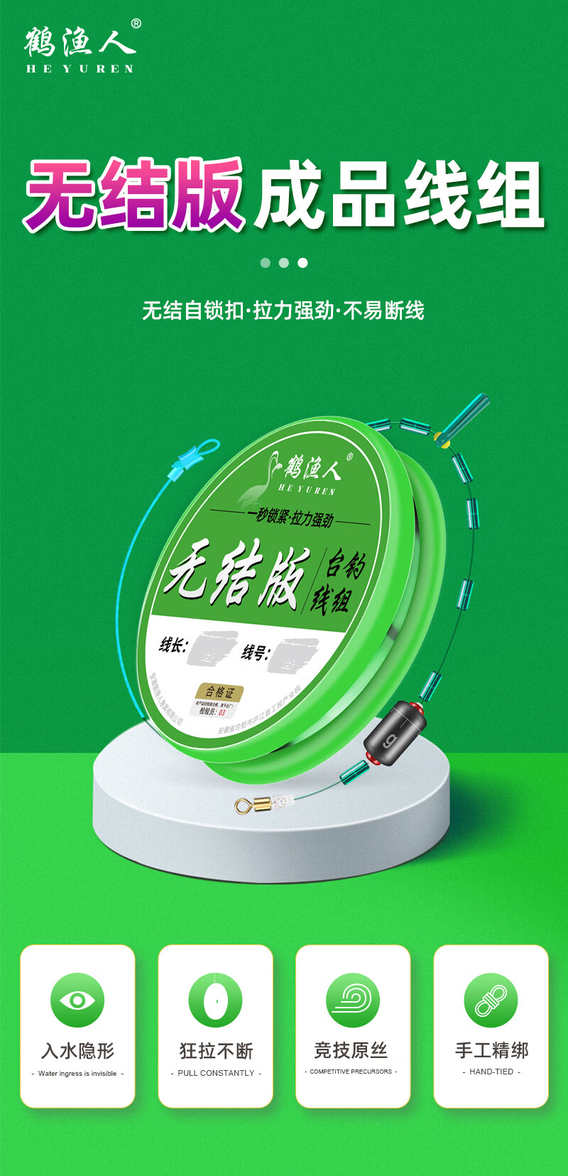 鹤渔人无结台钓线组成品绑好主线八字环套装强拉力加强竿稍快锁尼龙鱼线 6.3M无结台钓线组-4卷盒装 其他线号,联系客服咨询