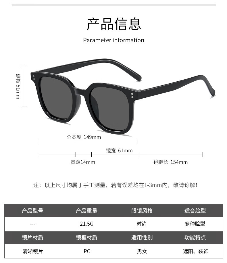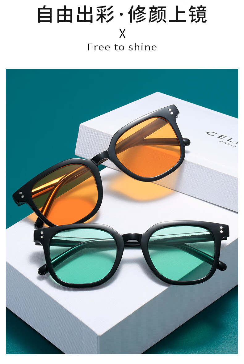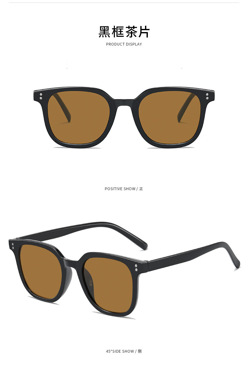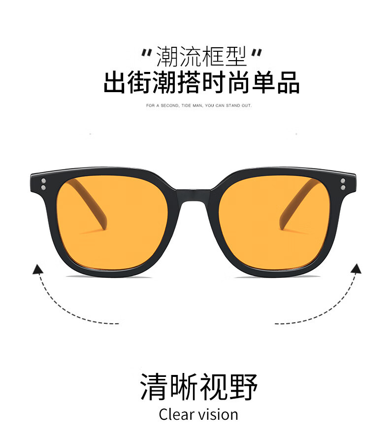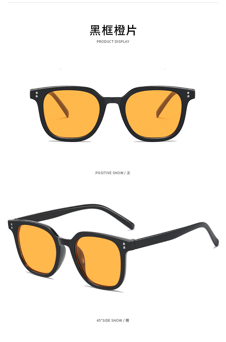 【直发】2024新款方形时尚潮流墨镜网红同款太阳镜黄色男女复古高 黑框灰片