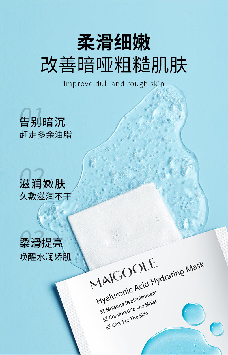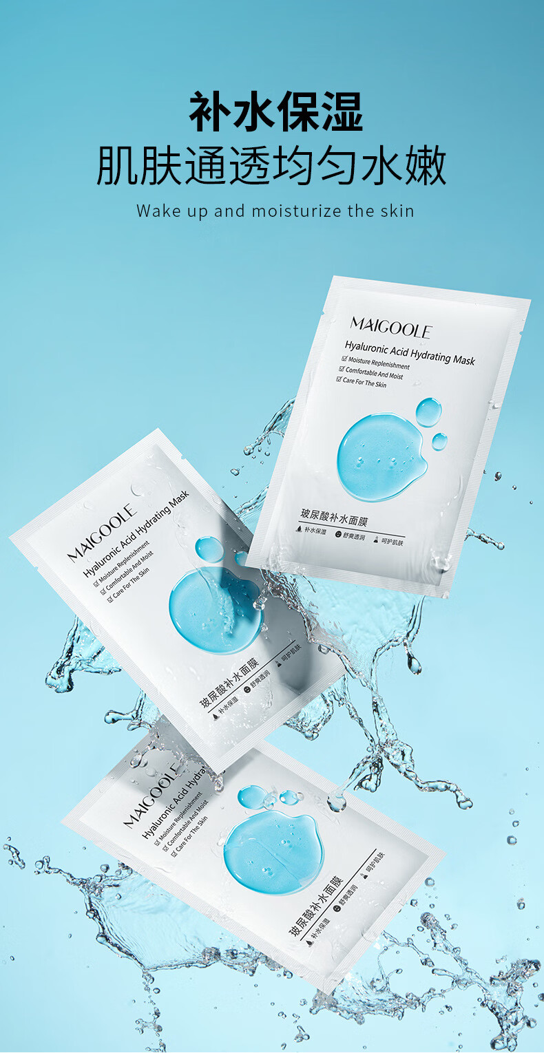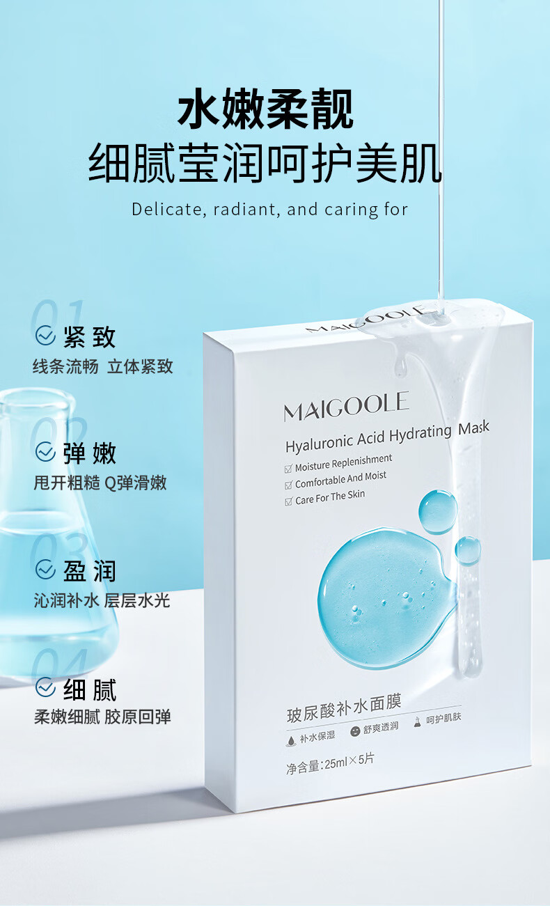 玫黛琳玻尿酸补水面膜肌肤补水保湿滋润嫩肤提亮熬夜暗沉修护面膜 玻尿酸补水面膜(5片/盒)