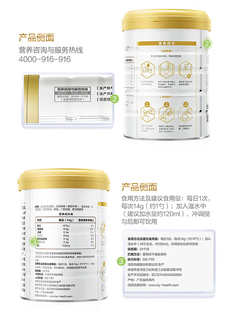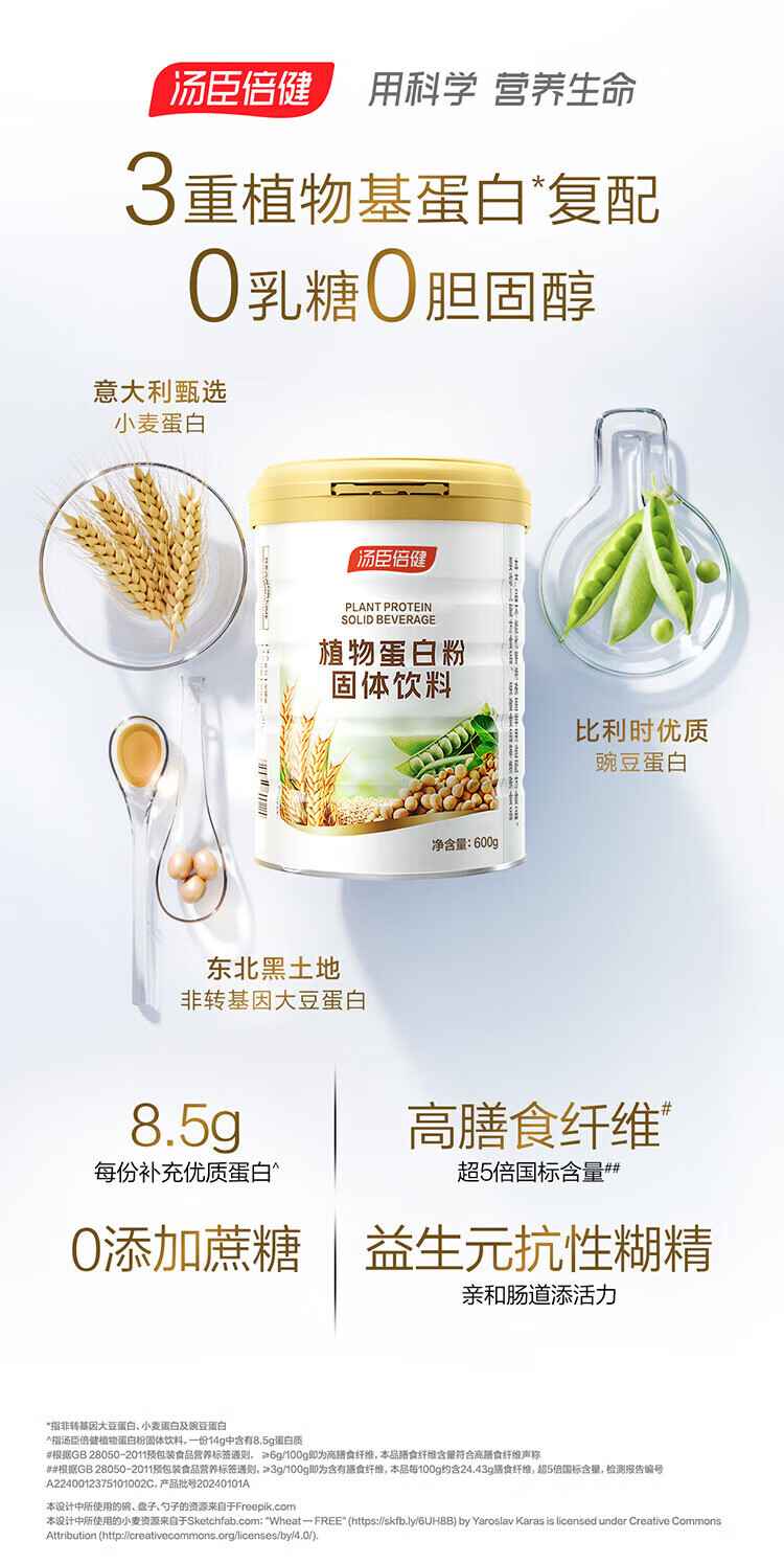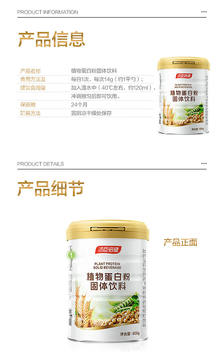 汤臣倍健植物蛋白粉 含膳食纤维 成人男女蛋白质营养品送长辈礼品 【礼盒装共1200g】 600g*2罐