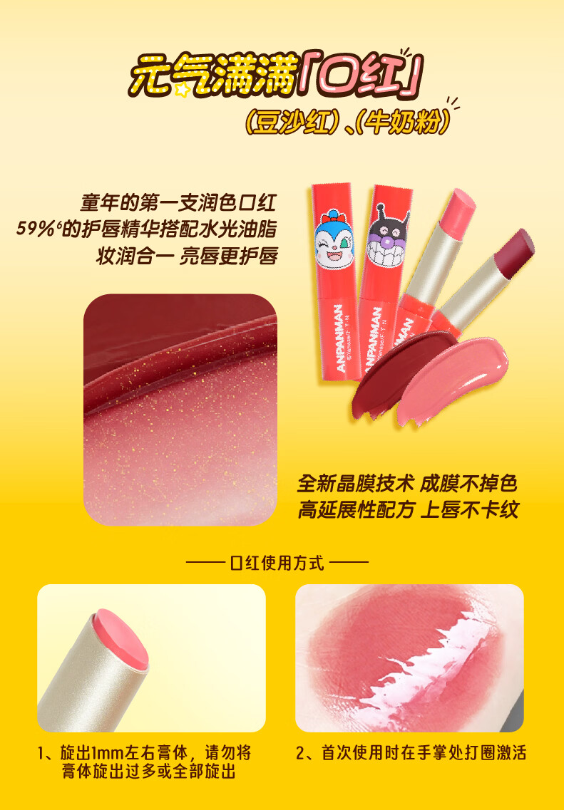 面包超人元气满满儿童化妆品彩妆礼盒 口红眼影唇膏【新年礼物送宝宝】 【勿拍】2、口红初次使用在手掌轻柔打圈激活水光妆效