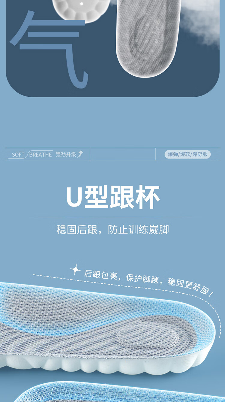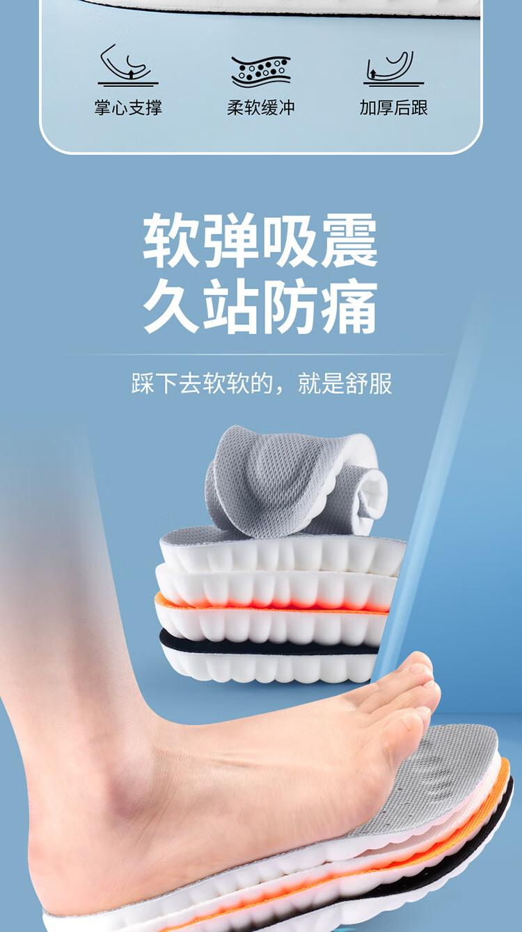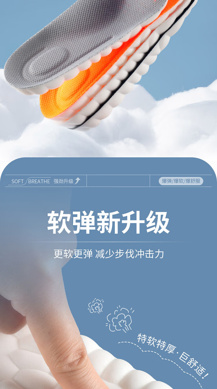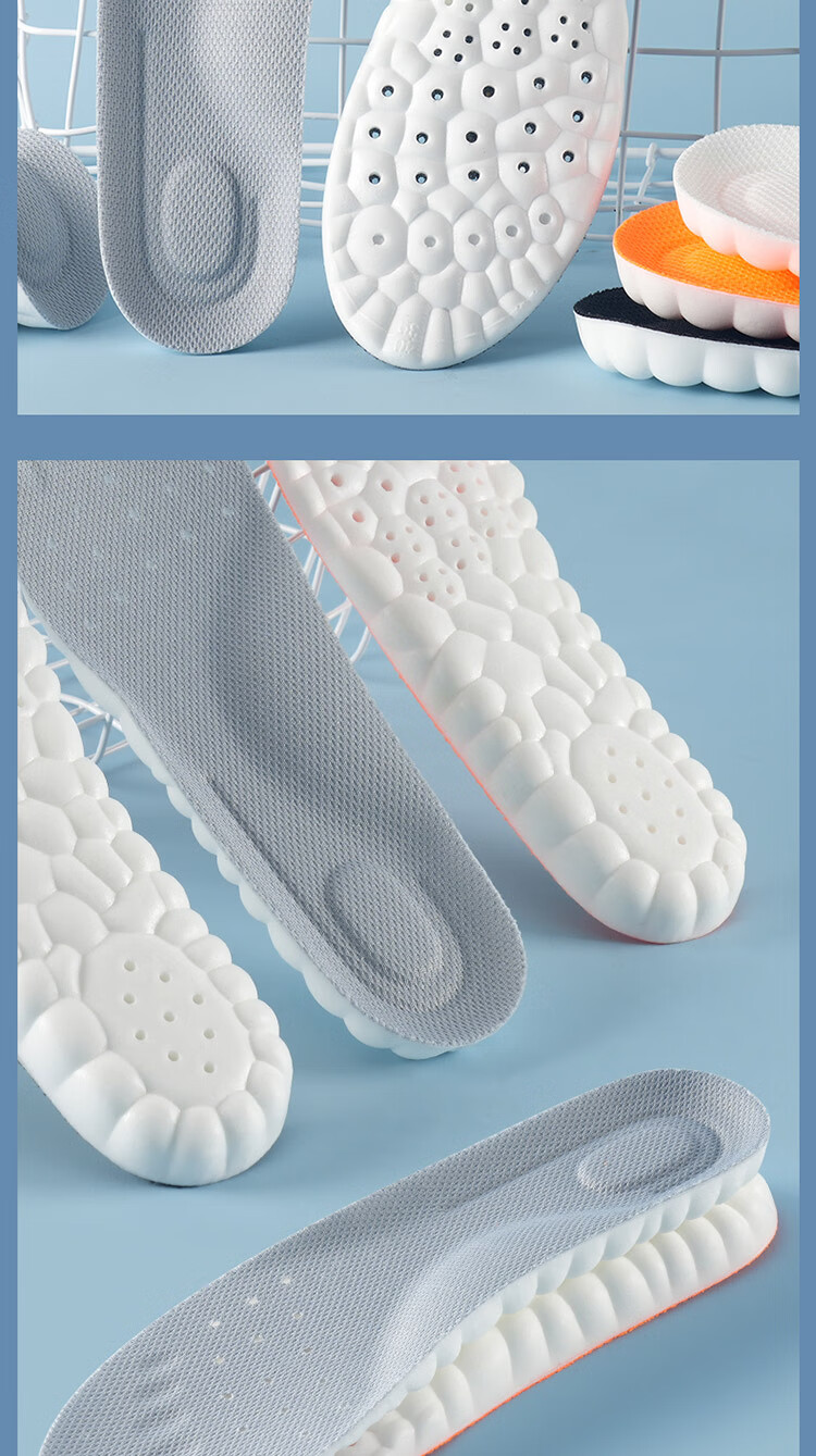 足印部落2双装 踩屎感鞋垫男软弹减震站久不累女吸汗透气防臭运动鞋鞋垫 2双装-灰色】软弹减震丨踩屎感 4142码