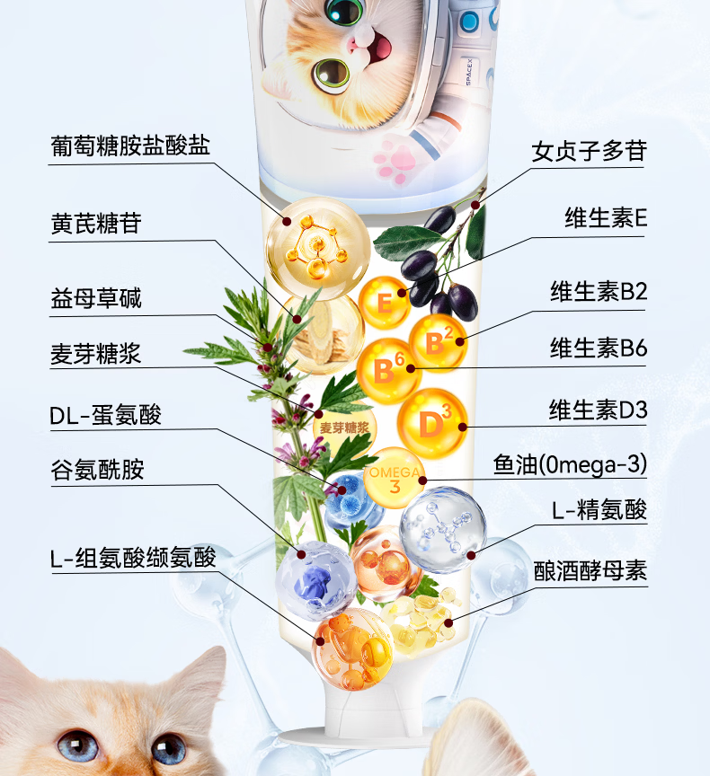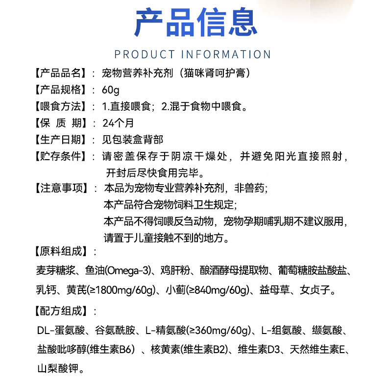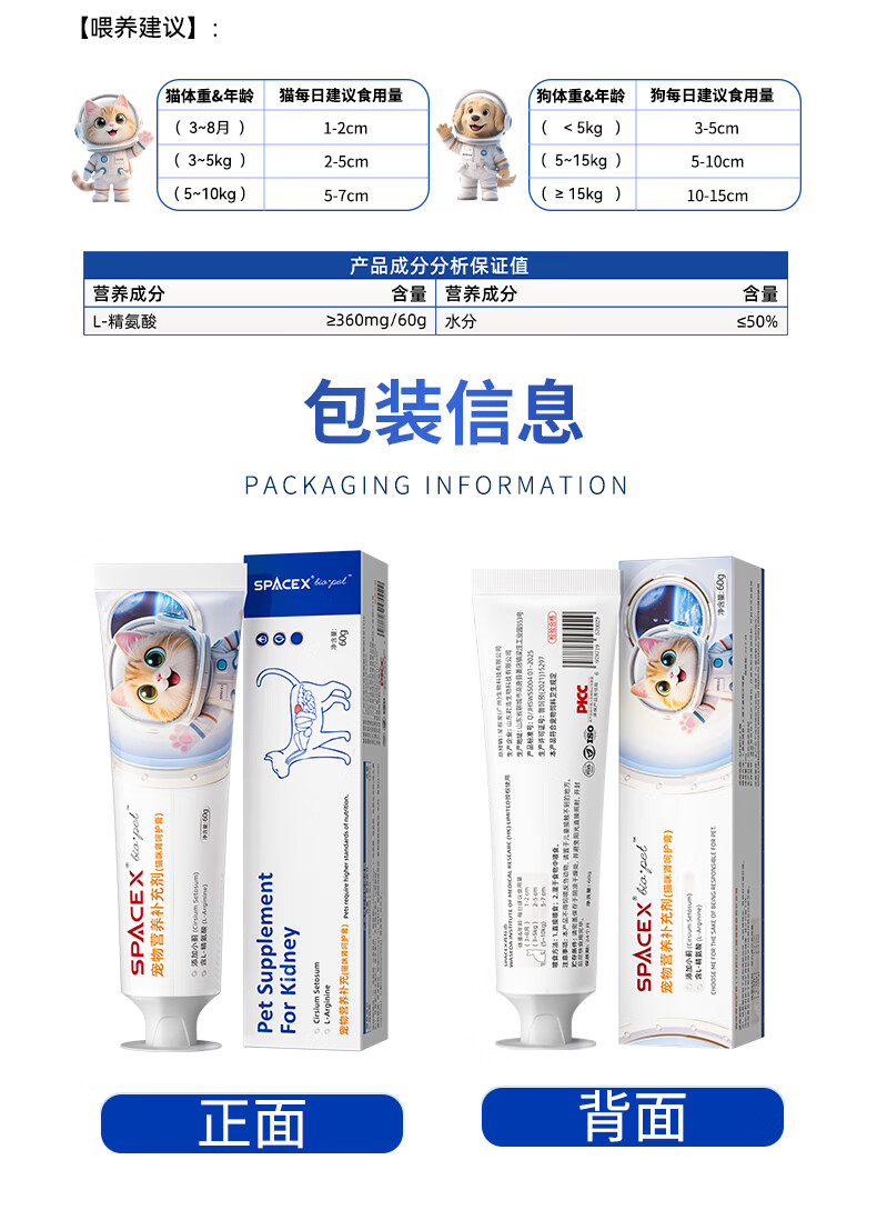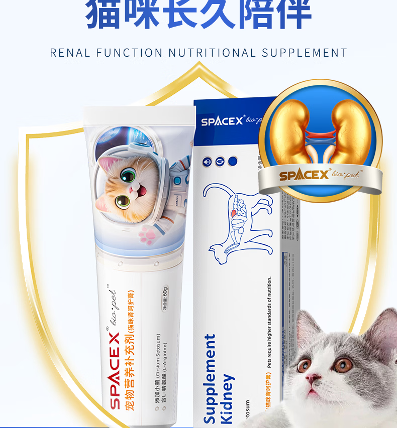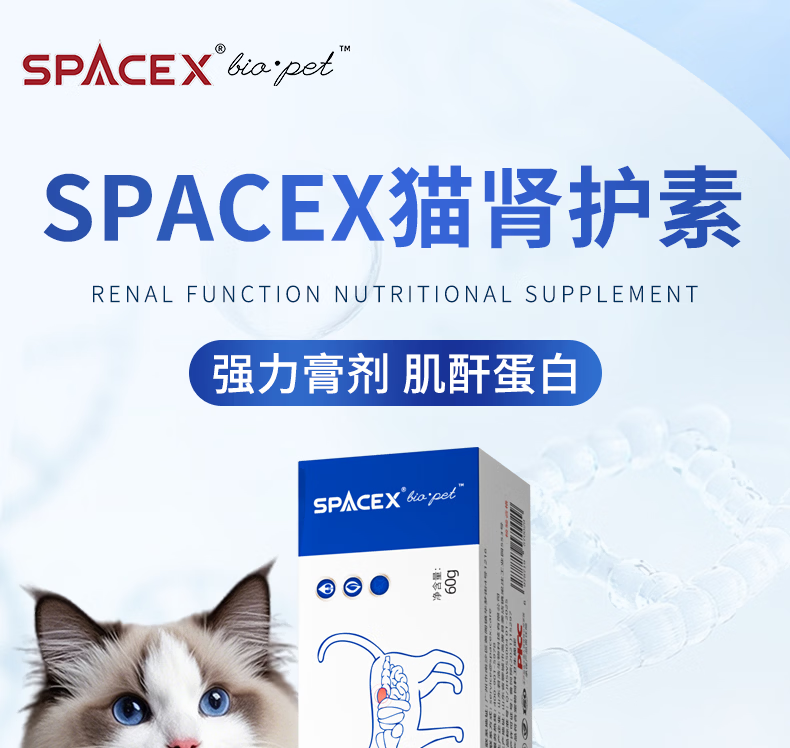 Spacex猫咪护肾肌酐尿蛋白肾小球肾脏营养补充剂胺肾宠物滤过功能衰降 【3支周期装】买2送1立省252元
