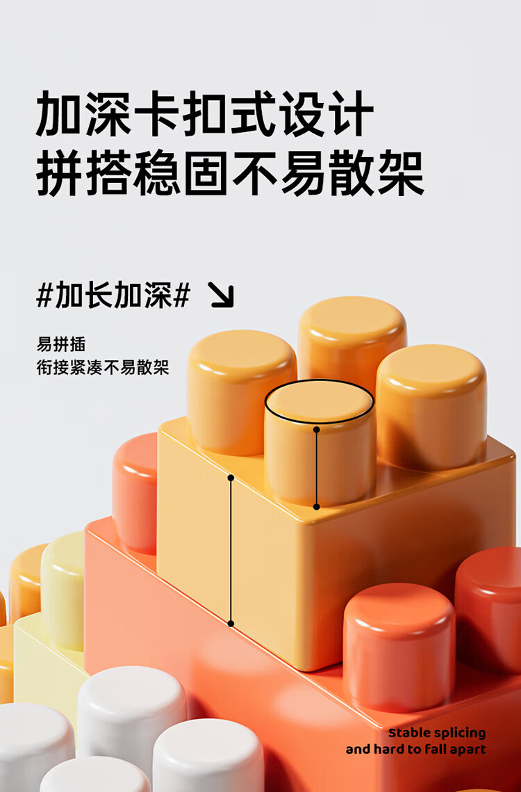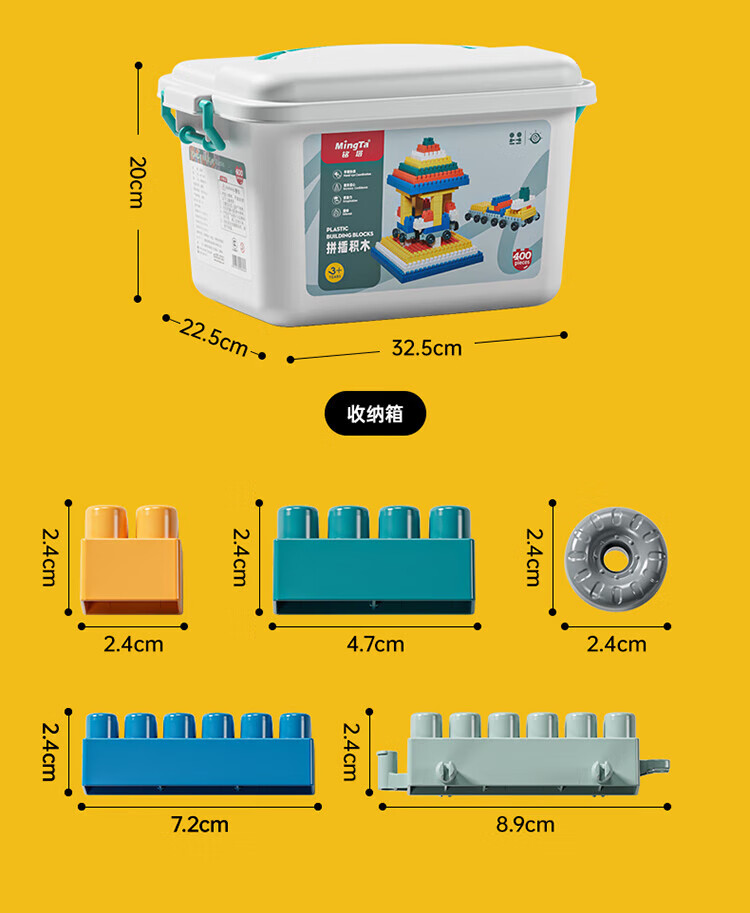 铭塔拼插儿童积木玩具婴幼立体拼装智力启蒙大颗粒模型生日礼物 200粒中颗粒拼插积木 配收纳桶