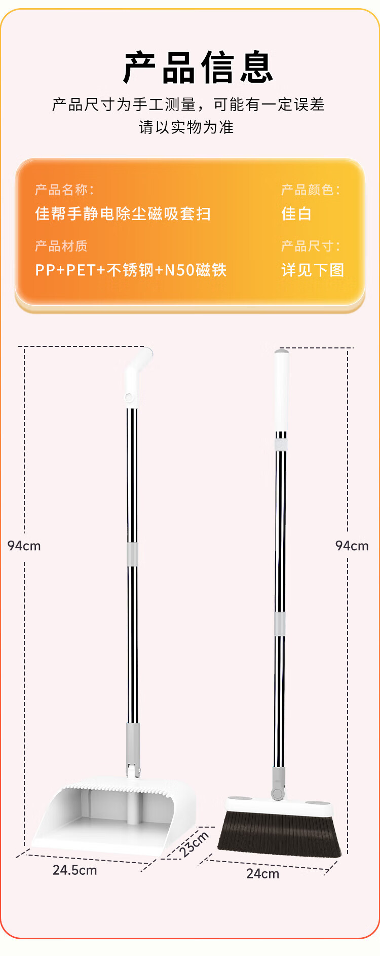 佳帮手扫把簸箕套装家用扫地扫帚两件套静电除尘防风笤帚梳齿畚箕 【包邮】【壁挂套装】磁吸扫把+卡座 1个