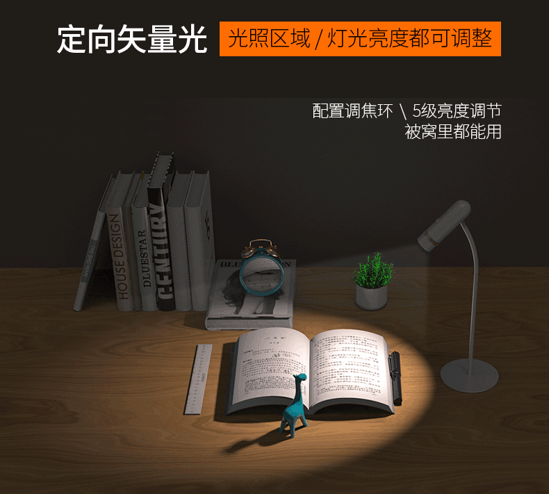 秒舒康学生夹子台灯学习护眼小夜灯宿舍床头灯可充电长续航便携手电筒 K1长续航+五档可调【夹子灯款】