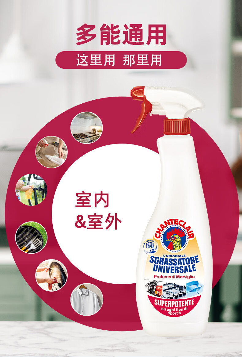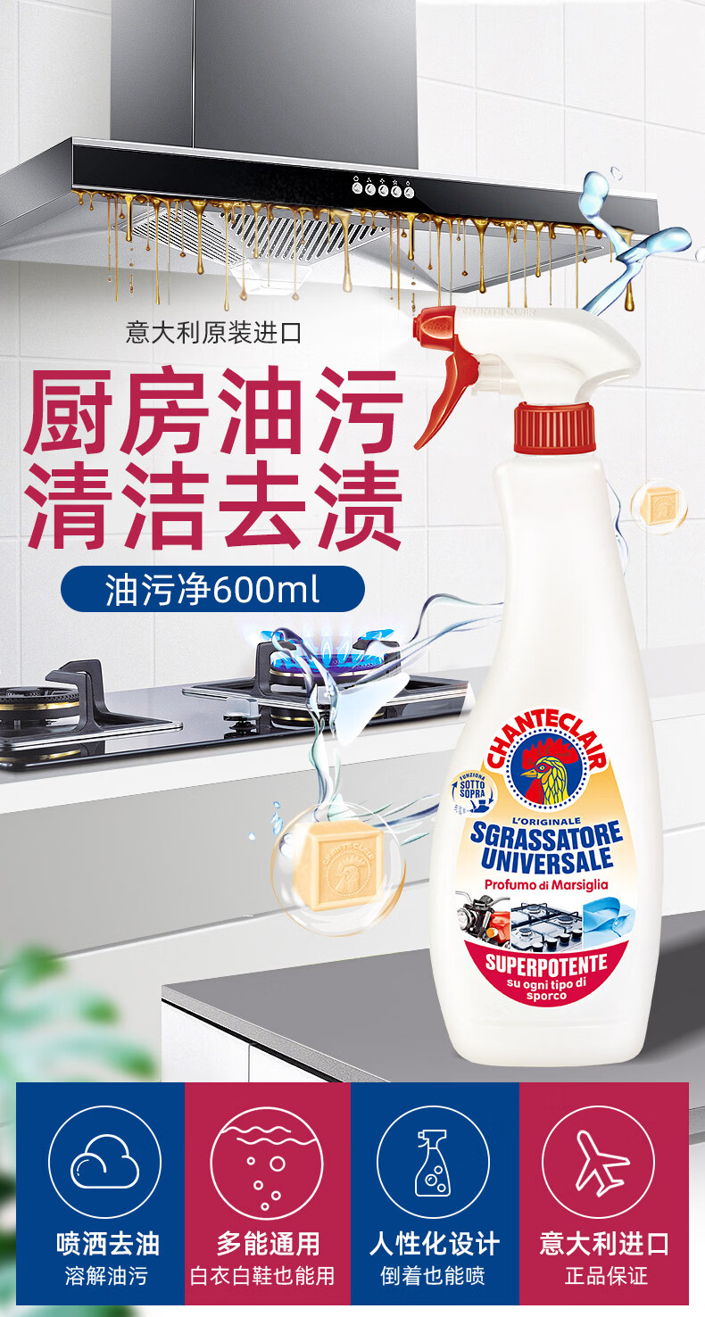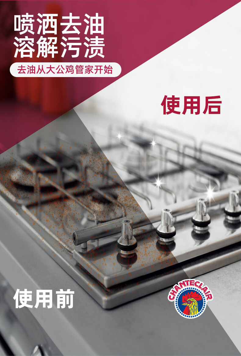 大公鸡管家CHANTECLAIR 油污清洁剂 厨房油烟机清洗剂 大公鸡油污净 马赛香*3瓶