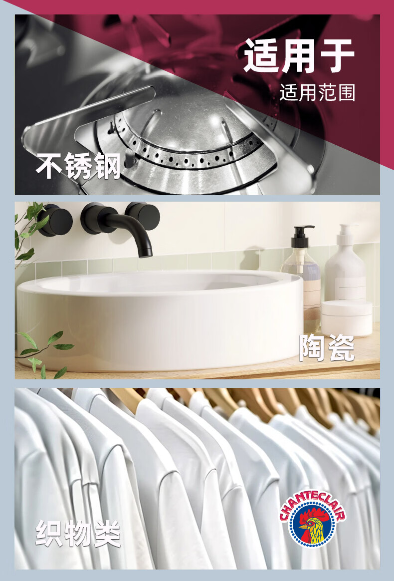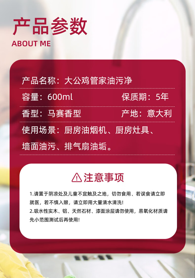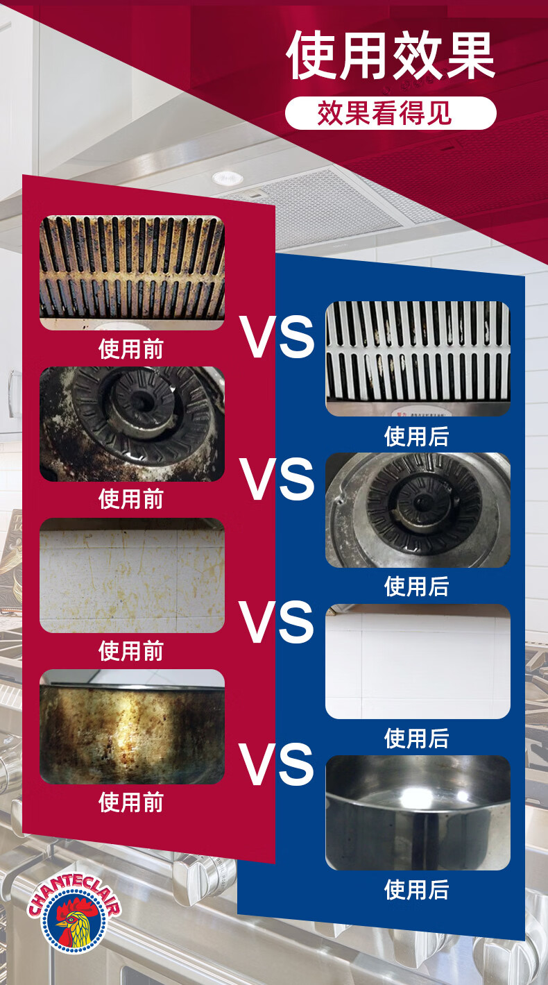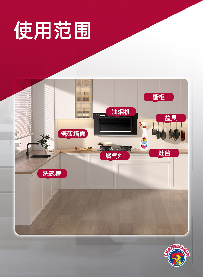 大公鸡管家CHANTECLAIR 油污清洁剂 厨房油烟机清洗剂 大公鸡油污净 马赛香*3瓶