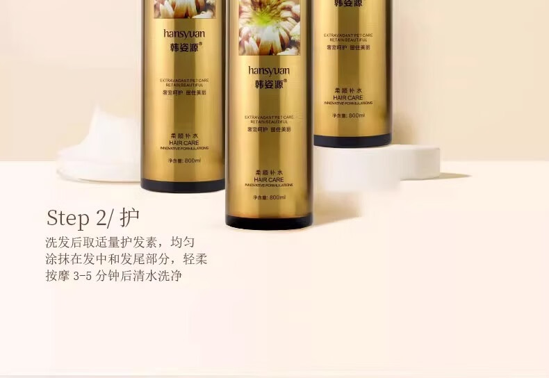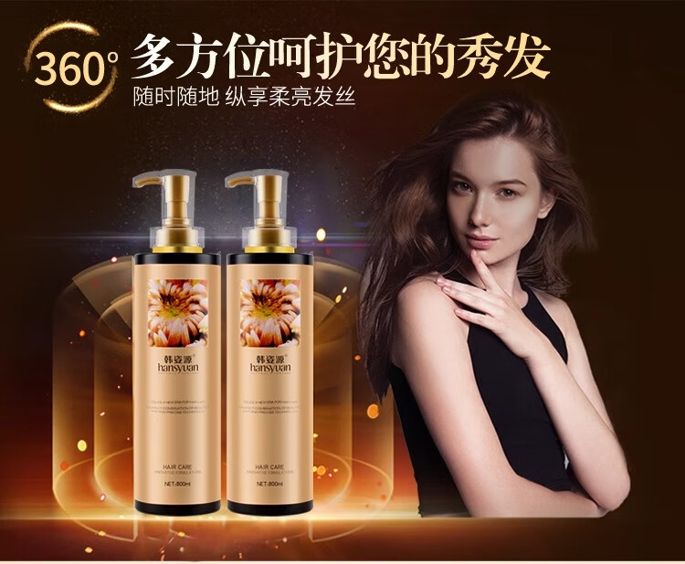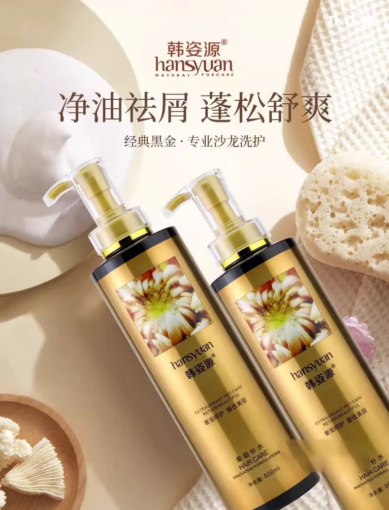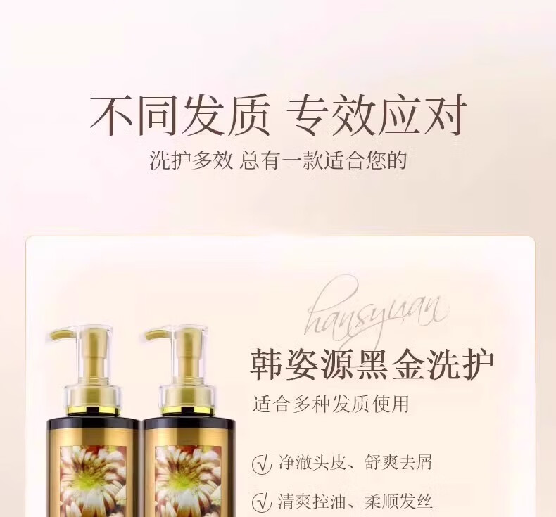 韩姿源营养洗发水大金黑金调理霜去屑控油蓬松护发素 控油清新洗护套装 800ml*2瓶