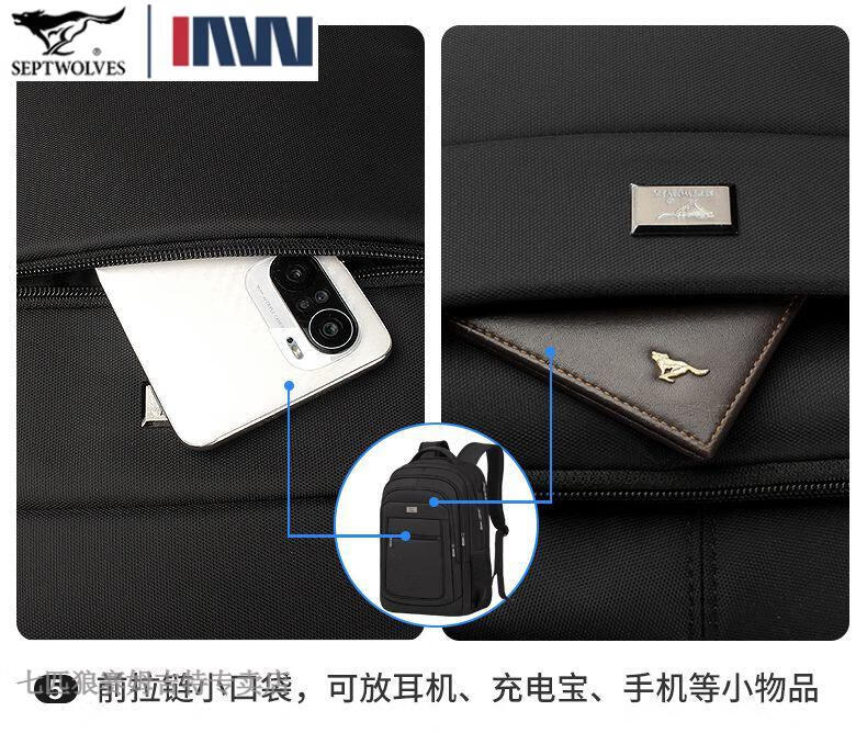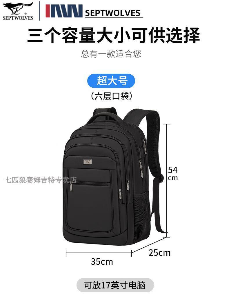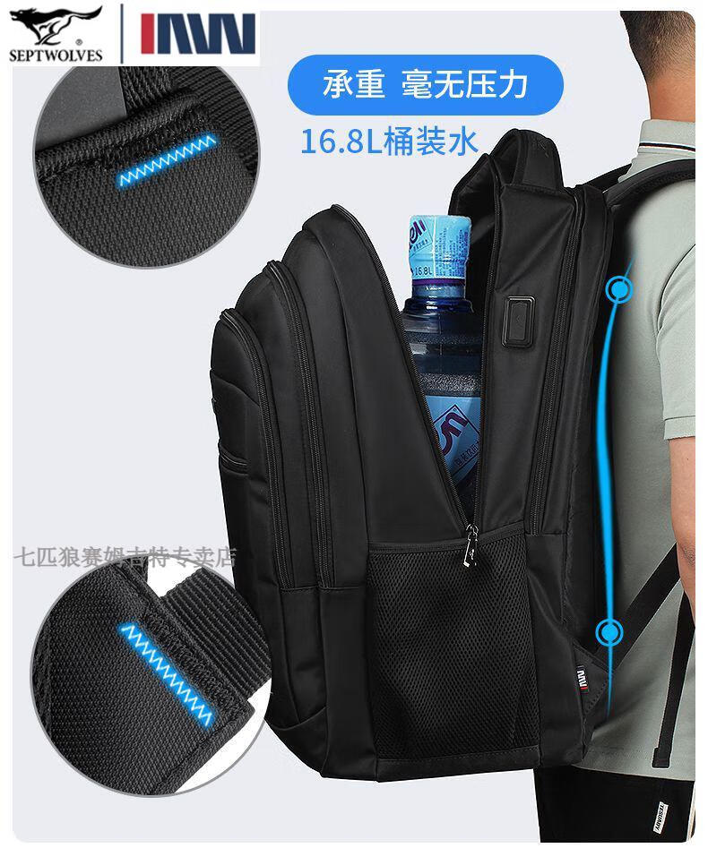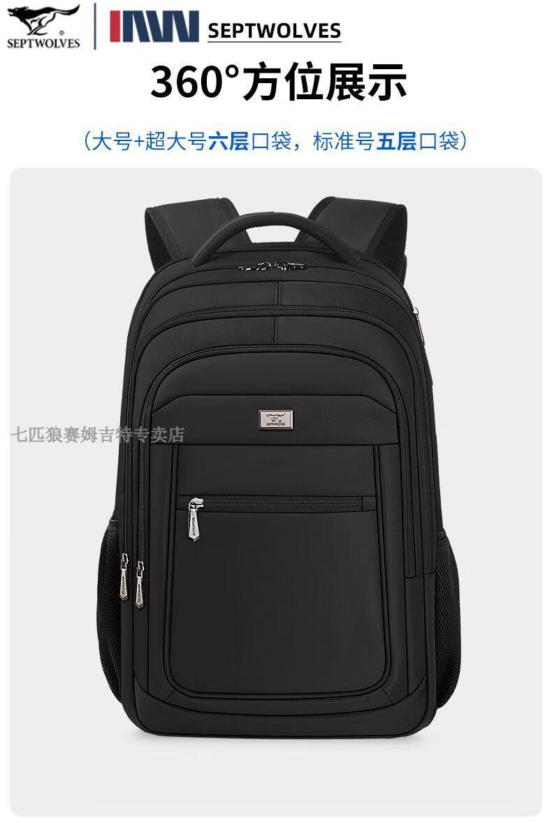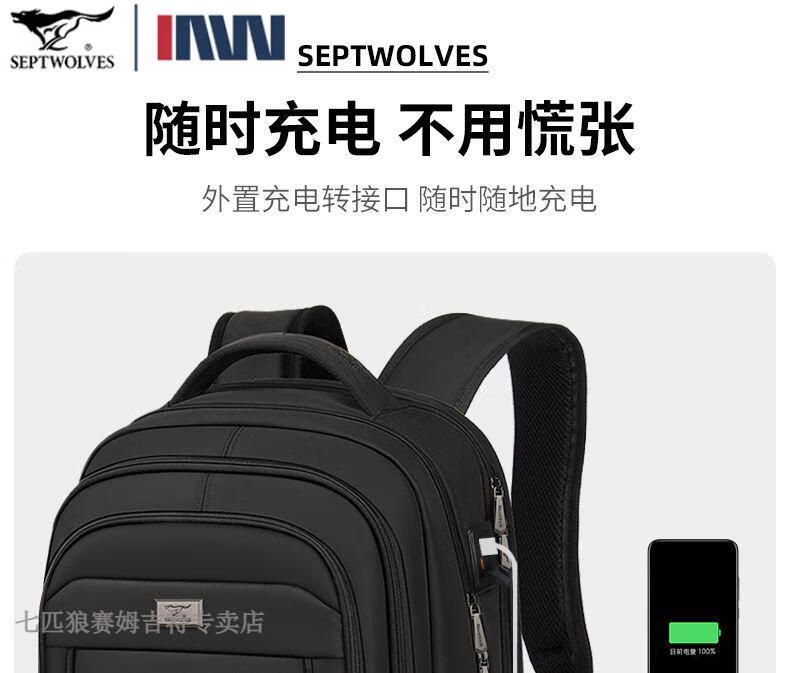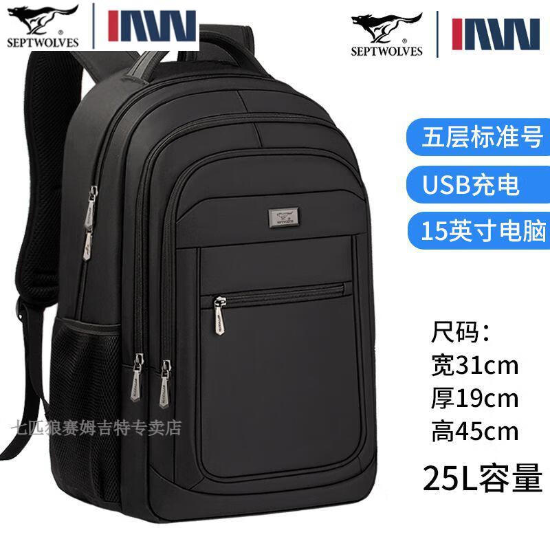 七匹狼(SEPTWOLVES)双肩包男士大容量背包2025年新款商务出差旅行电脑包男款书包 五层标准号(25L)