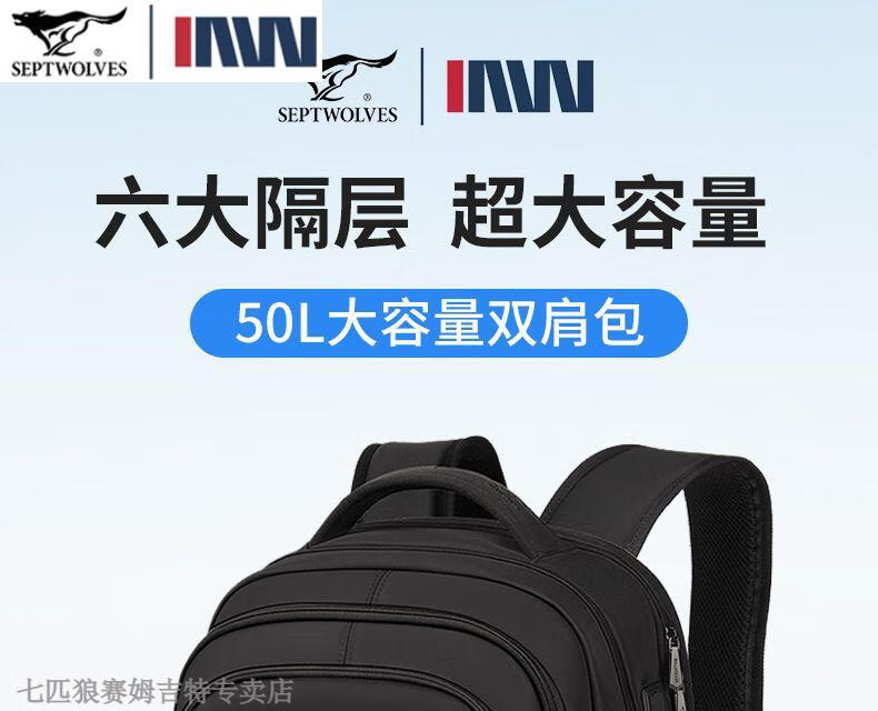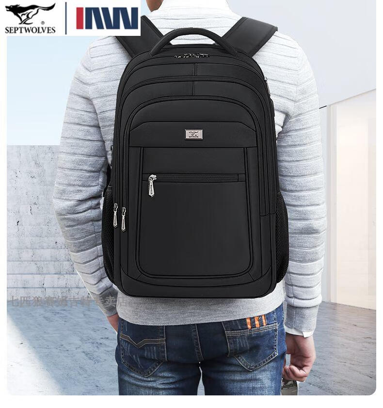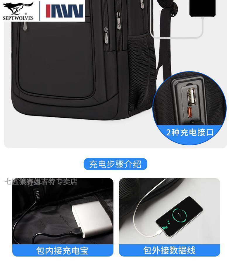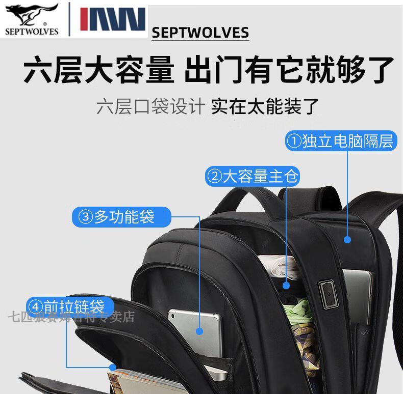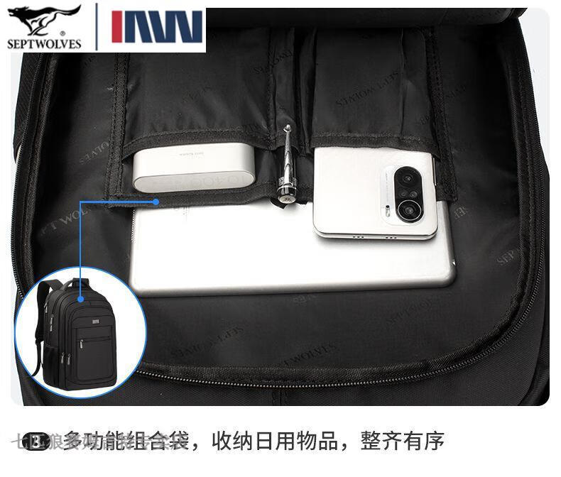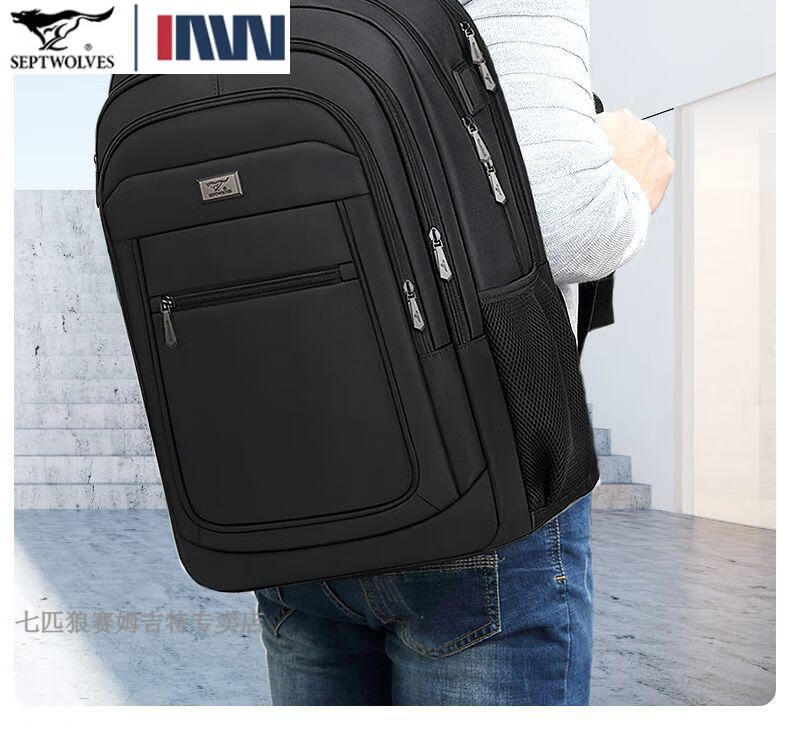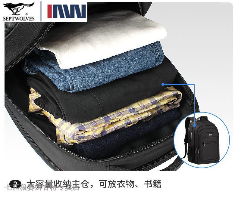 七匹狼(SEPTWOLVES)双肩包男士大容量背包2025年新款商务出差旅行电脑包男款书包 五层标准号(25L)