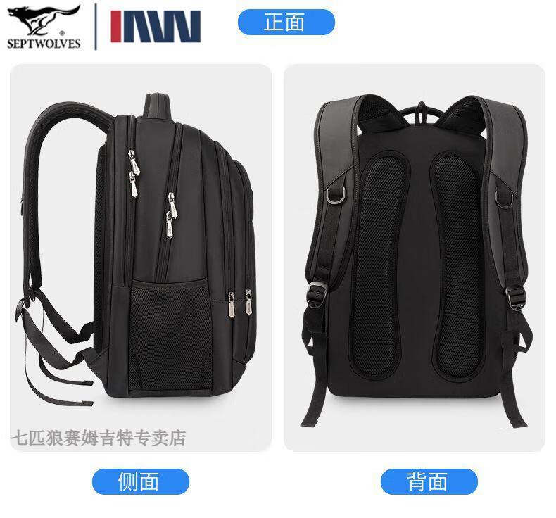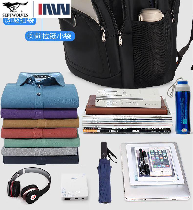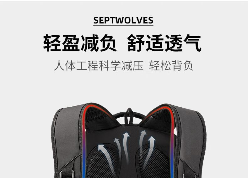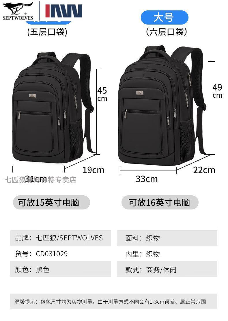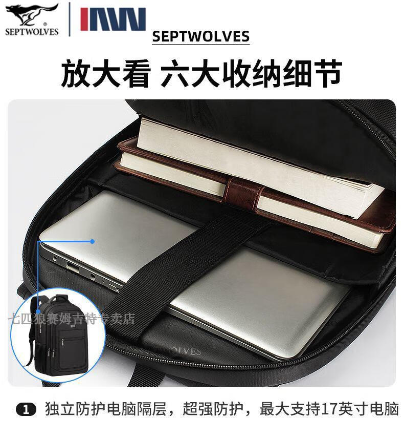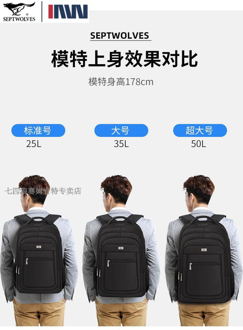 七匹狼(SEPTWOLVES)双肩包男士大容量背包2025年新款商务出差旅行电脑包男款书包 五层标准号(25L)