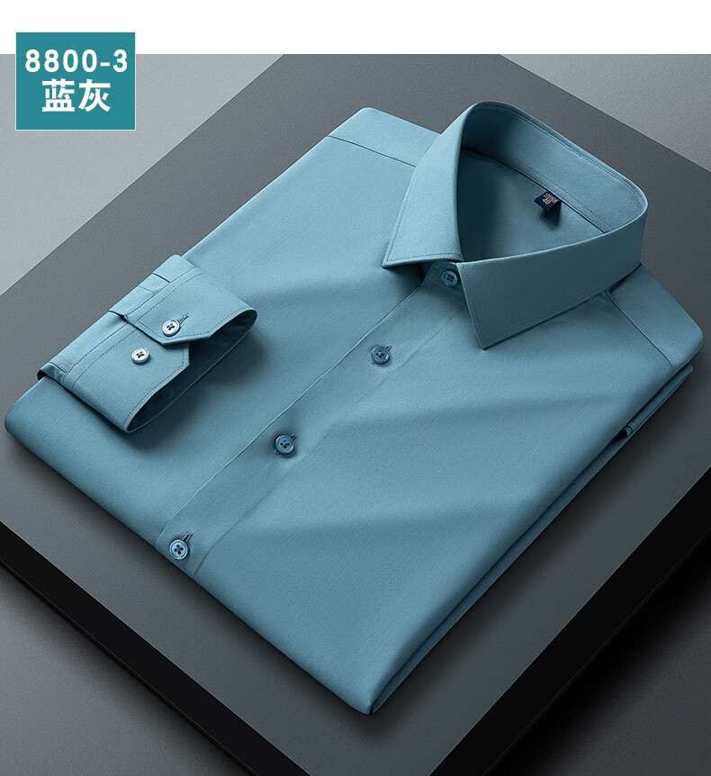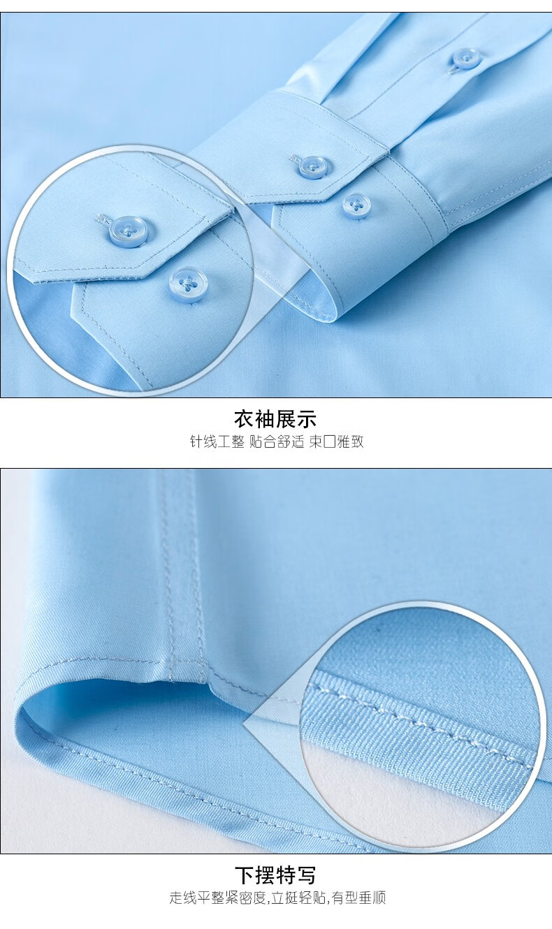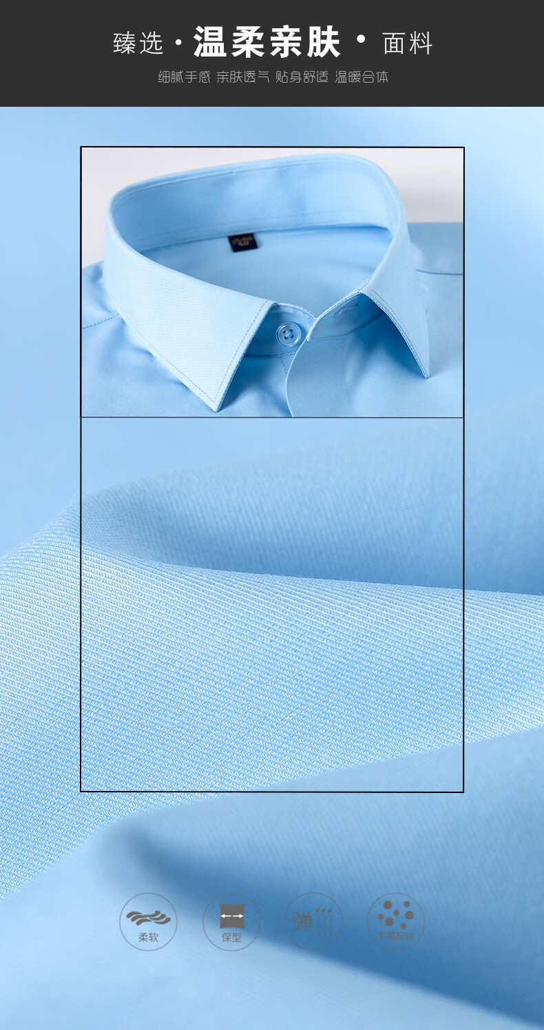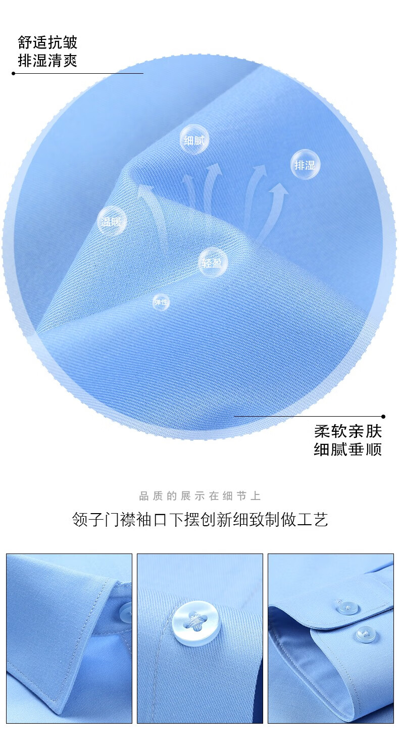 培罗蒙【竹纤维抗皱】男士长袖衬衫免烫男装商务休闲轻正装结婚礼衬衣男 蓝色 43