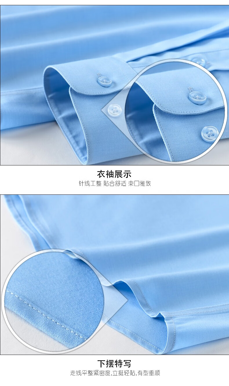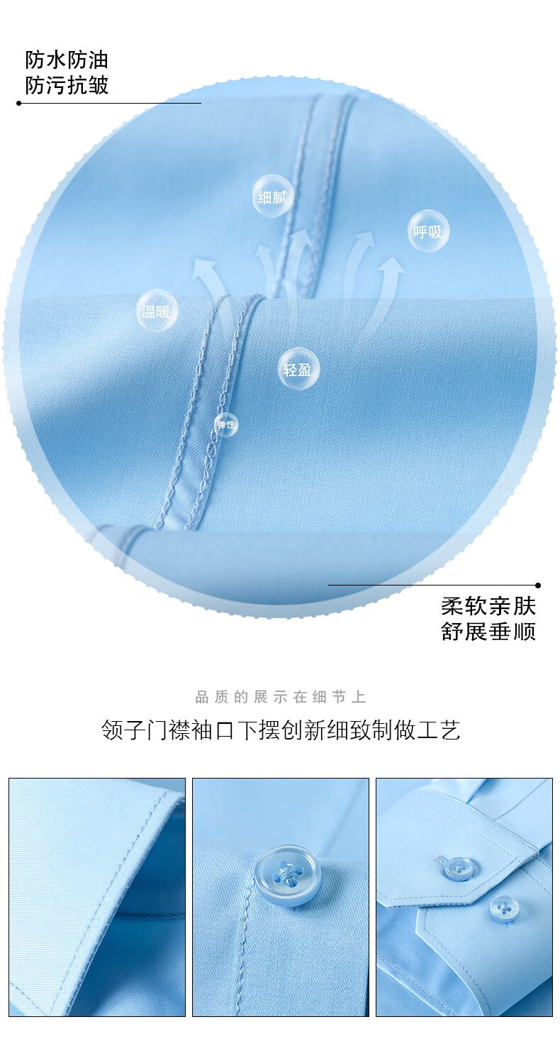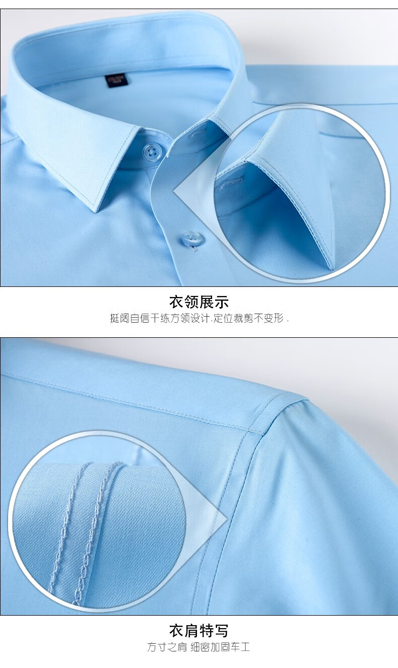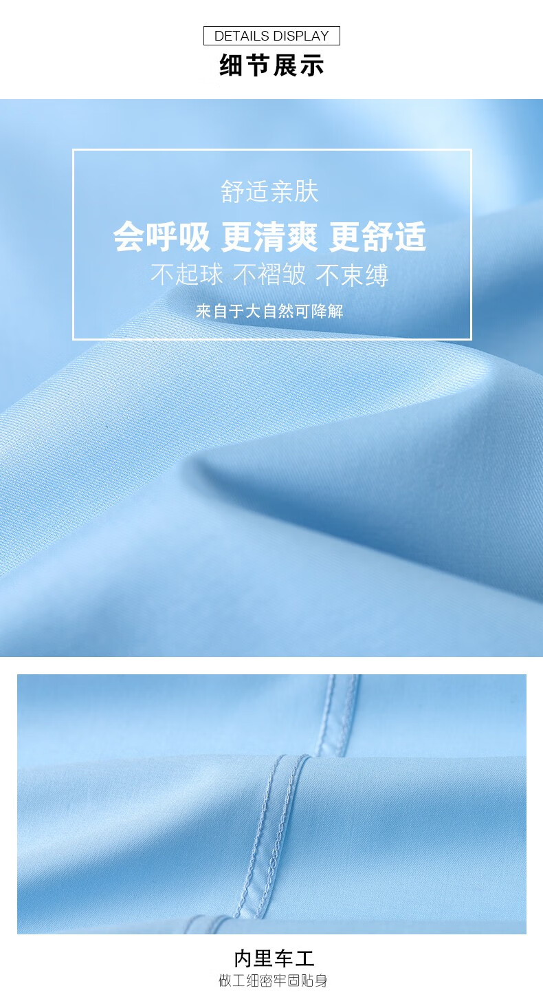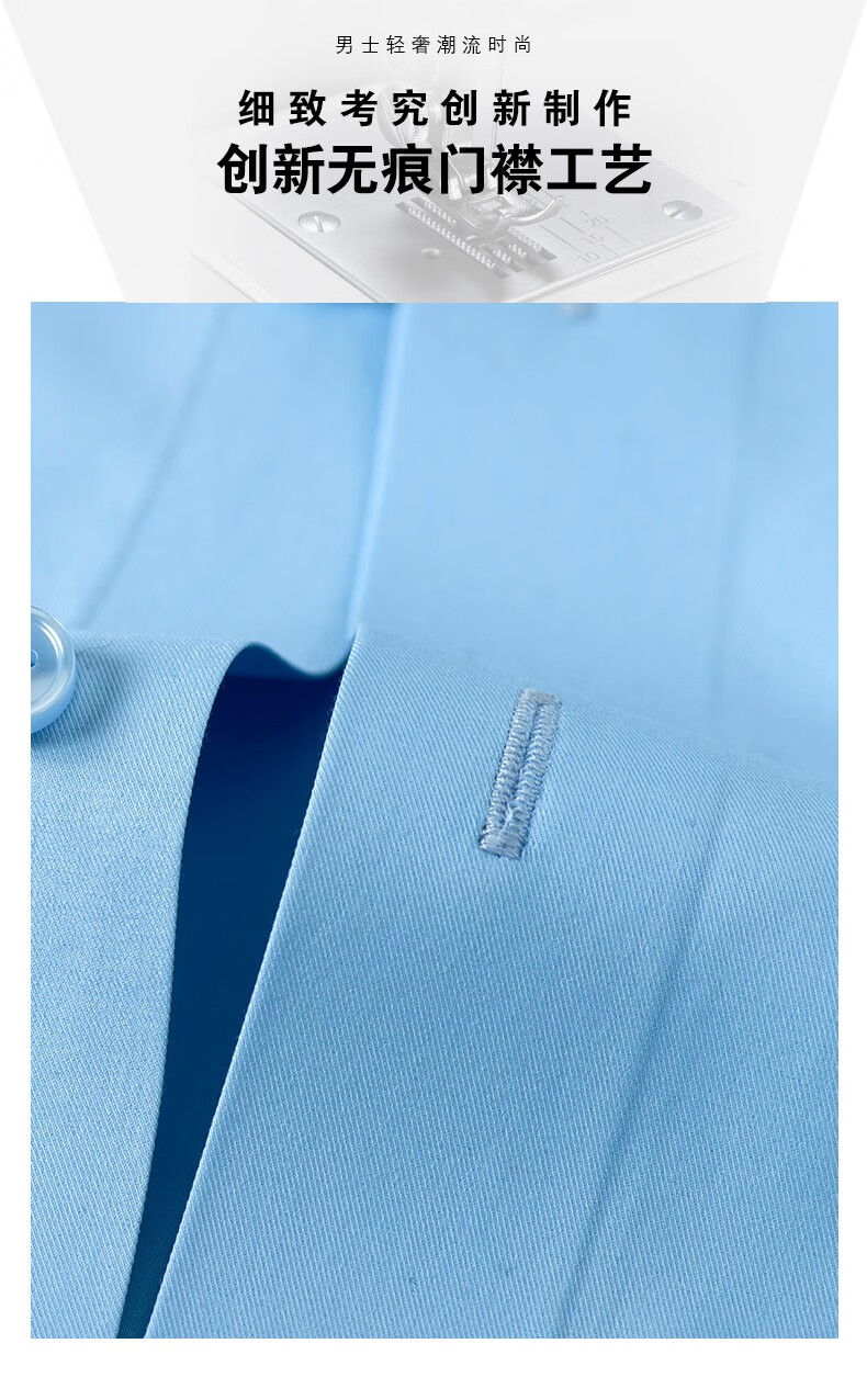 培罗蒙【竹纤维抗皱】男士长袖衬衫免烫男装商务休闲轻正装结婚礼衬衣男 蓝色 43