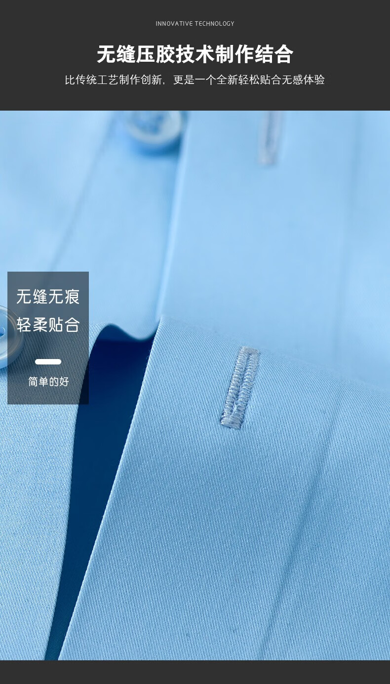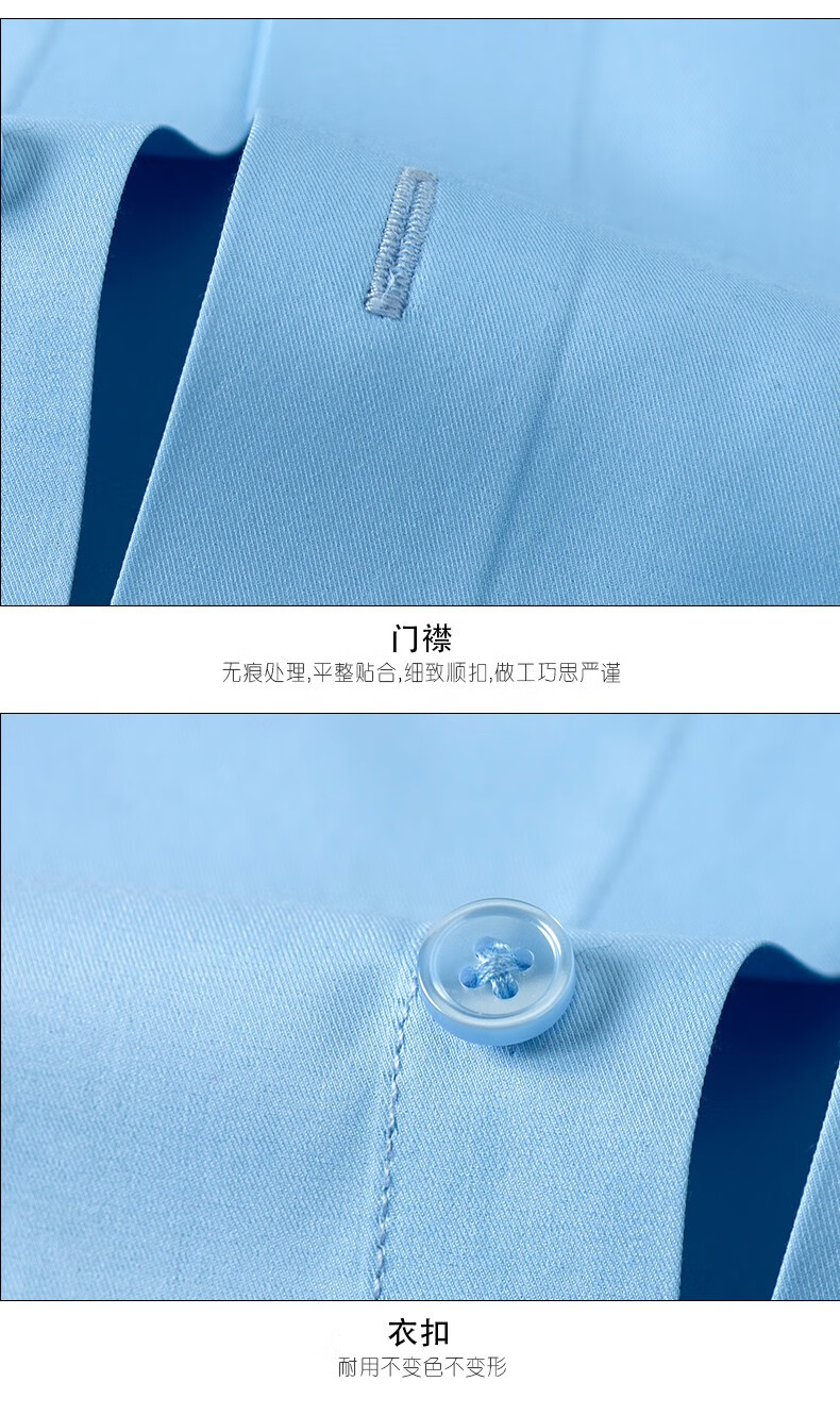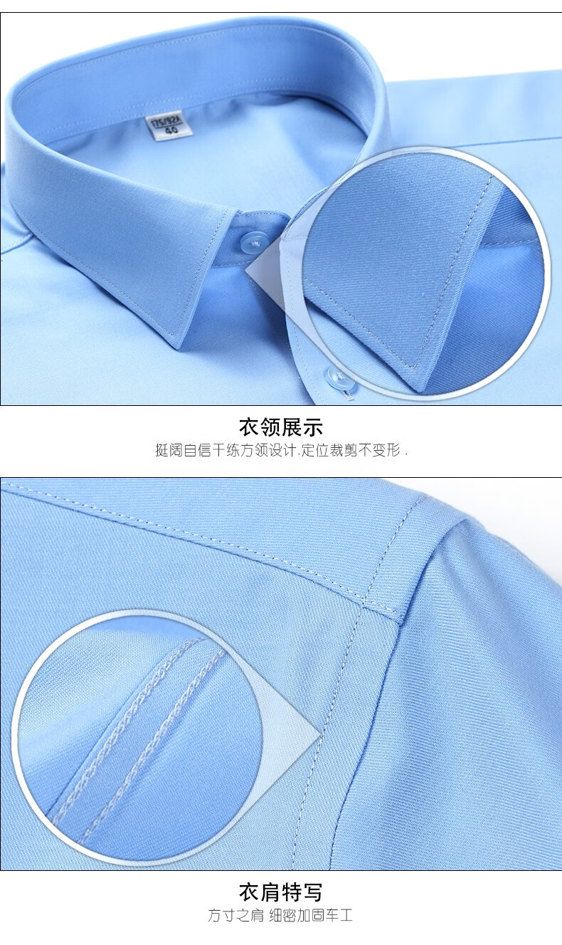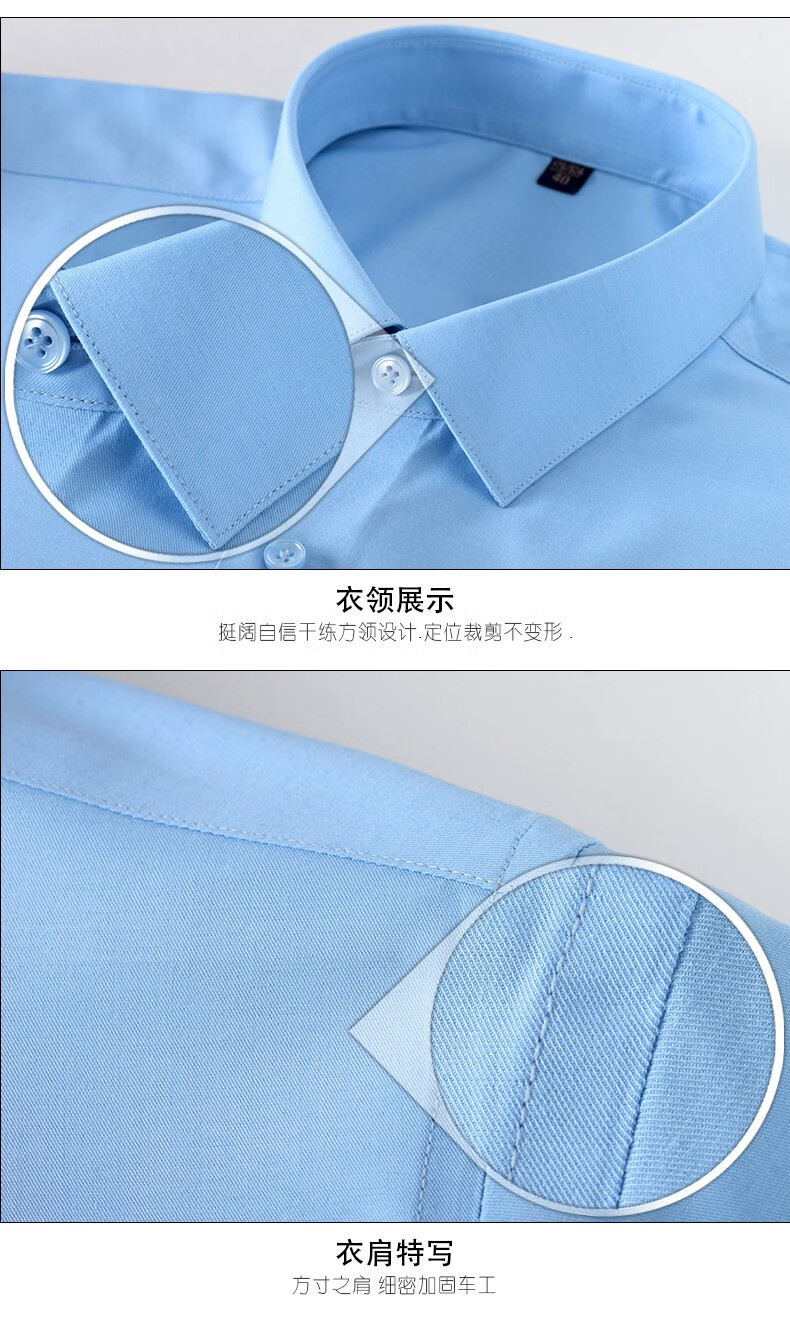 培罗蒙【竹纤维抗皱】男士长袖衬衫免烫男装商务休闲轻正装结婚礼衬衣男 蓝色 43