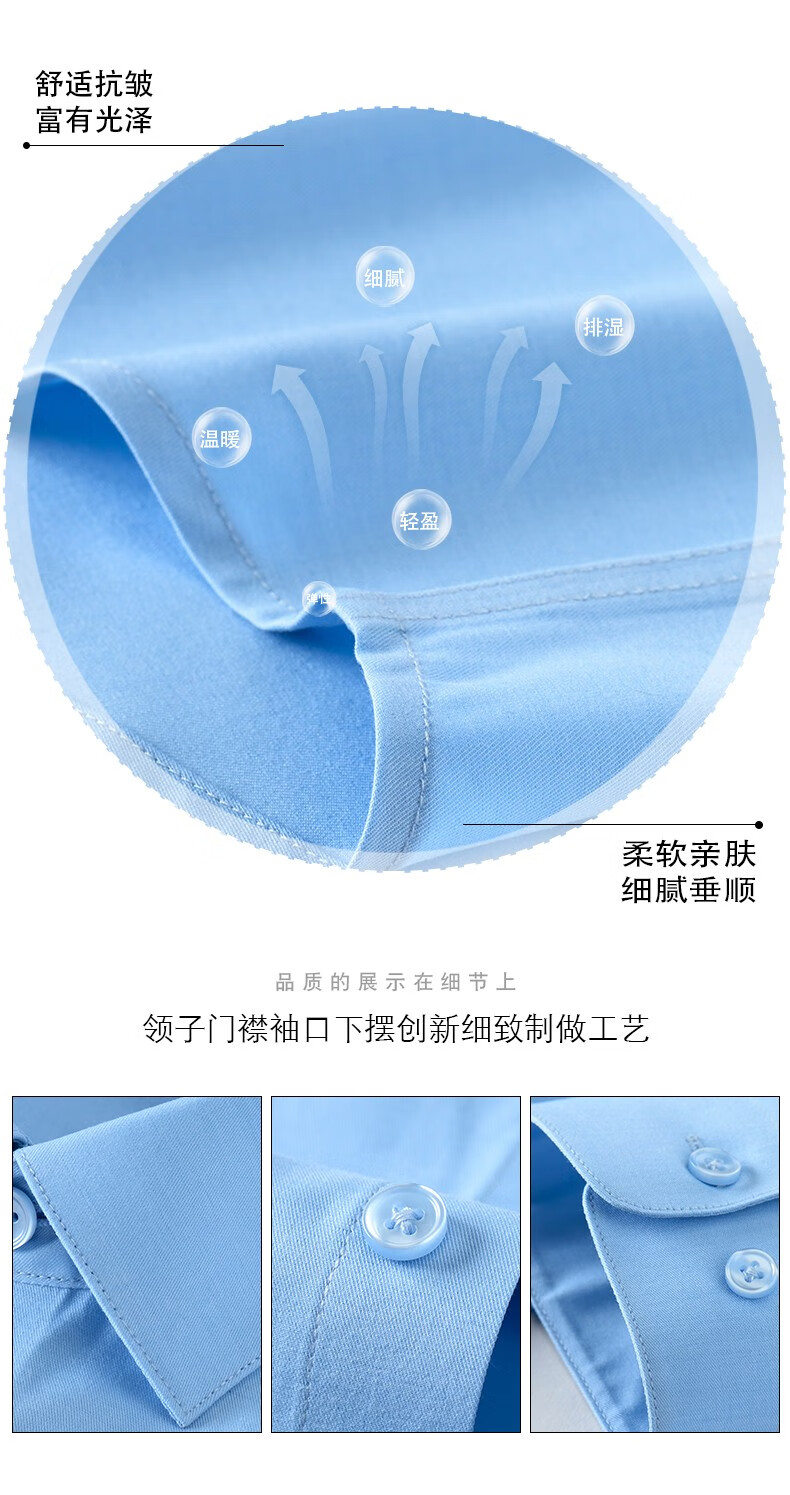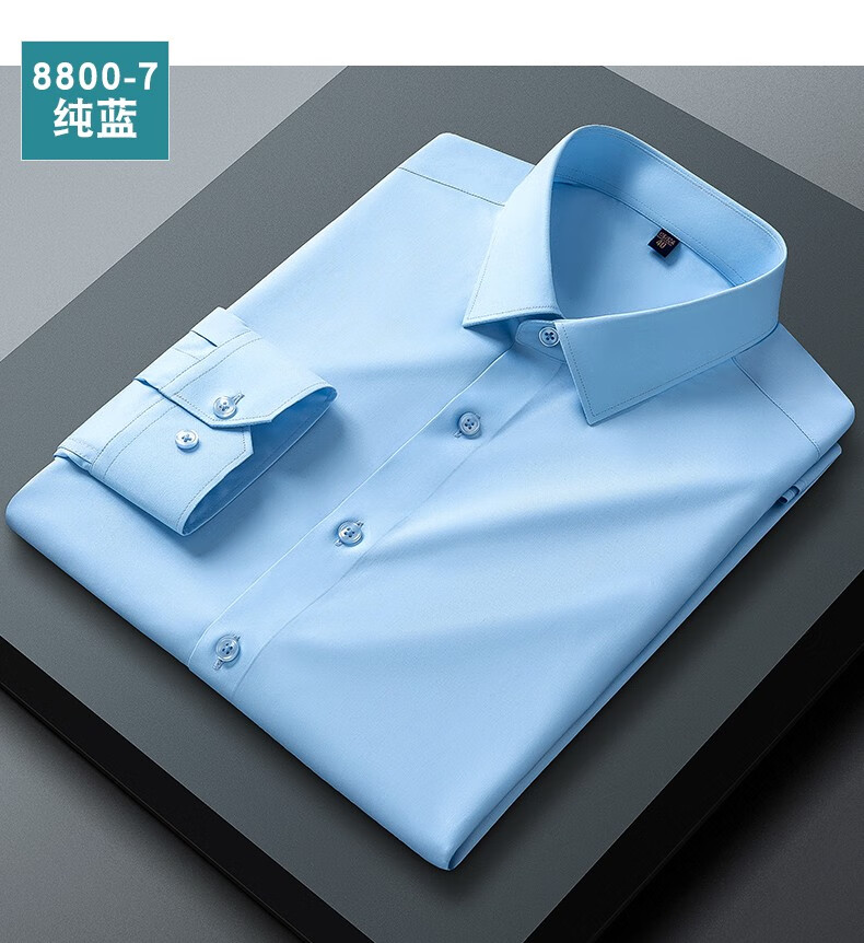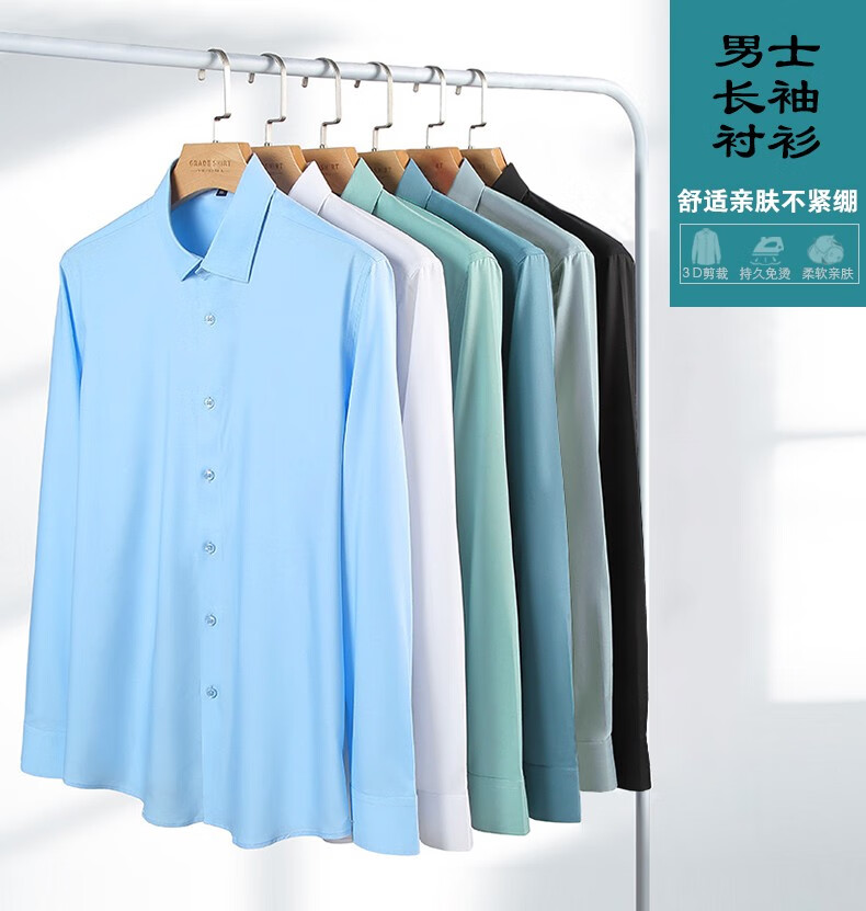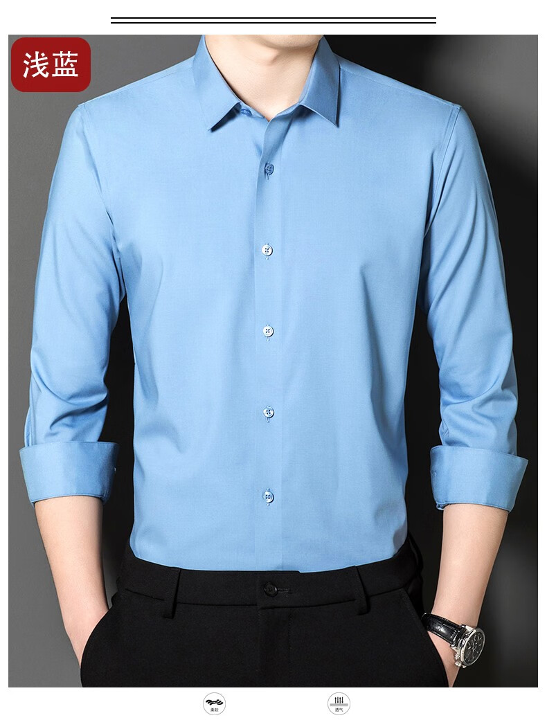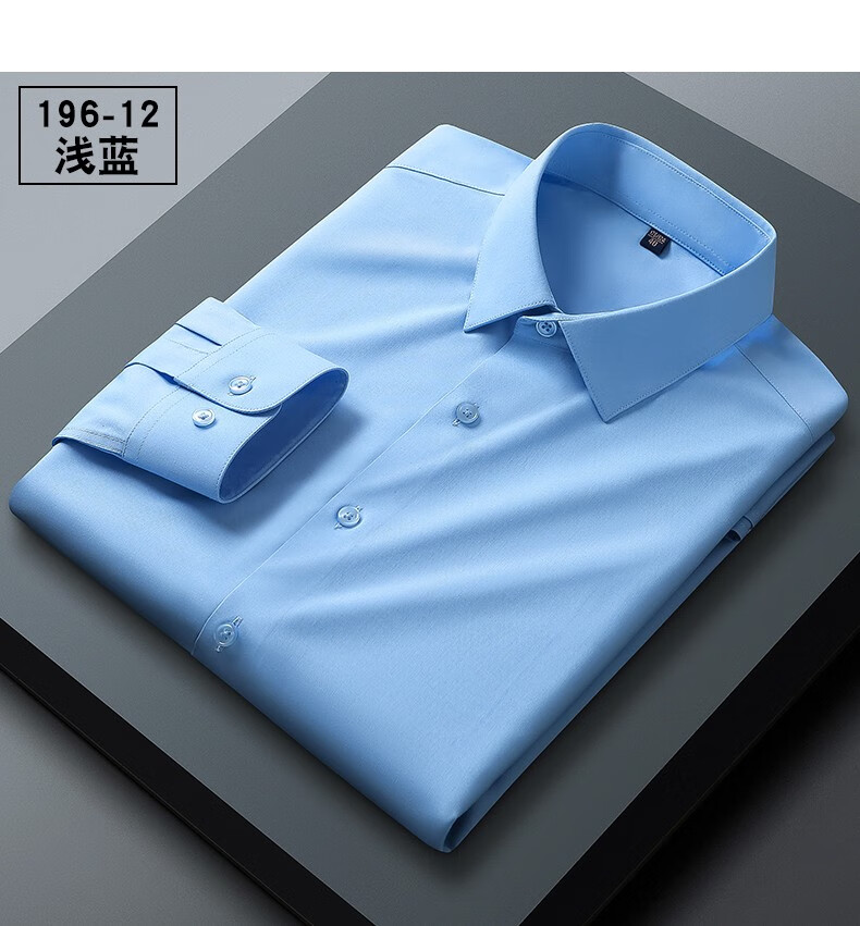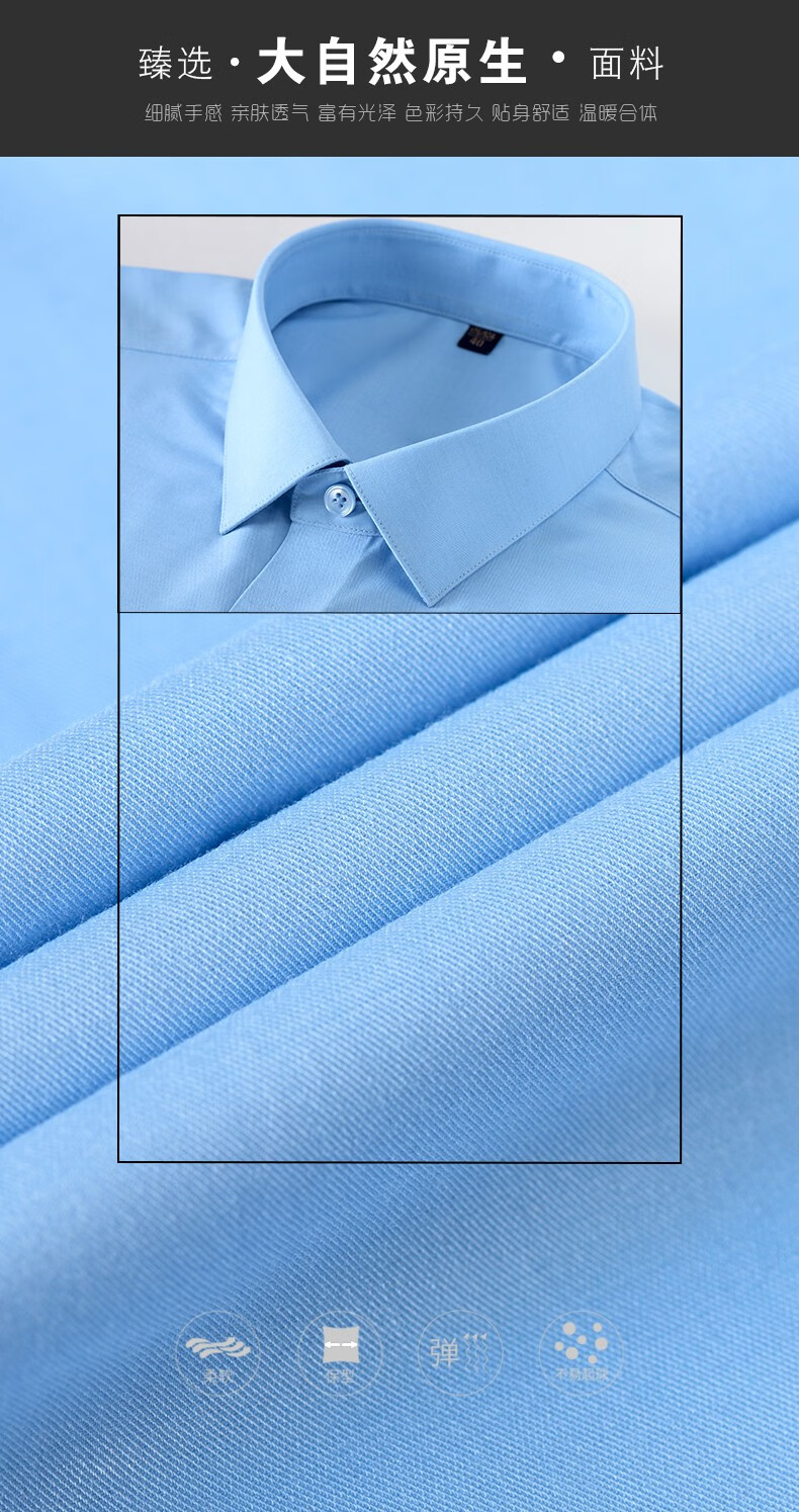 乔亚意大利轻奢男装春季长袖衬衫中青年男士商务休闲职业免烫白色衬衣 196-12浅蓝【桑蚕丝抗皱免烫】 45 码 【建议200-220斤】