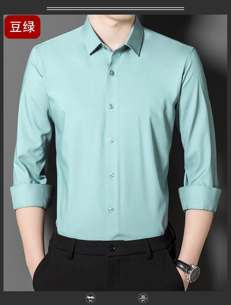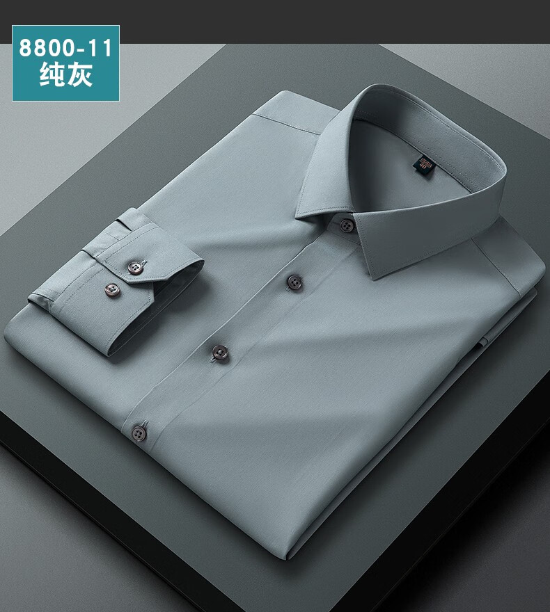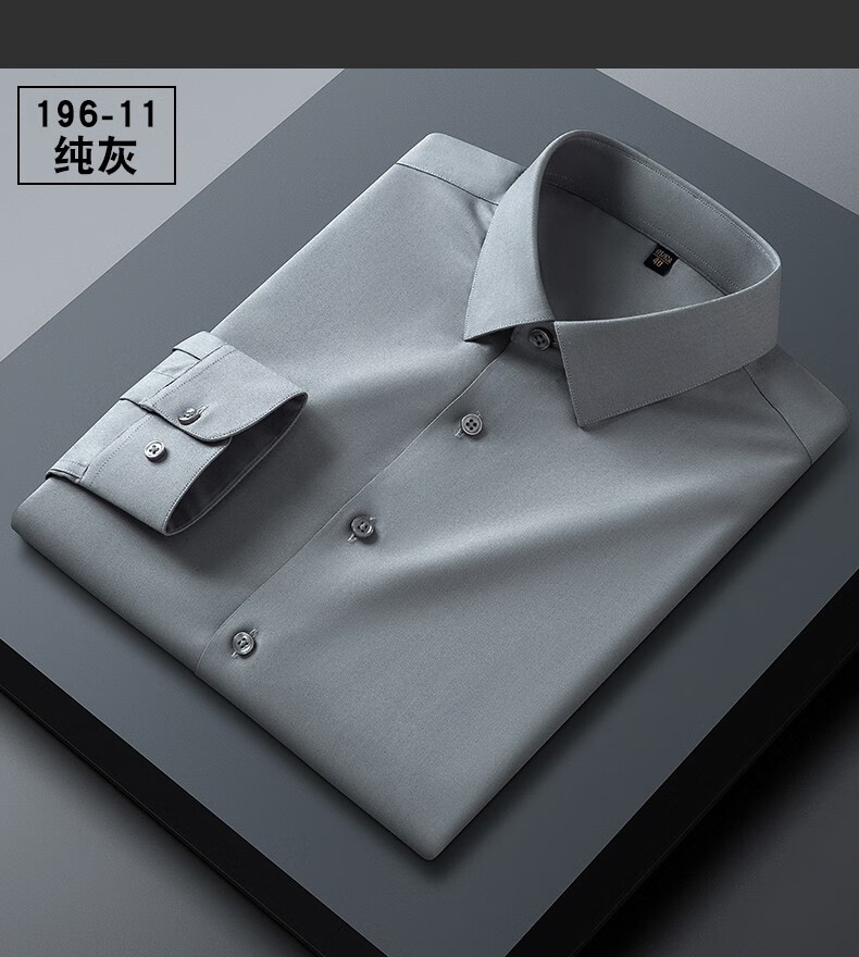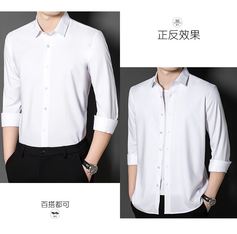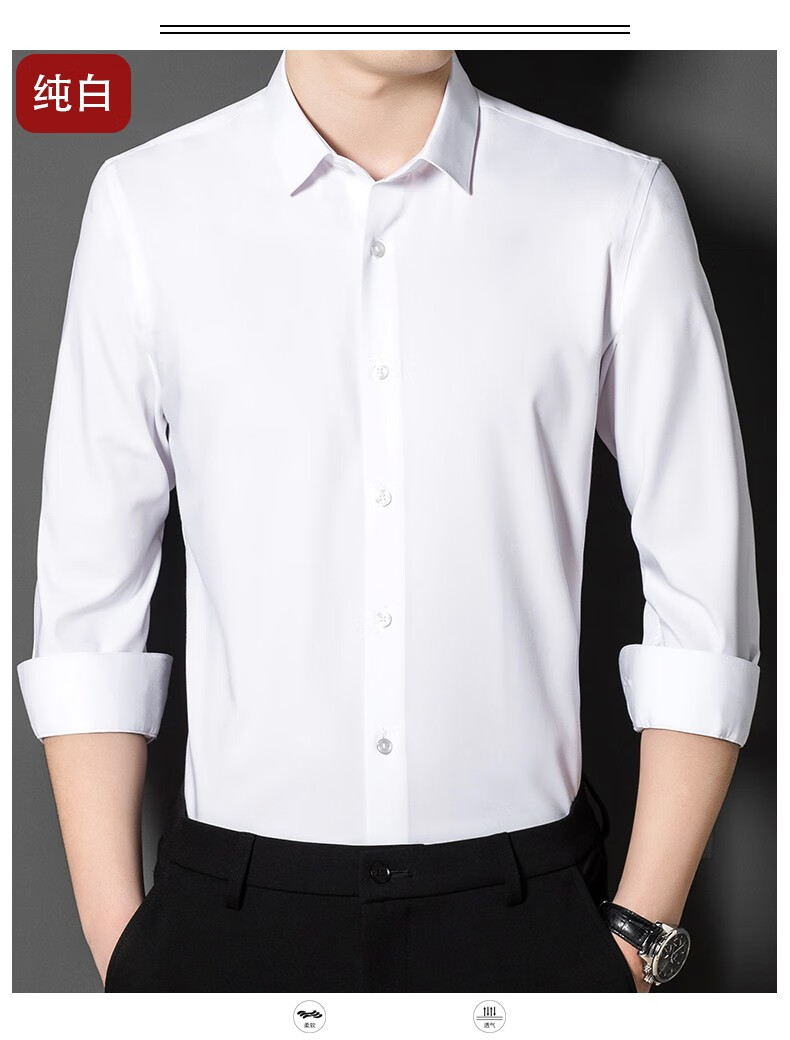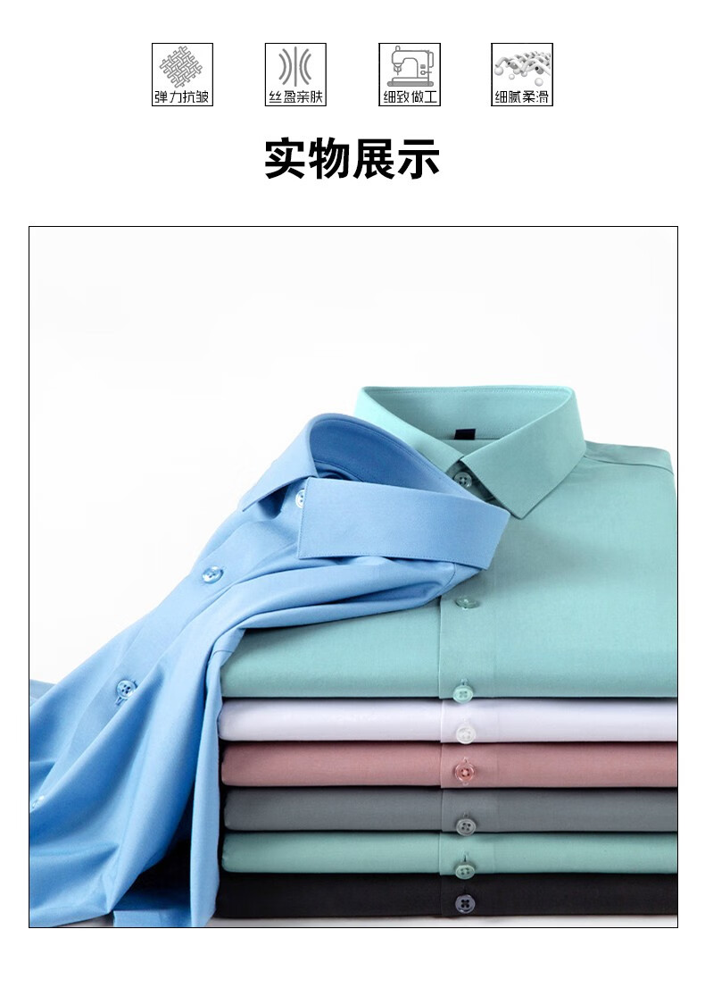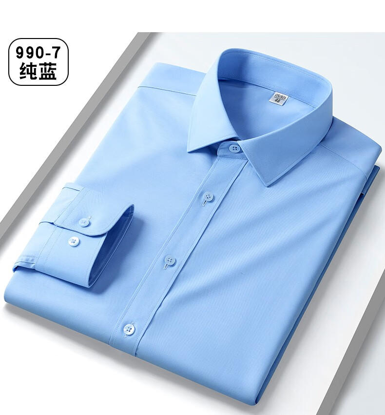 乔亚意大利轻奢男装春季长袖衬衫中青年男士商务休闲职业免烫白色衬衣 196-12浅蓝【桑蚕丝抗皱免烫】 45 码 【建议200-220斤】