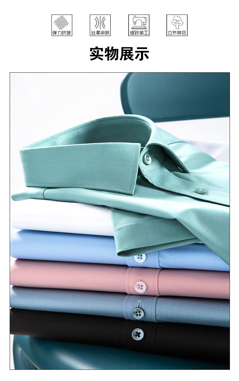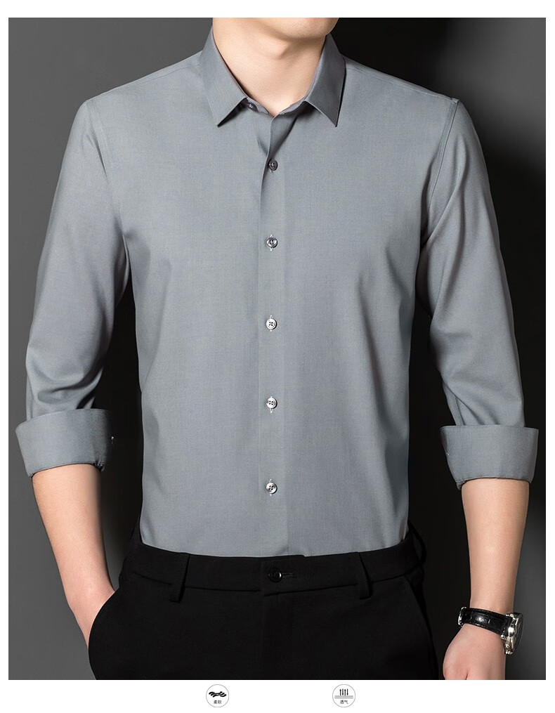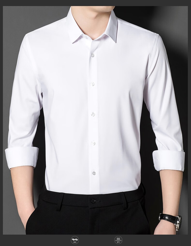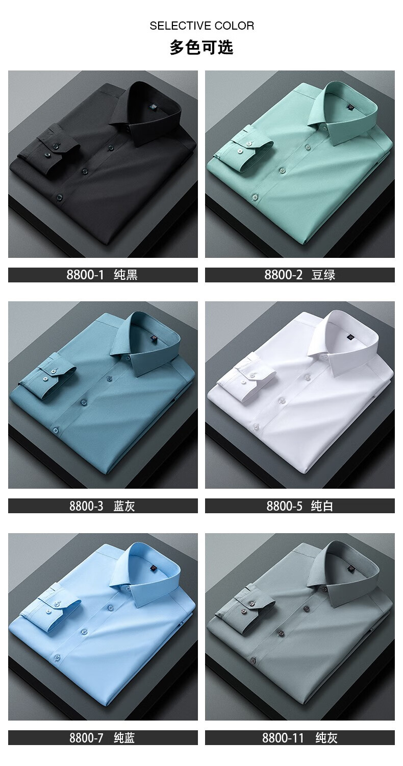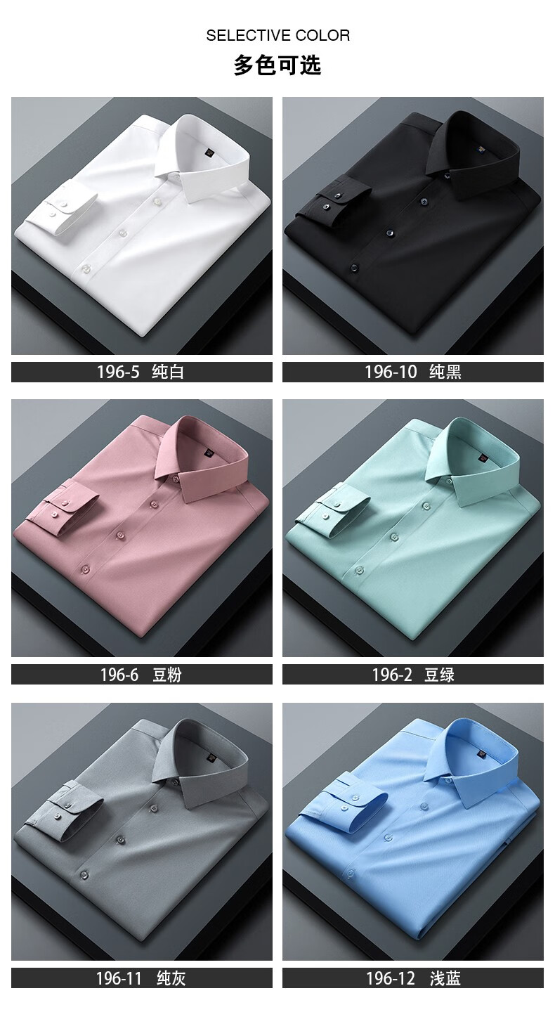 乔亚意大利轻奢男装春季长袖衬衫中青年男士商务休闲职业免烫白色衬衣 196-12浅蓝【桑蚕丝抗皱免烫】 45 码 【建议200-220斤】