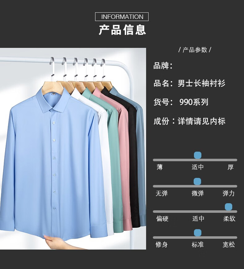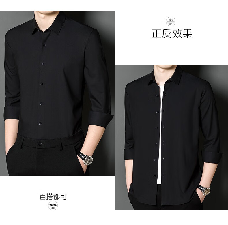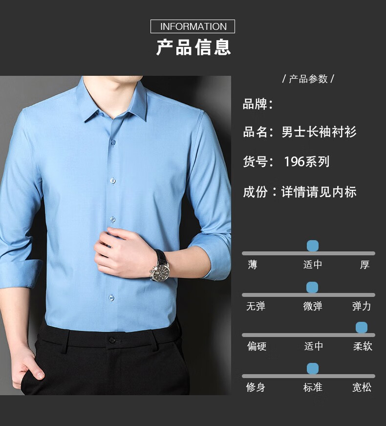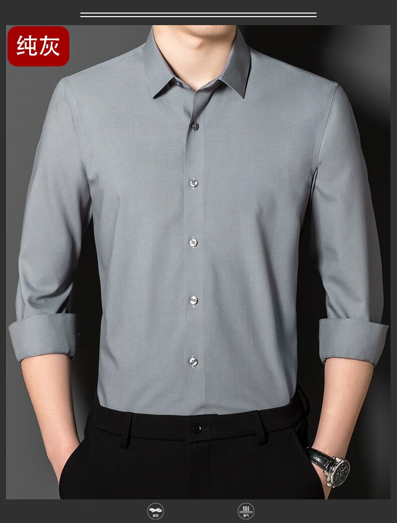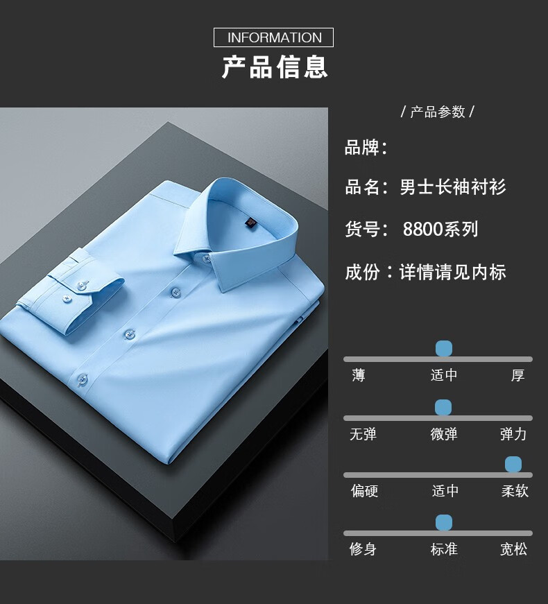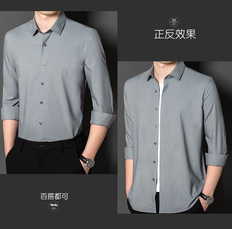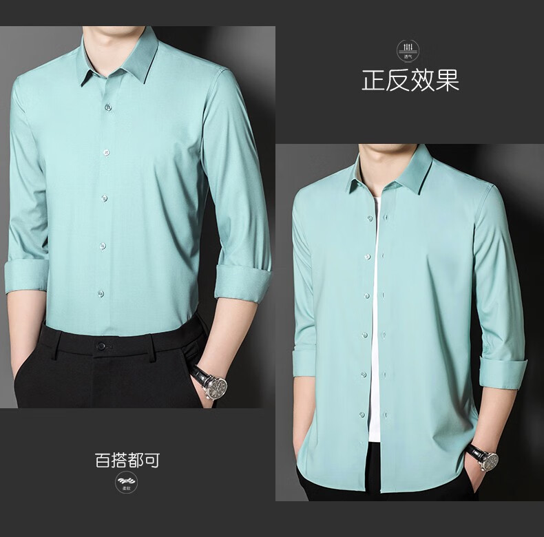 乔亚意大利轻奢男装春季长袖衬衫中青年男士商务休闲职业免烫白色衬衣 196-12浅蓝【桑蚕丝抗皱免烫】 45 码 【建议200-220斤】