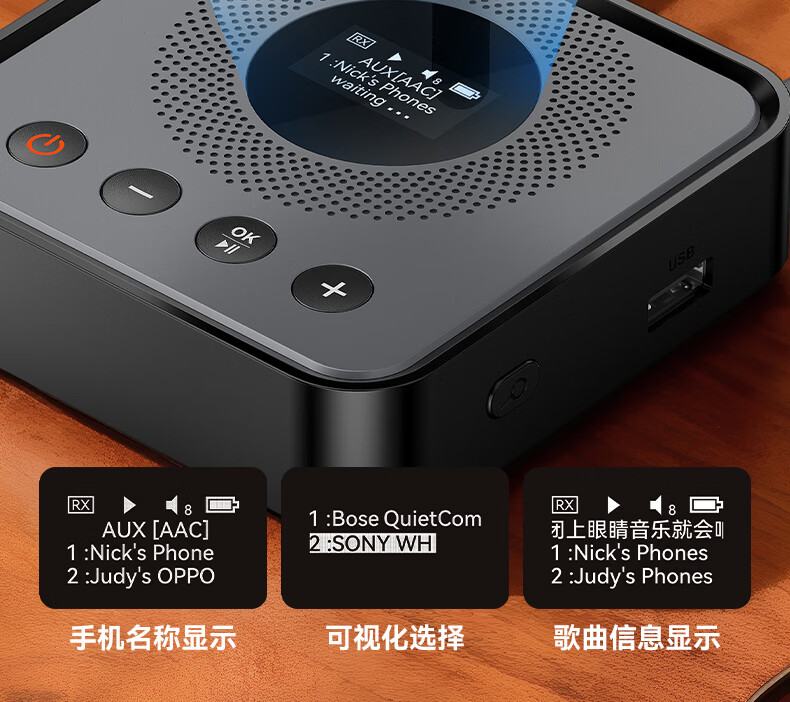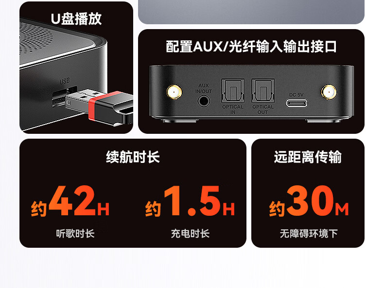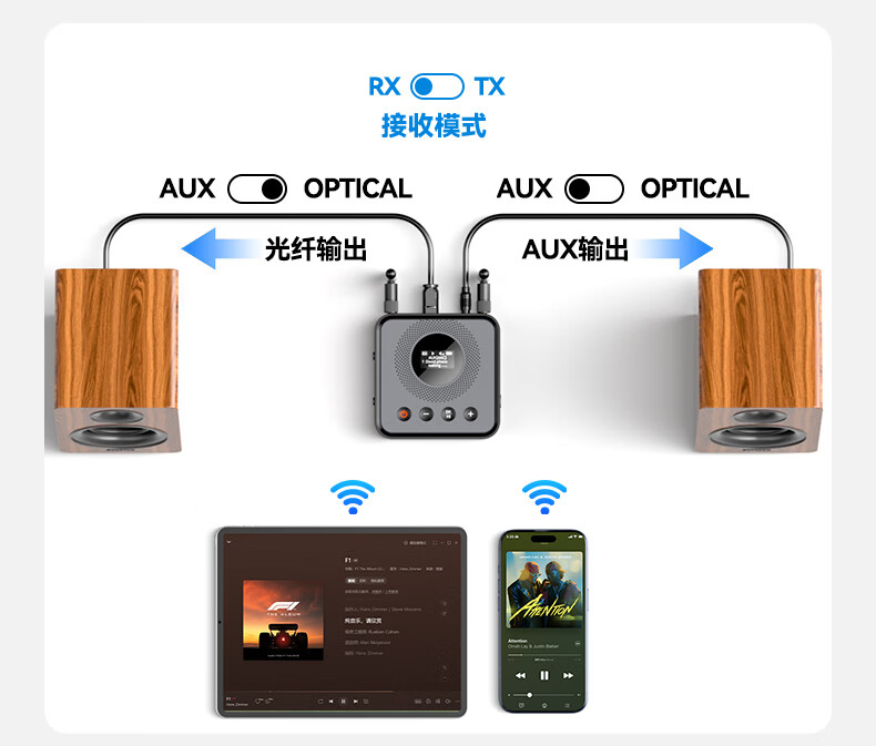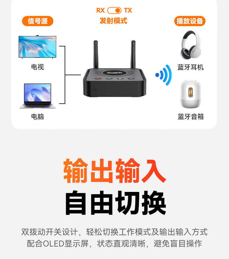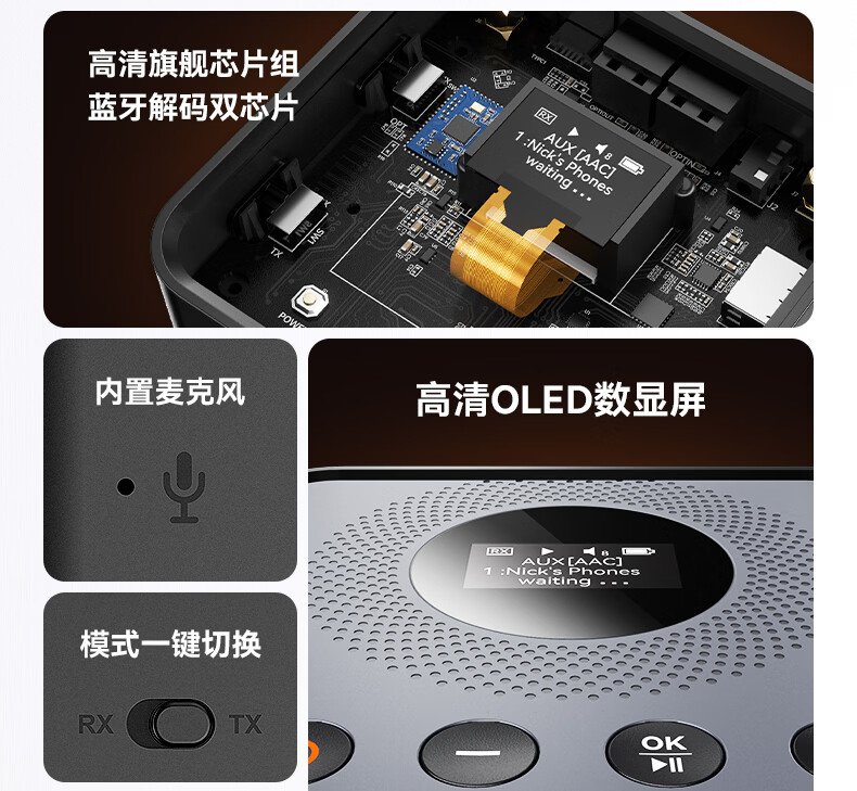雷翼(RAYEE)数显式蓝牙接收器转音箱响功放机光纤输入输出U盘播放连2个设备电视电脑音频发射适配器 旗舰版-送全套线材 【听歌42小时+光纤输入/输出+歌词显示】