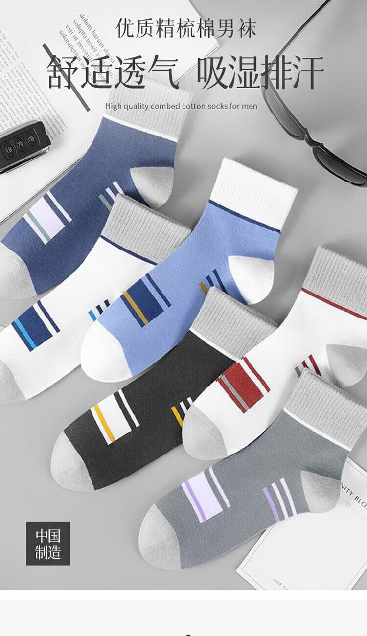 浪莎袜子男士100%纯棉中筒袜春夏季抗起球抗菌防臭男袜透气吸汗休闲袜 混色7双装(抗菌防臭纯棉男袜) 均码