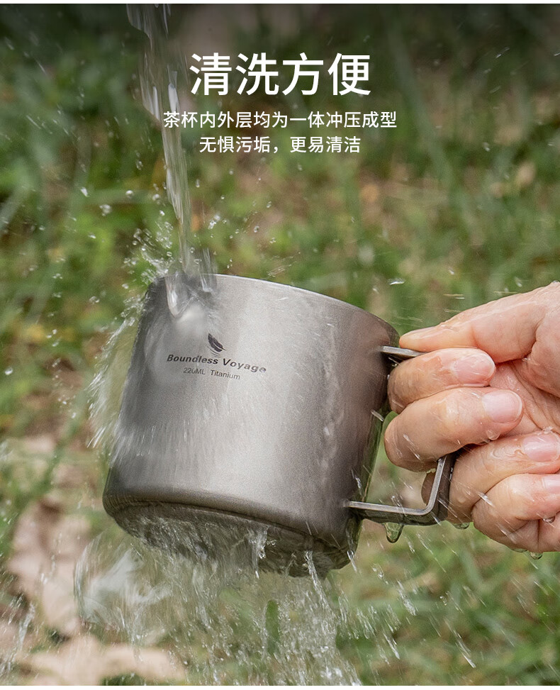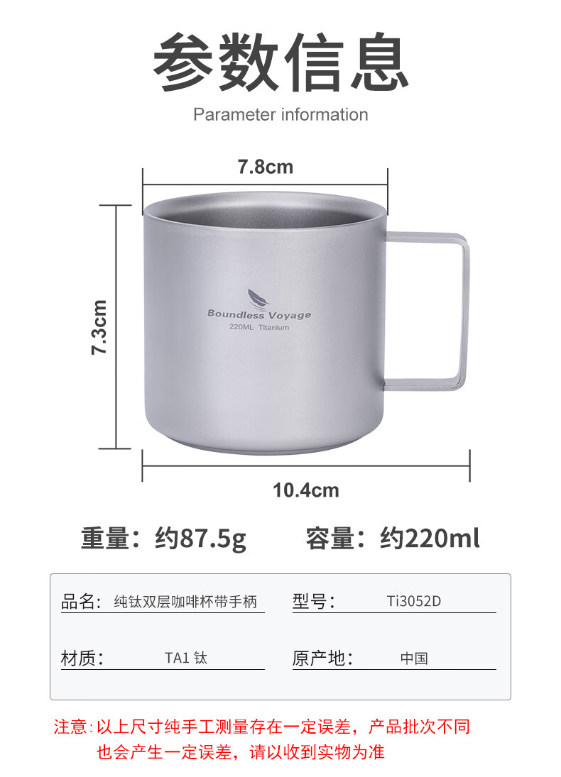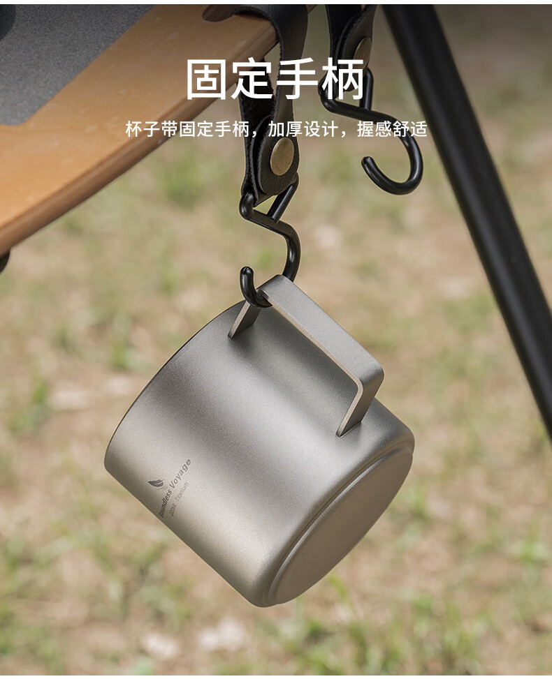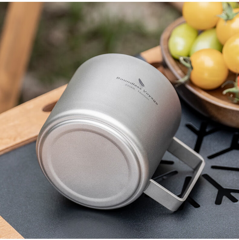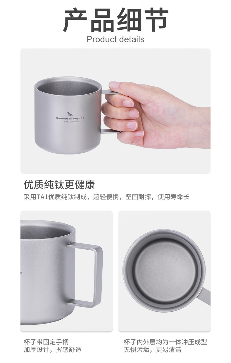 必唯纯钛户外咖啡杯220ml便携露营水杯双层防烫儿童水杯杯子随行茶杯 220ml水杯银色+长咖啡勺