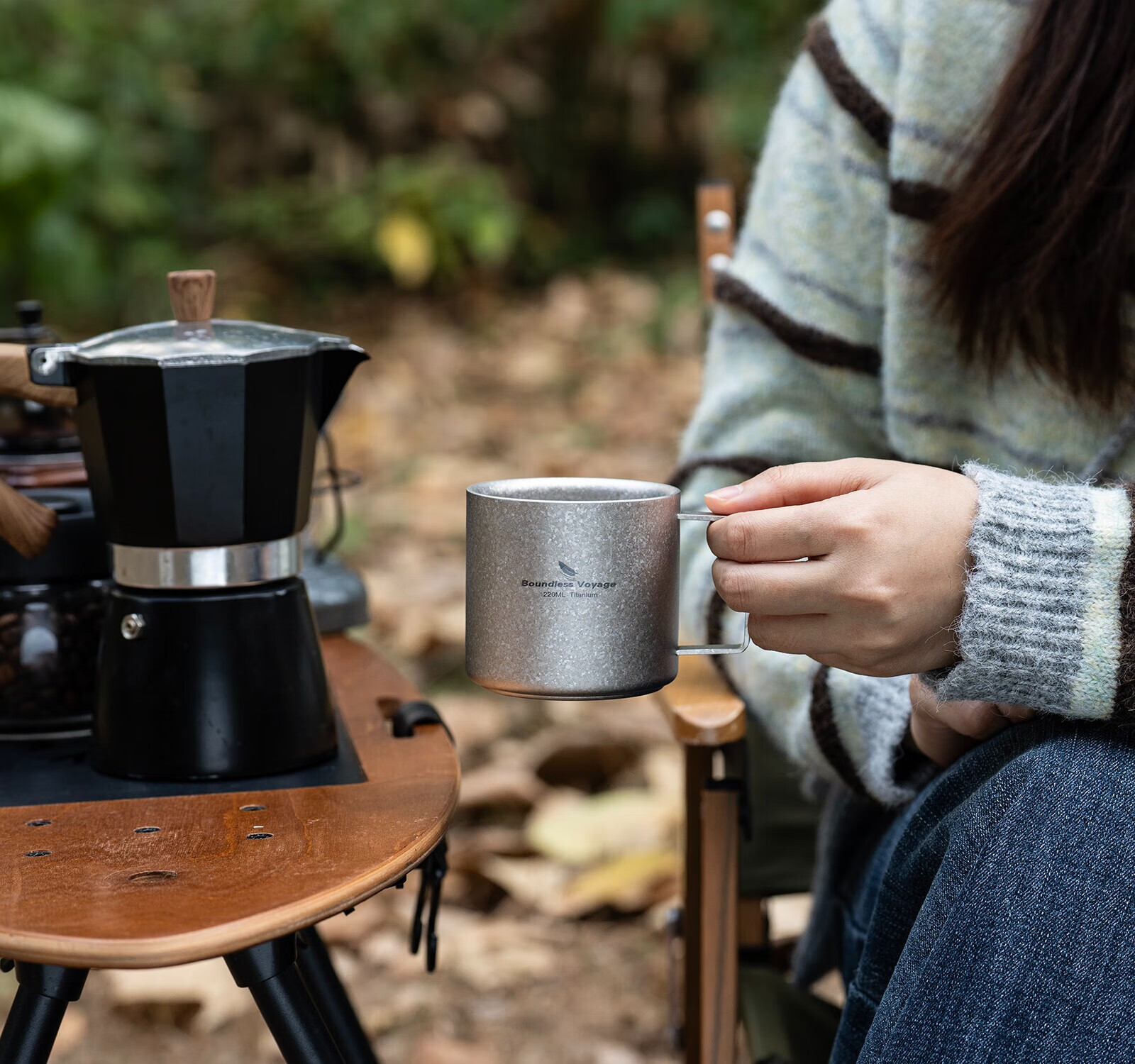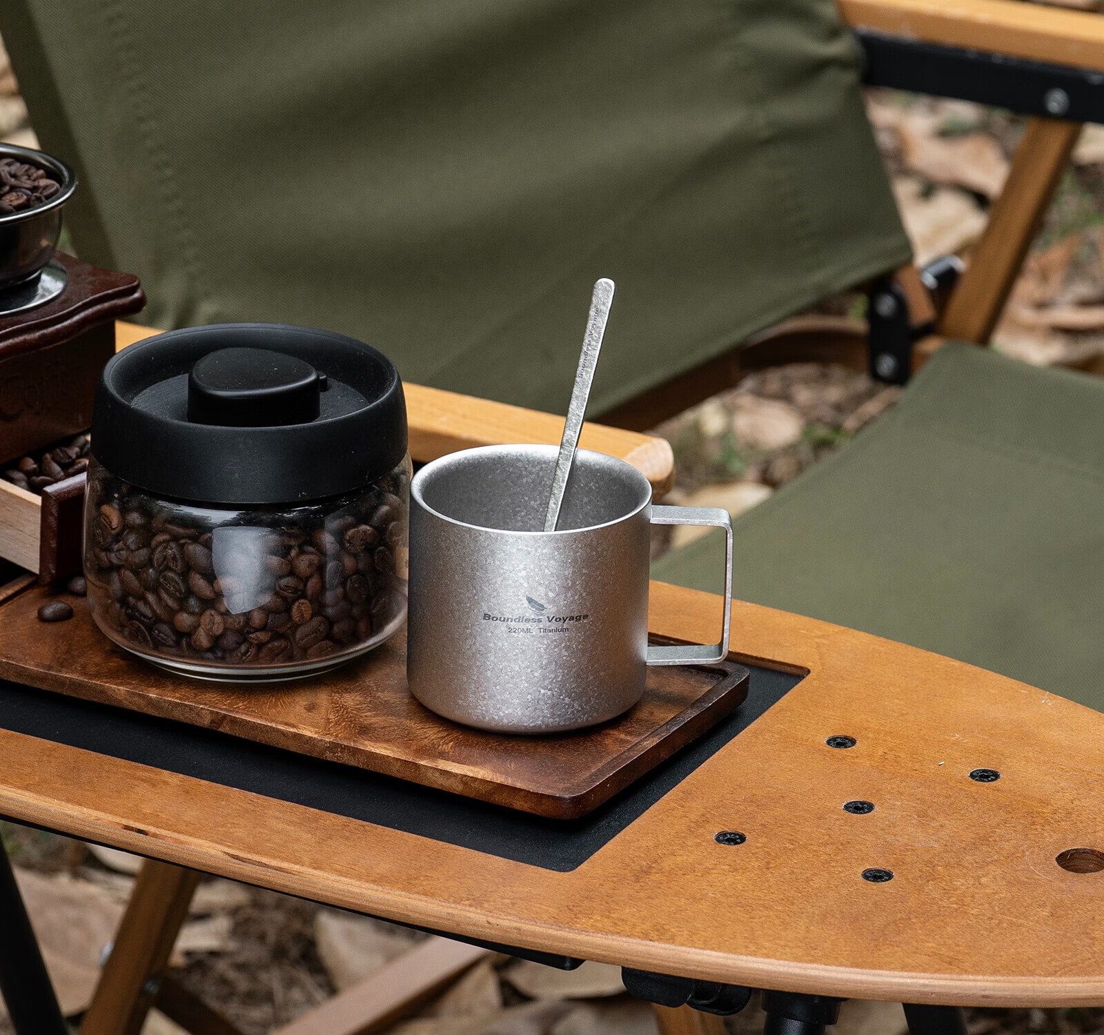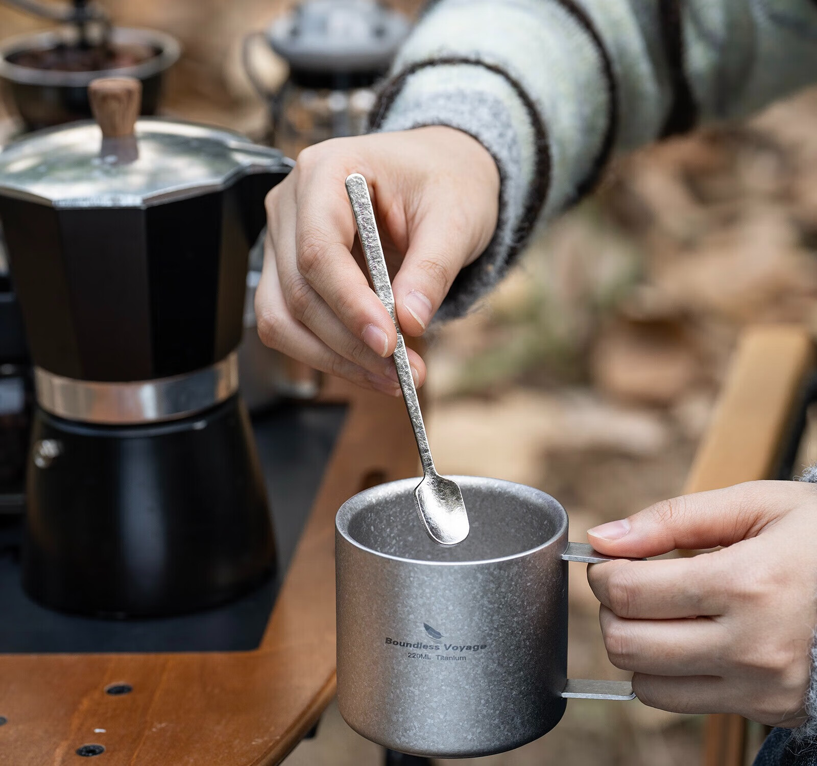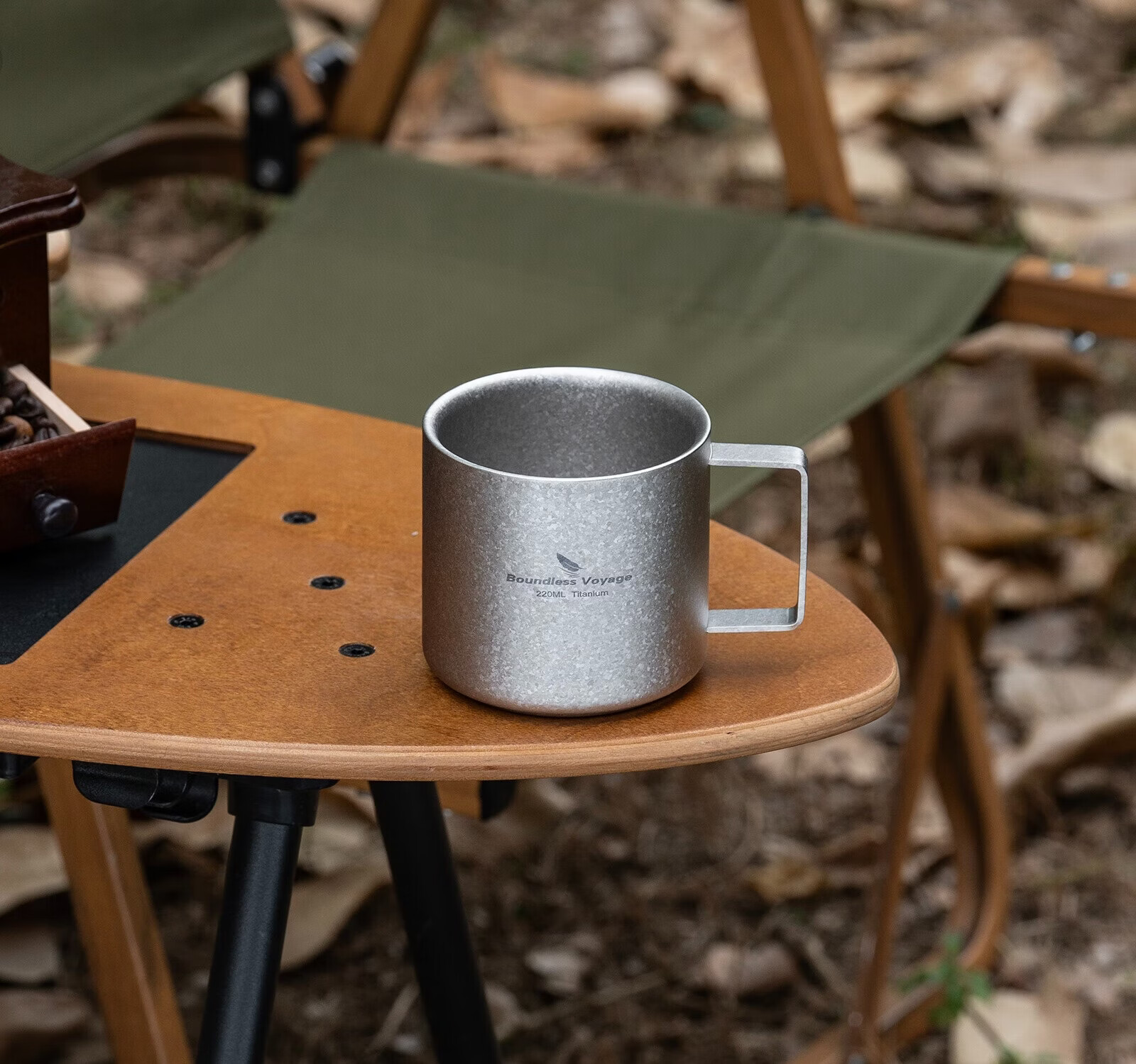 必唯纯钛户外咖啡杯220ml便携露营水杯双层防烫儿童水杯杯子随行茶杯 220ml水杯银色+长咖啡勺