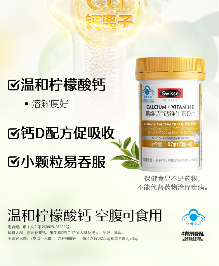 氨基酸葡萄糖软骨素+VD钙片多种维生素碳酸钙无蔗糖关节 3瓶/360粒【无蔗糖软骨VD钙】 120粒*3瓶