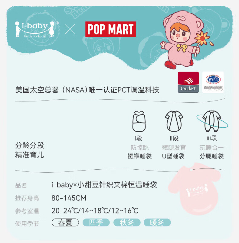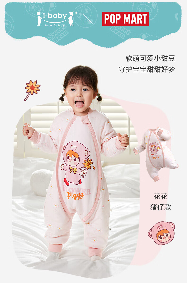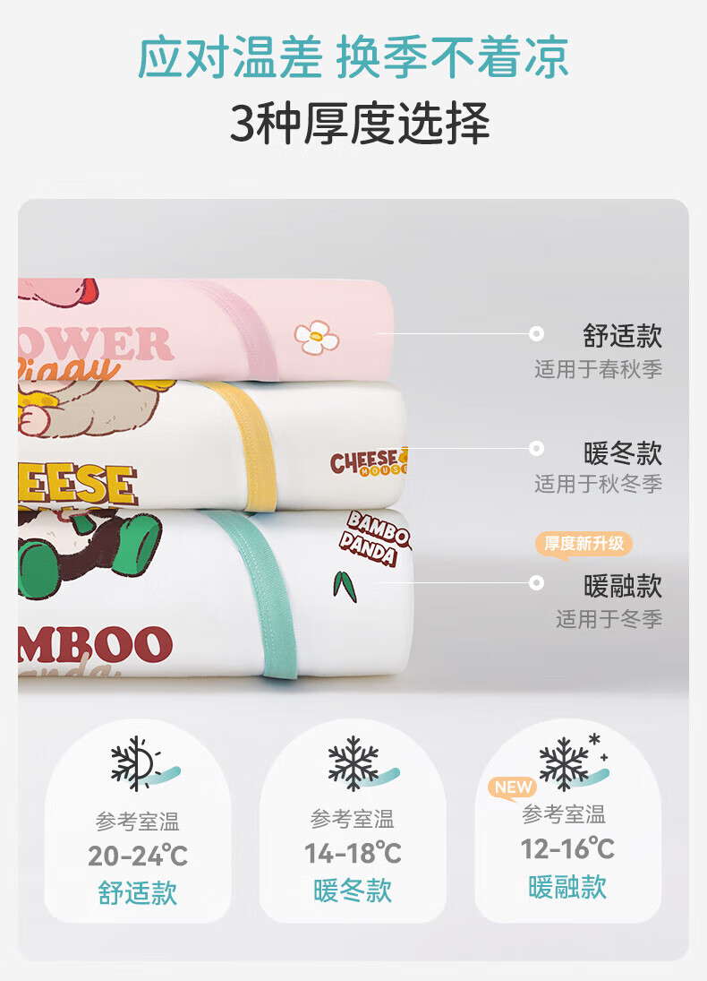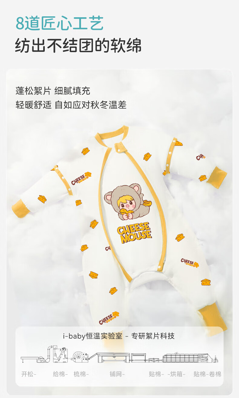 ibaby小甜豆联名恒温婴儿睡袋儿童防踢被子秋冬款连体睡衣 暖融款-芝士小鼠(适合12-16℃) 120码 身高110-120cm体重13-22kg
