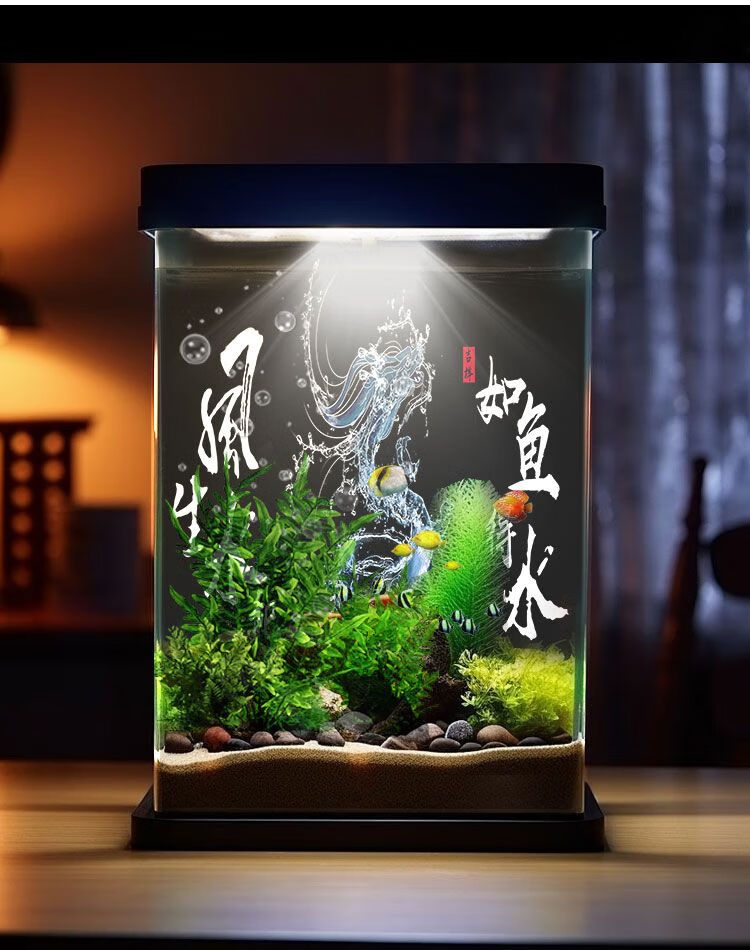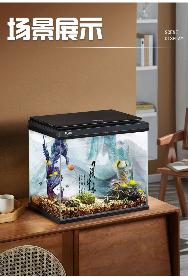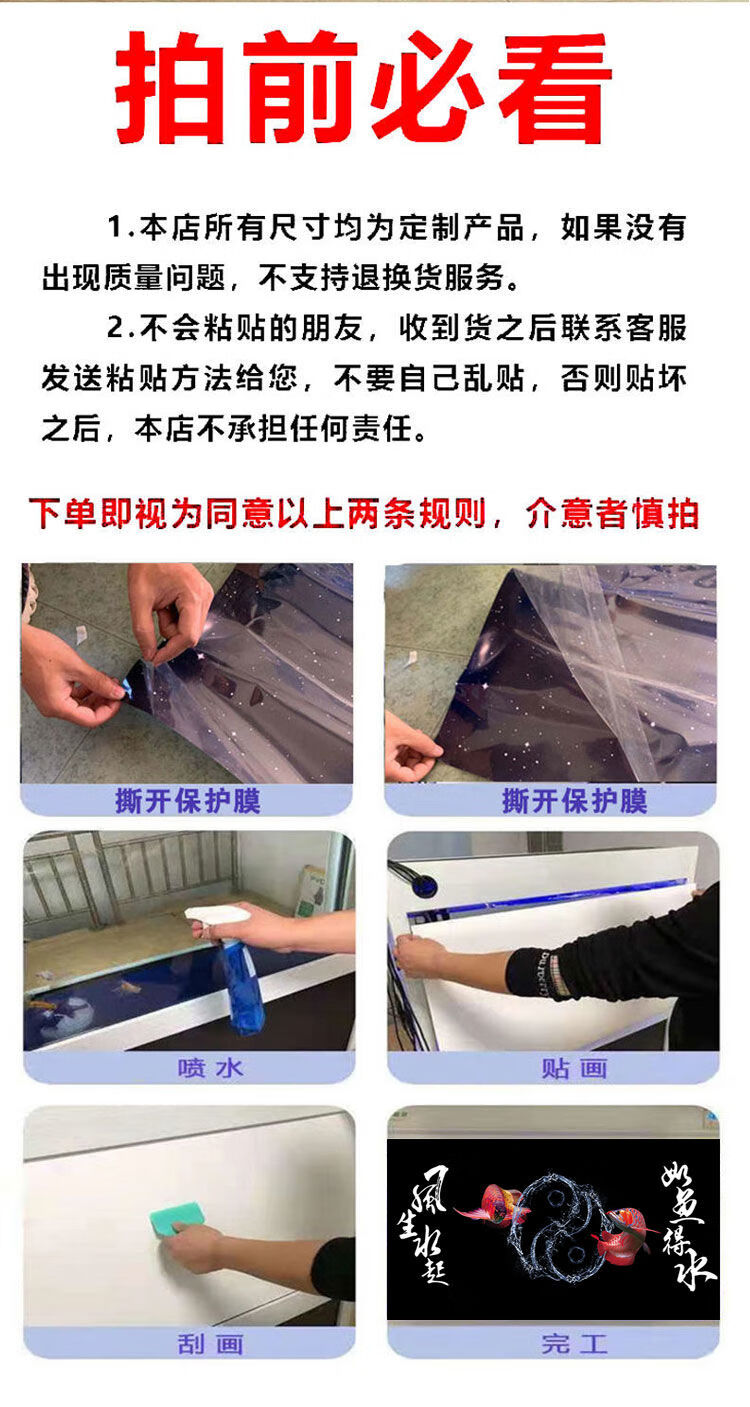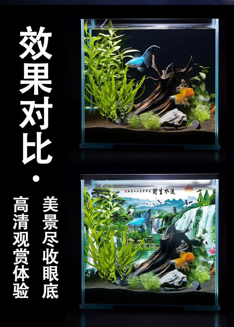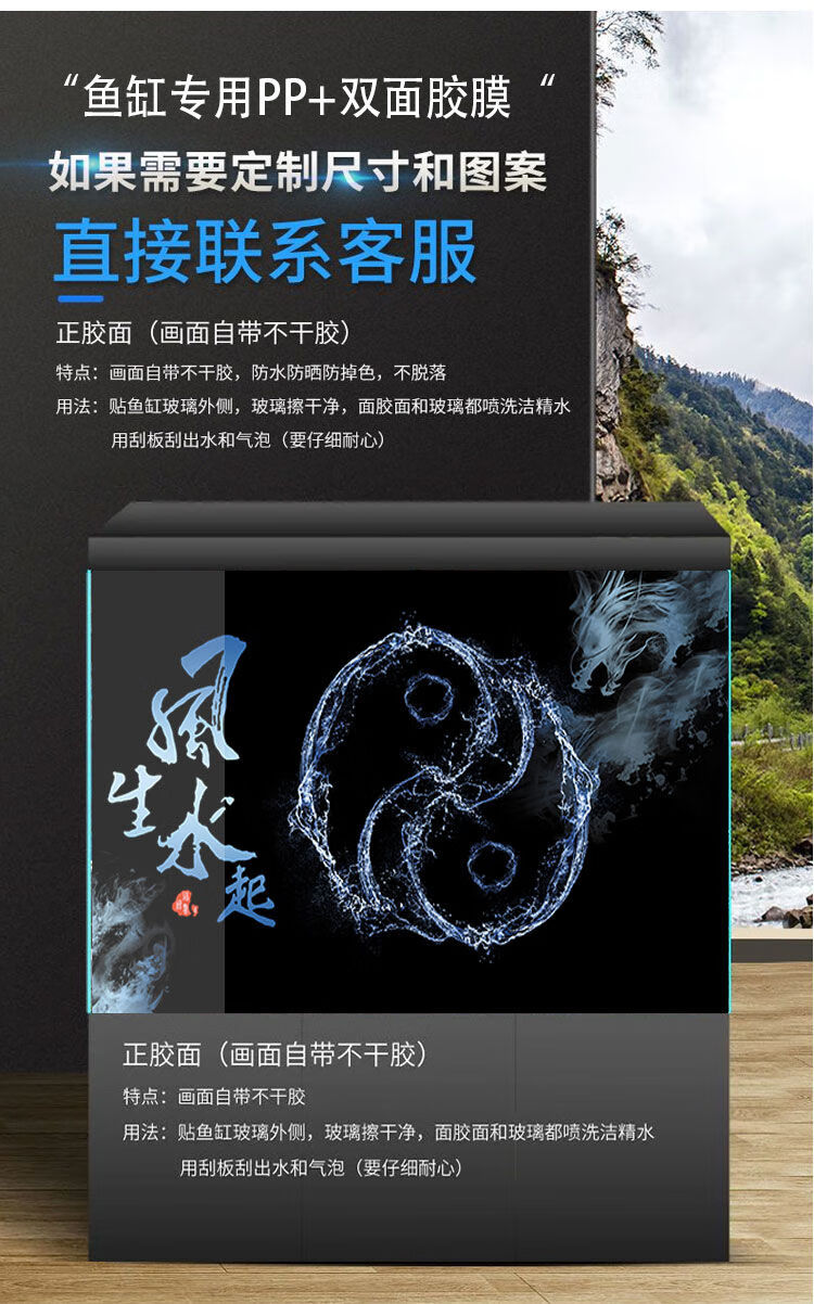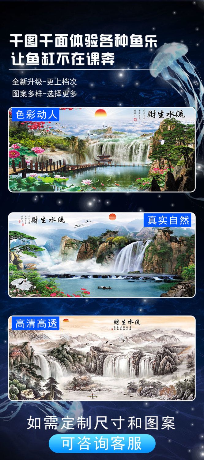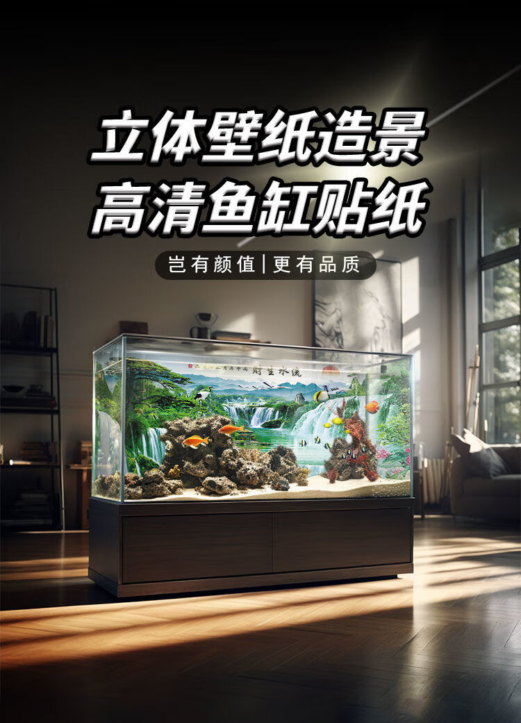和上品现代高级鱼缸壁纸背景5d立体水族箱造景装饰客厅风声水起静电贴画 HSP(YGPP)158 宽50cm*高40cm