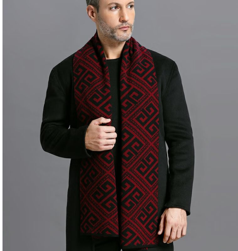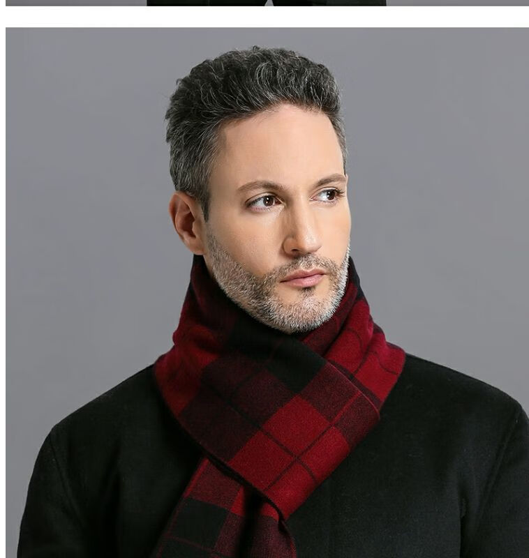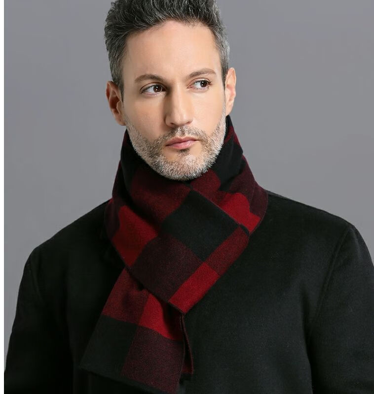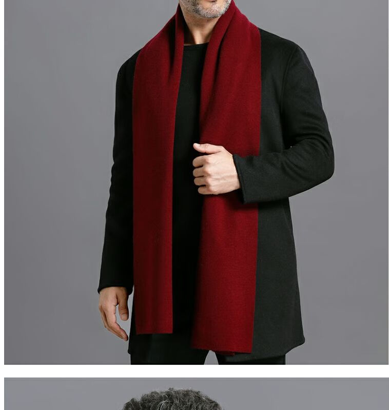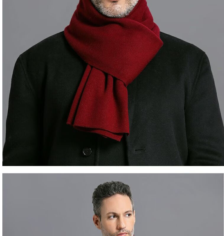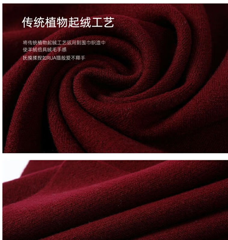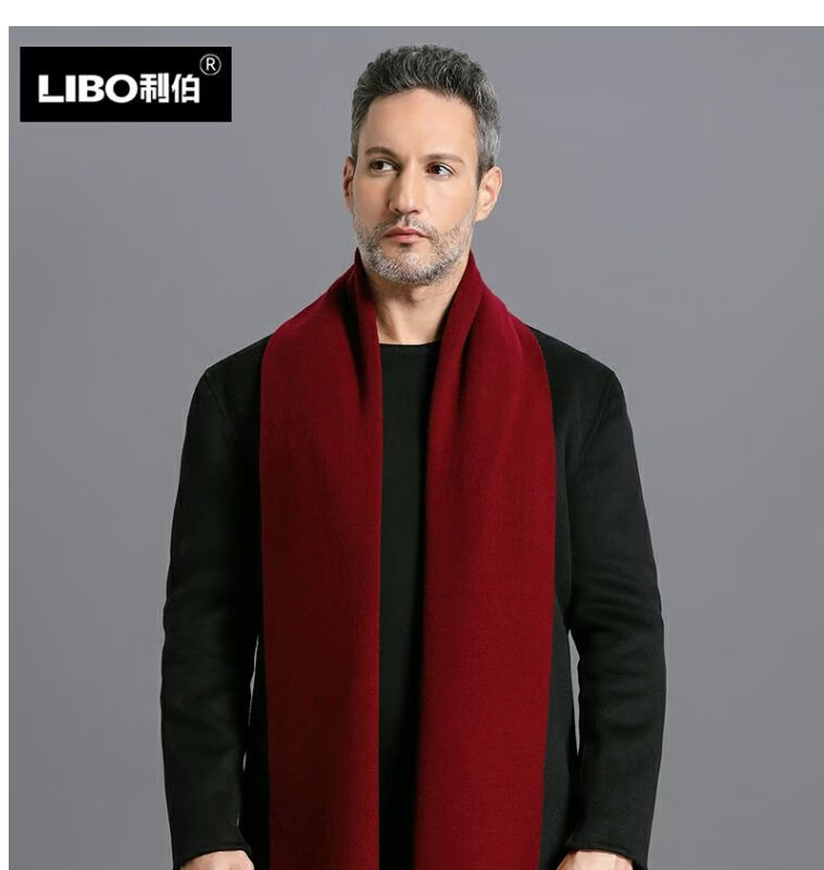 利伯纯羊毛酒红色男女士围巾冬季中老年喜庆祝寿回礼新年礼物送礼盒装 酒红色8277礼盒装