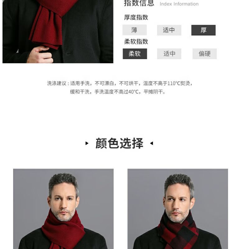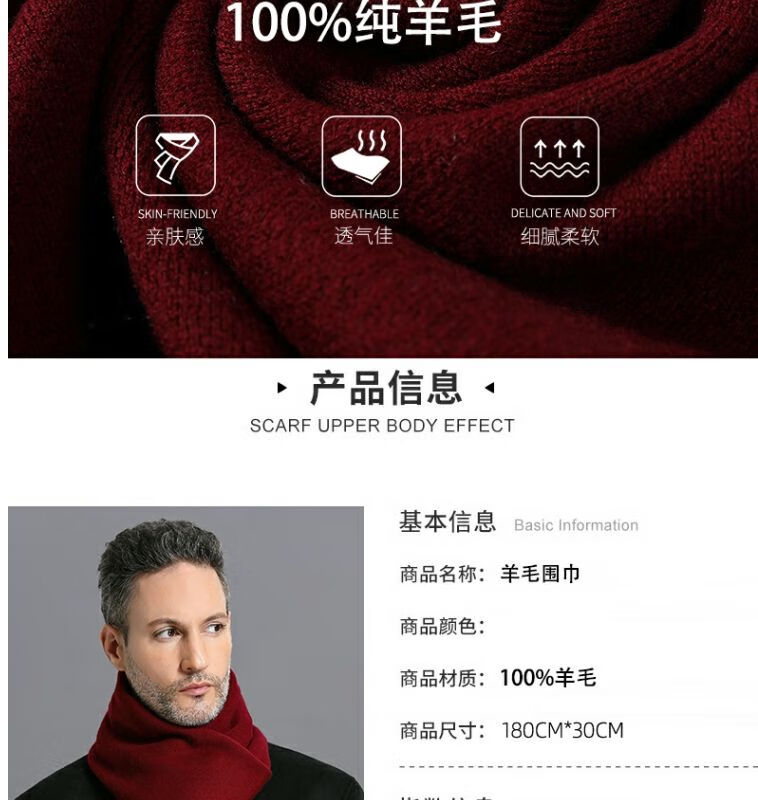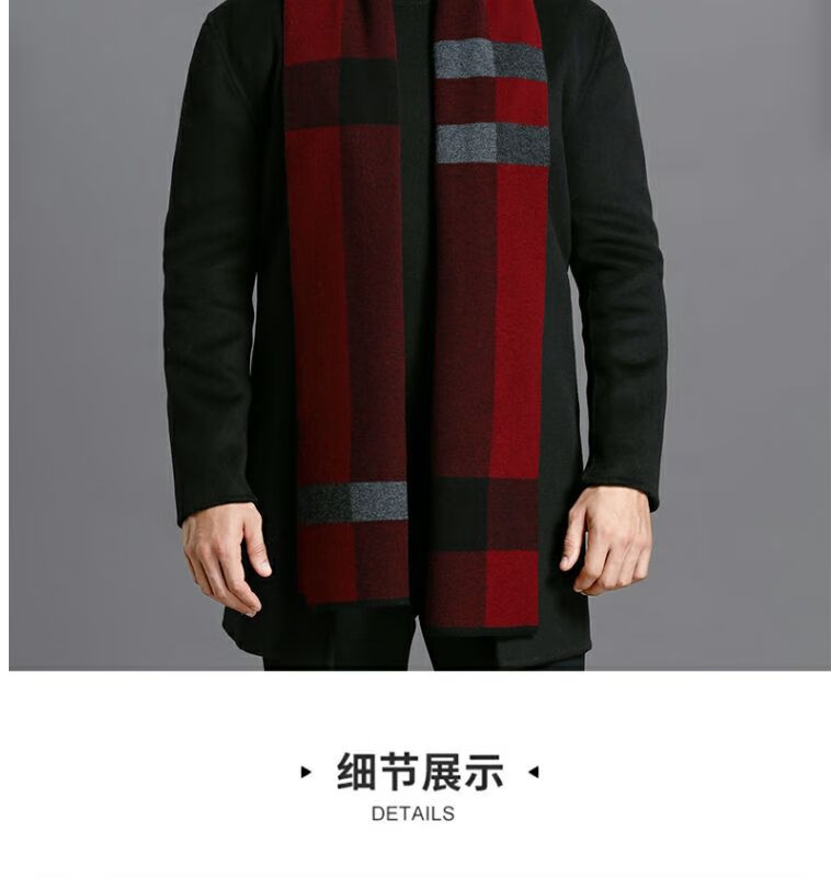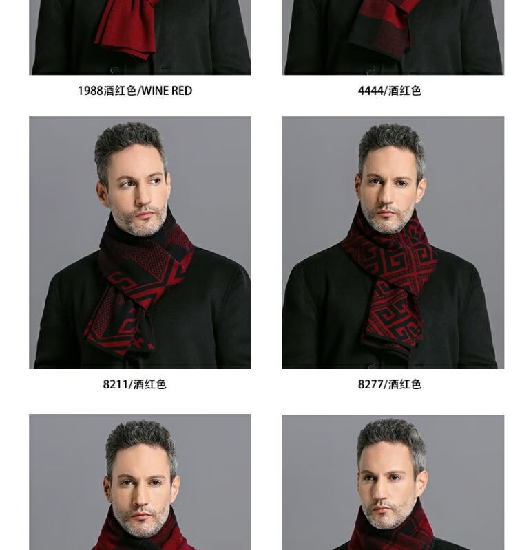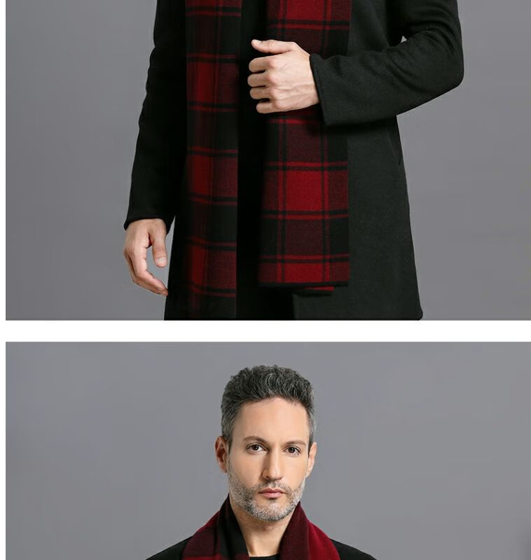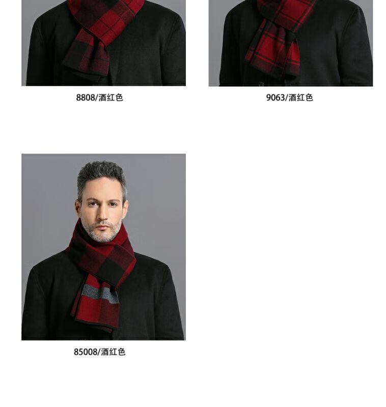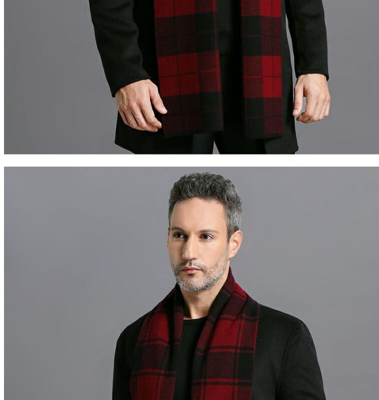 利伯纯羊毛酒红色男女士围巾冬季中老年喜庆祝寿回礼新年礼物送礼盒装 酒红色8277礼盒装