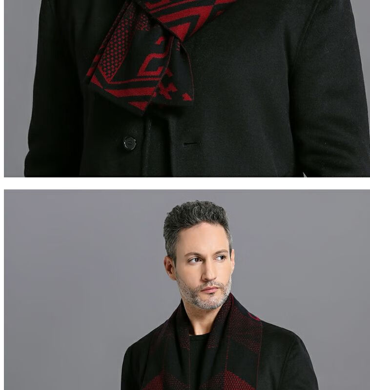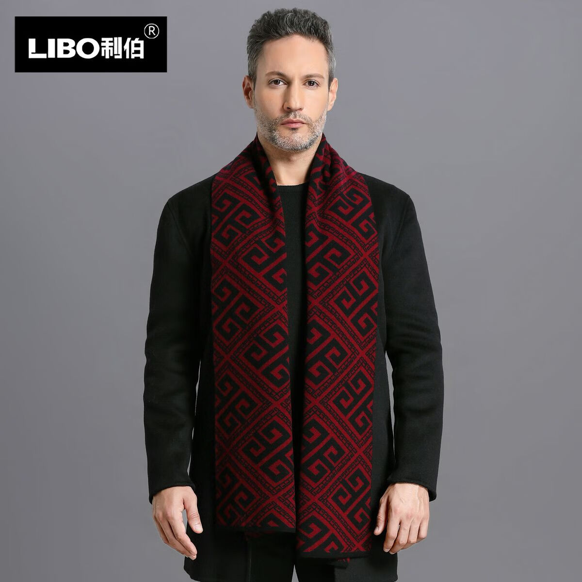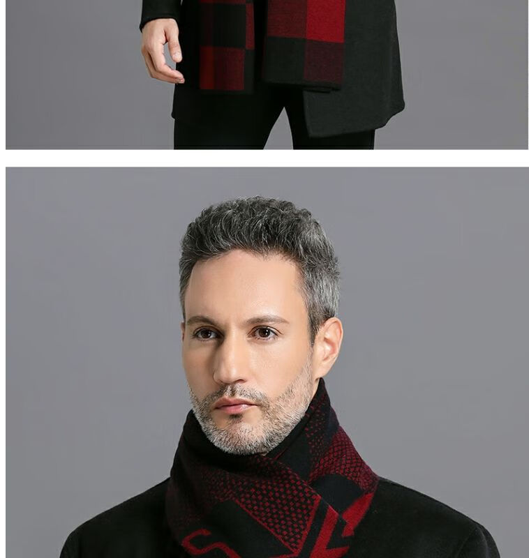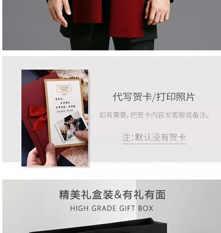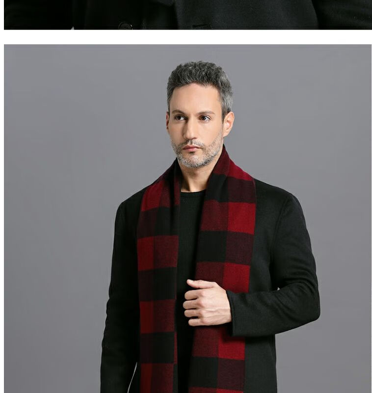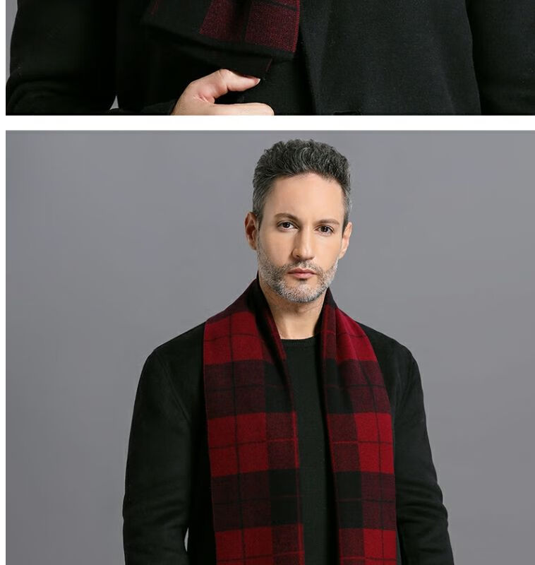 利伯纯羊毛酒红色男女士围巾冬季中老年喜庆祝寿回礼新年礼物送礼盒装 酒红色8277礼盒装
