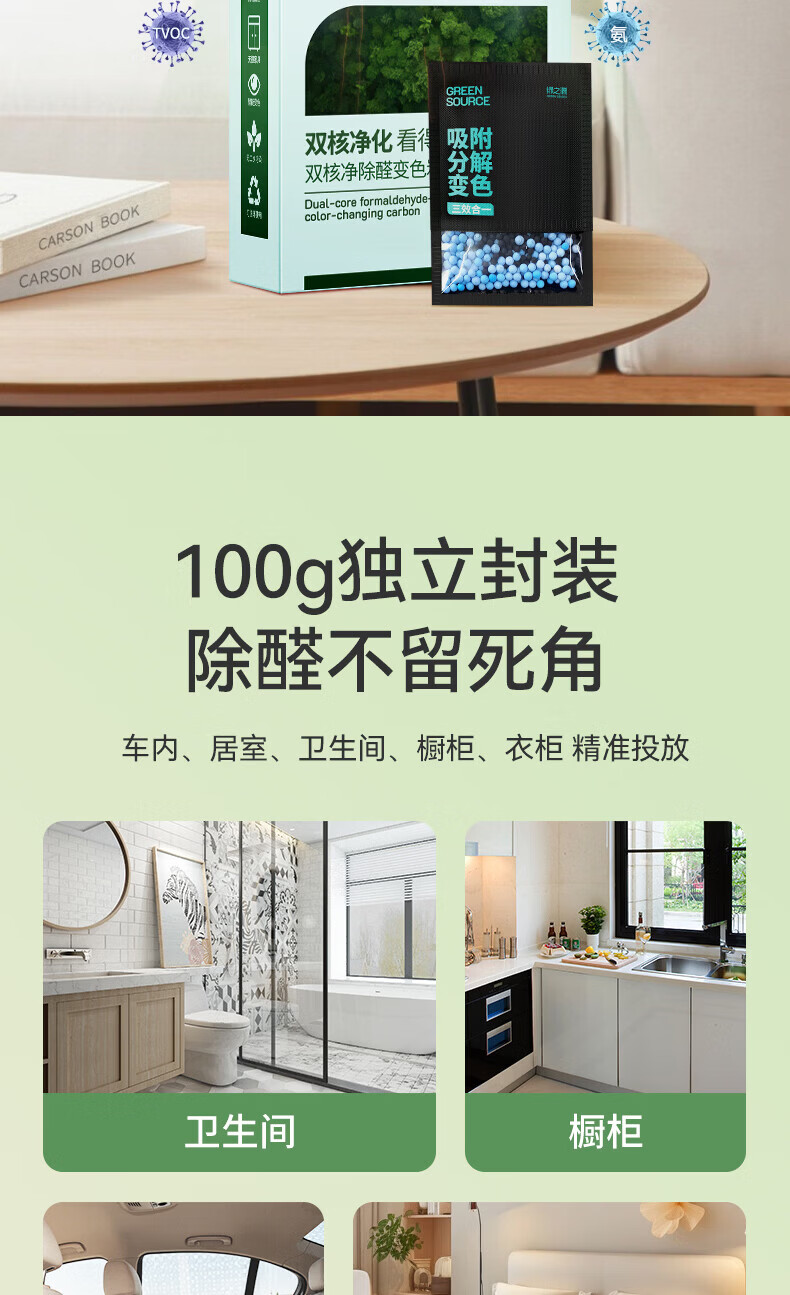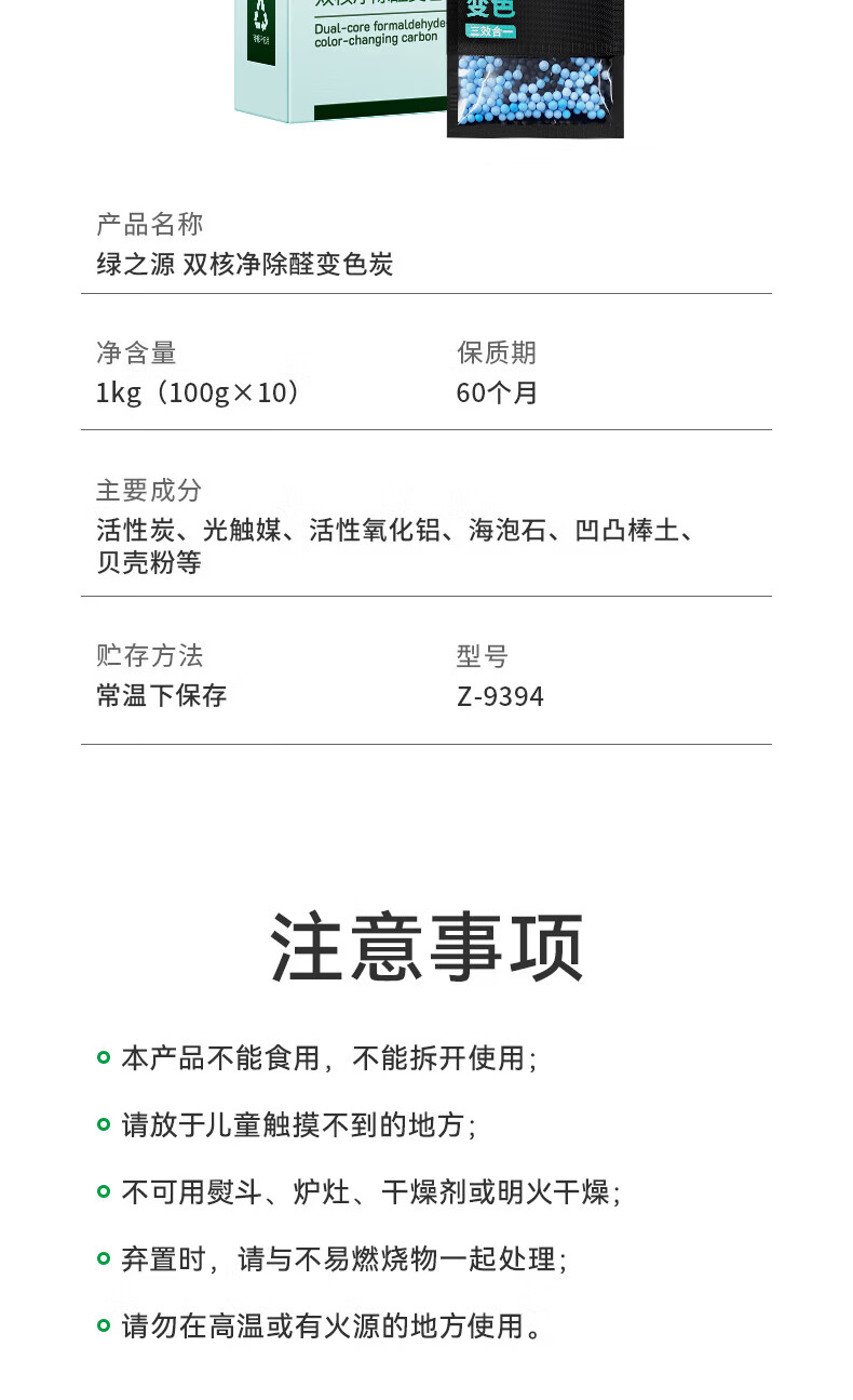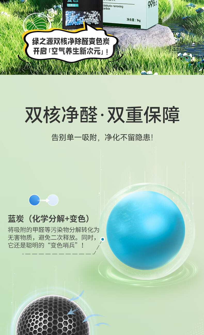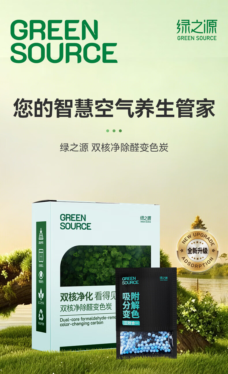 绿之源活性炭除醛变色炭包 新房车除甲醛除异味车内除臭除味汽车碳包 双核净化可视变色炭丨1kg 1kg 1箱
