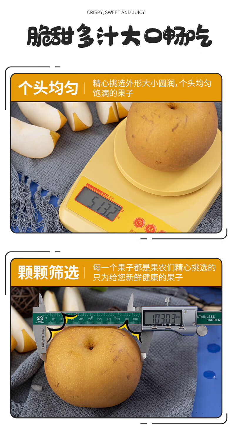 JDBMO秋月梨山东莱阳羊脂冰糖梨子正宗千玥膏梨水果送礼品 5斤精选商超级7-12枚净4.5斤 源头直采【精选好果】
