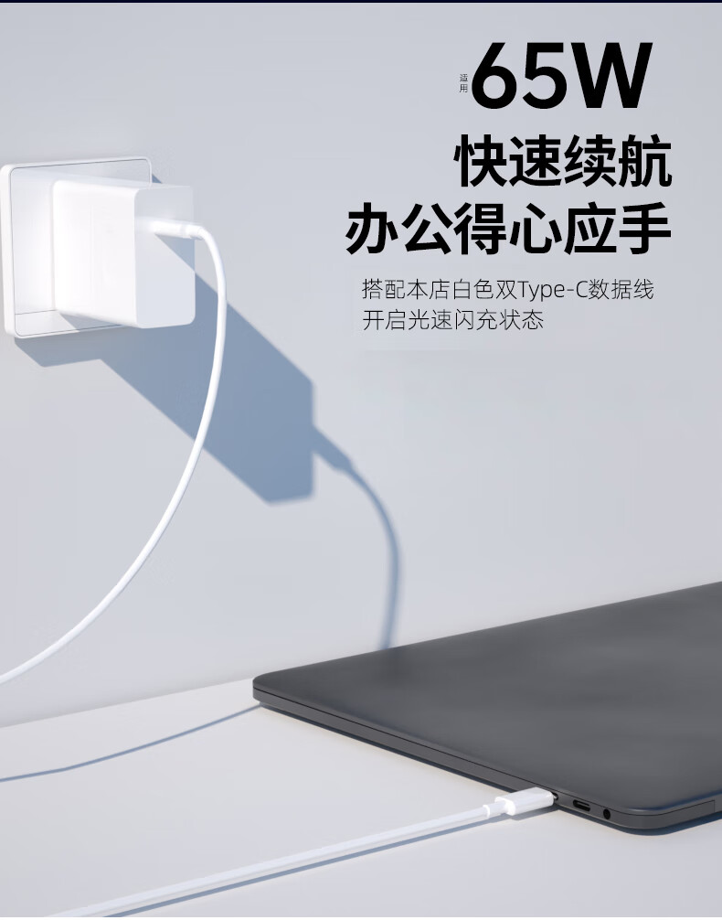 时途65w适用小米联想荣耀笔记本充电器MagicBook13/Art/pro/14/15电脑超级快充电头线套装双typec 【套装】头+1米线