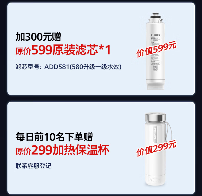 飞利浦净水器家用净化加热直饮一体机RO反渗透净饮机富锶矿化免安装台式即热式饮水机 水通道蛋白ADD8638 升级款一级水效ADD8638