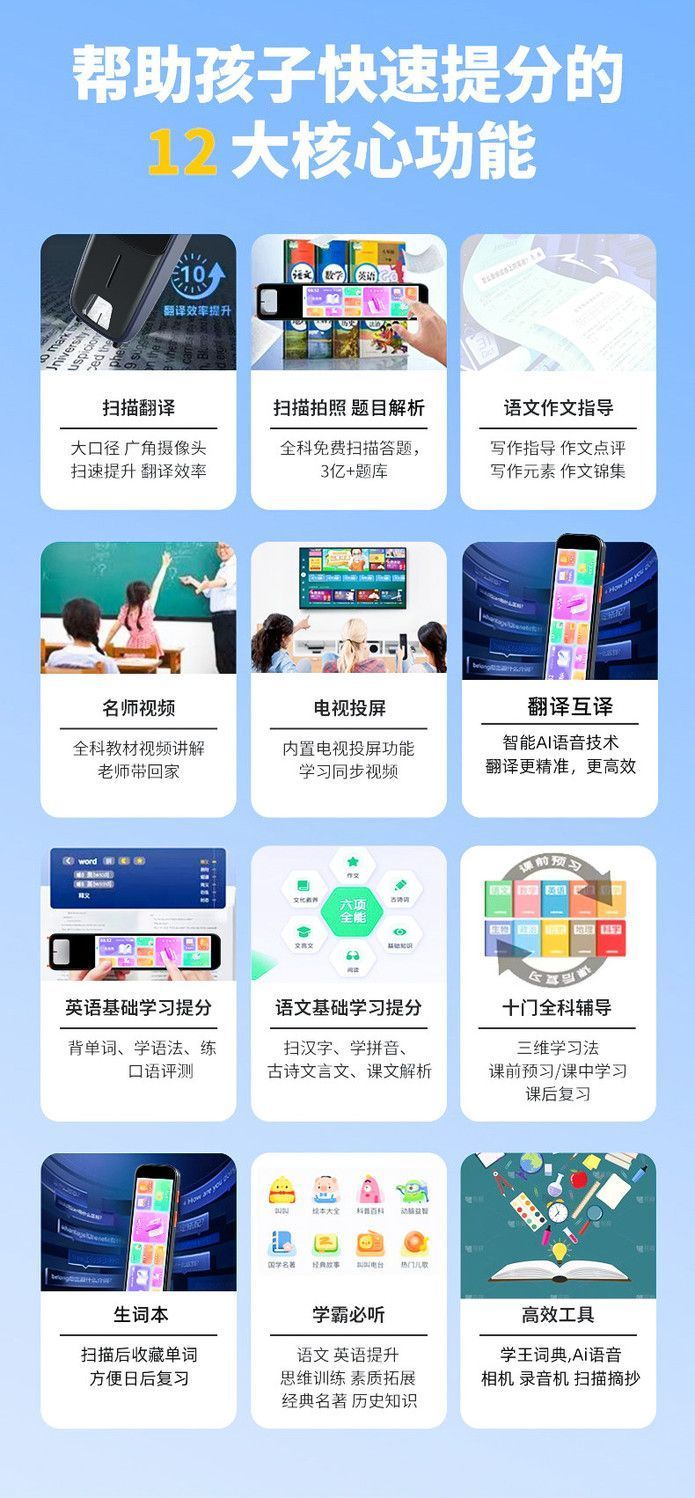 ZXJE科大讯飞翻译技术英语词典笔拍照扫描笔智能点读笔离线翻译小初高大学通用 皎白--使用-名师视频-极速识别-离线扫描 4GB 拍照搜题(带摄像头)【+512G】高清屏幕-不限书