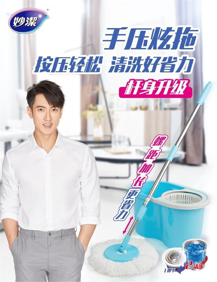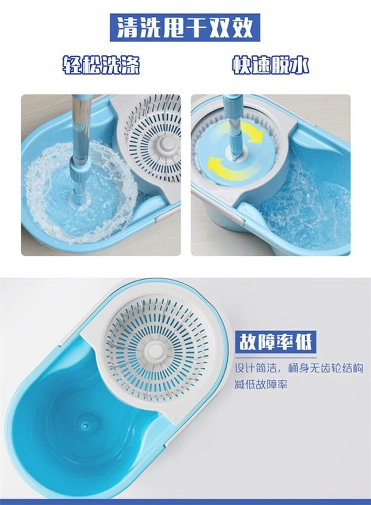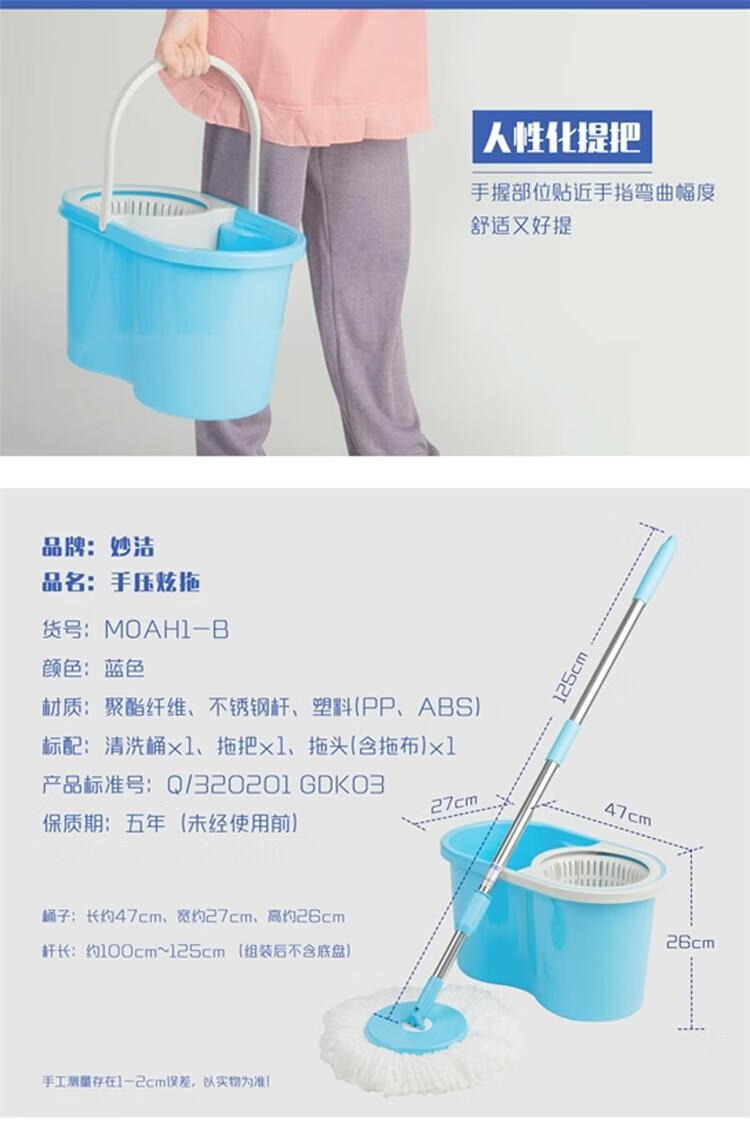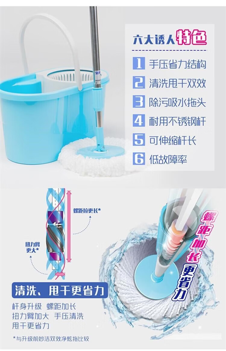 妙洁(MIAOJIE)旋转拖把桶家用一拖净 免手洗干湿两用墩布带桶拖布套装 旋转拖把