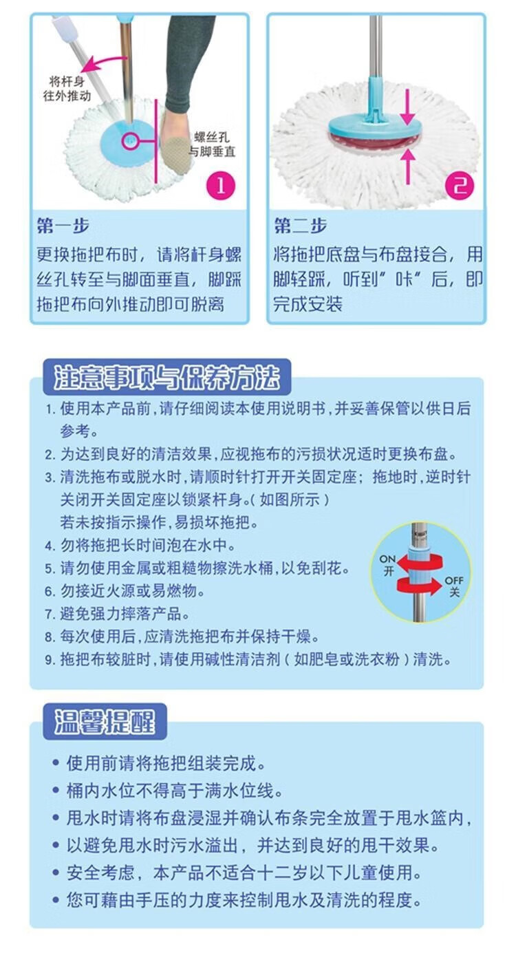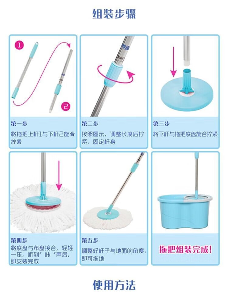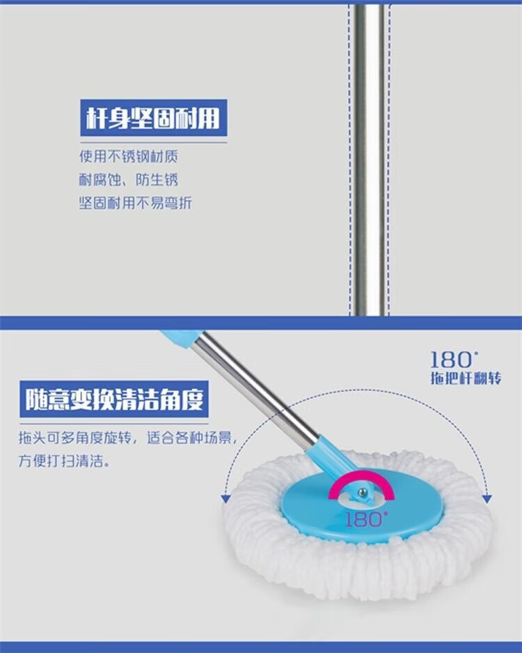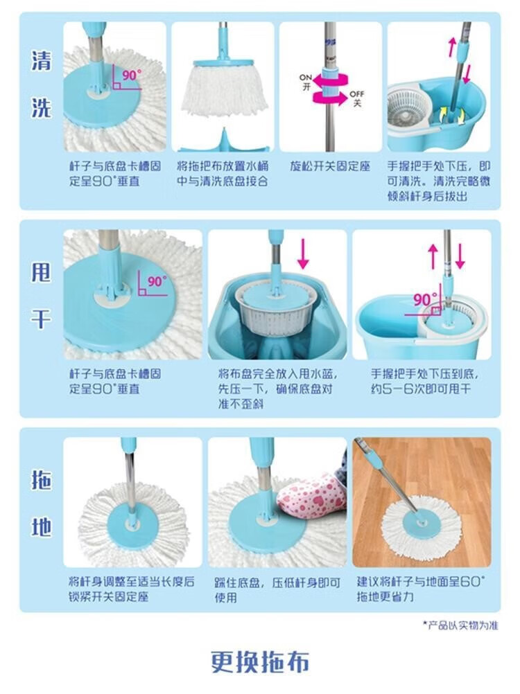 妙洁(MIAOJIE)旋转拖把桶家用一拖净 免手洗干湿两用墩布带桶拖布套装 旋转拖把