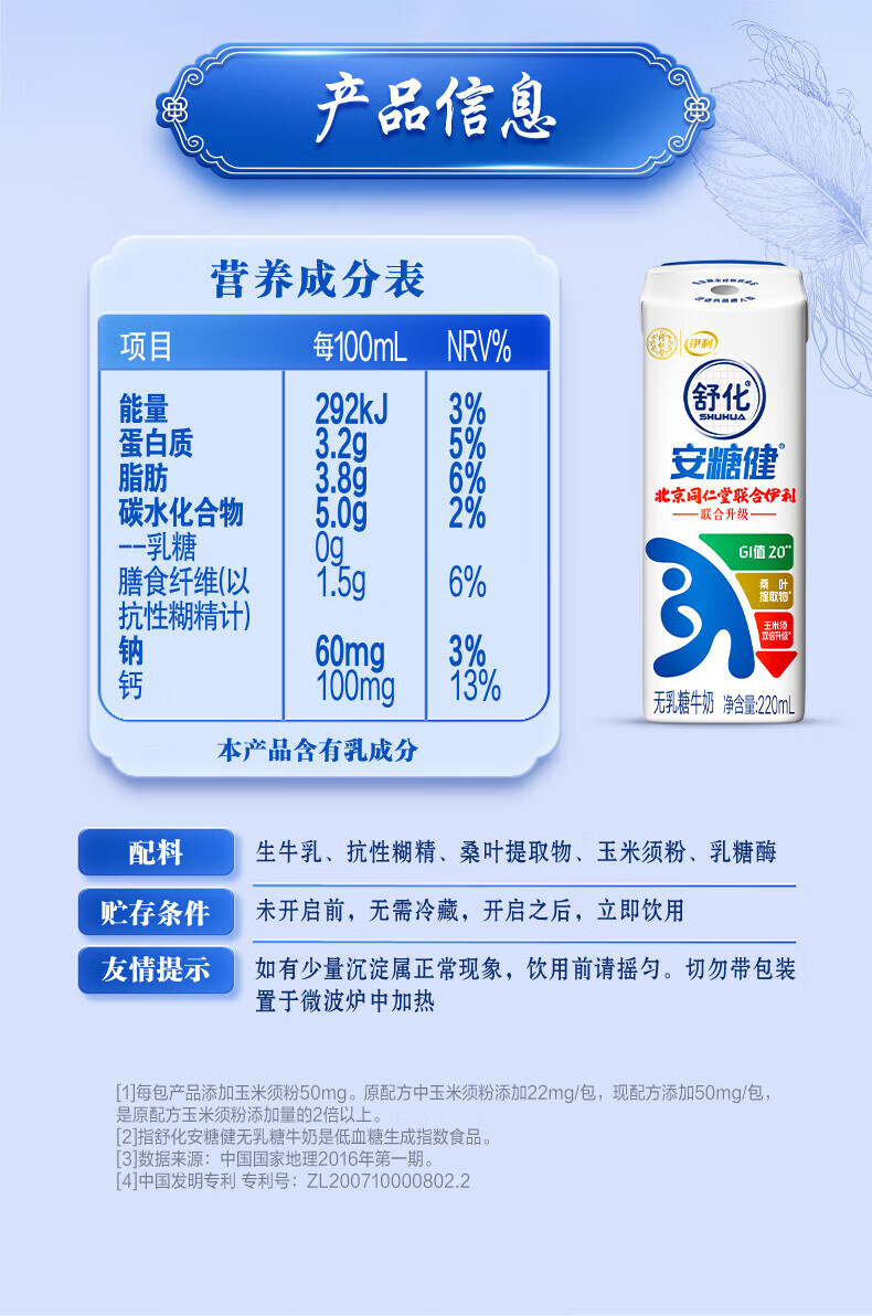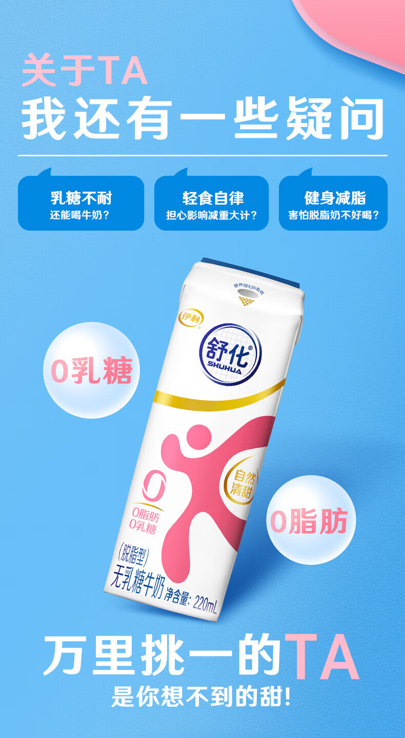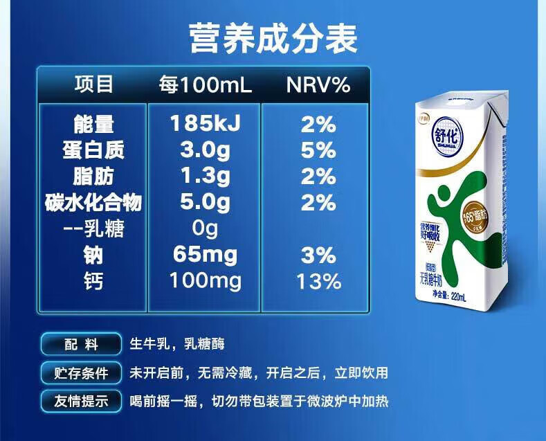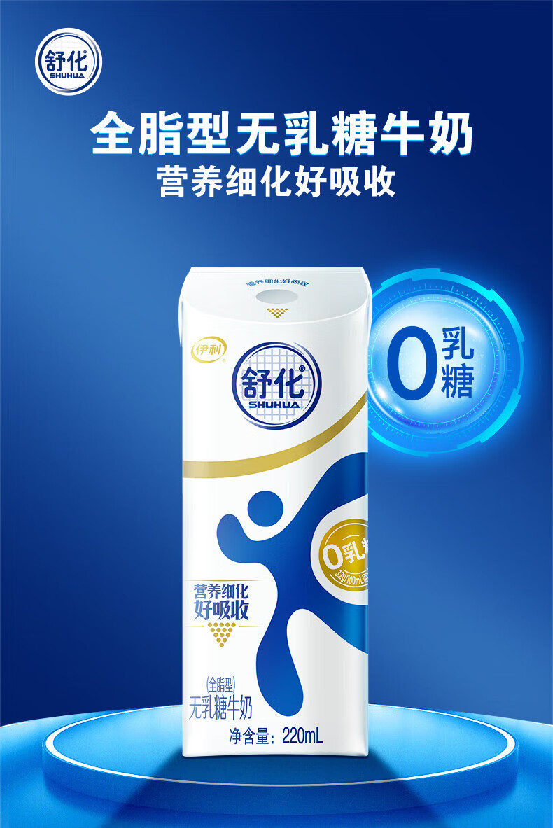伊利舒化无乳糖牛奶系列零乳糖 营养细化 多种规格可选 年货礼盒 【高钙】舒化0乳糖牛奶220ml*24盒/箱