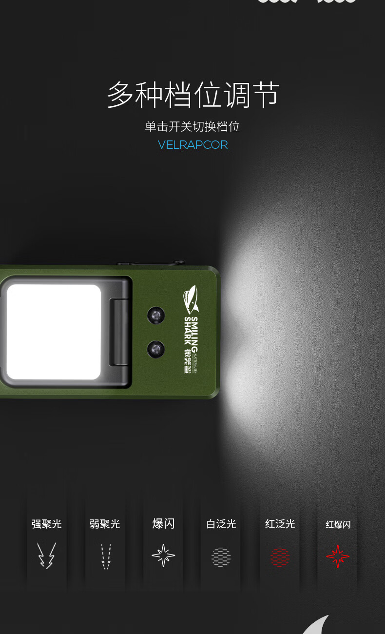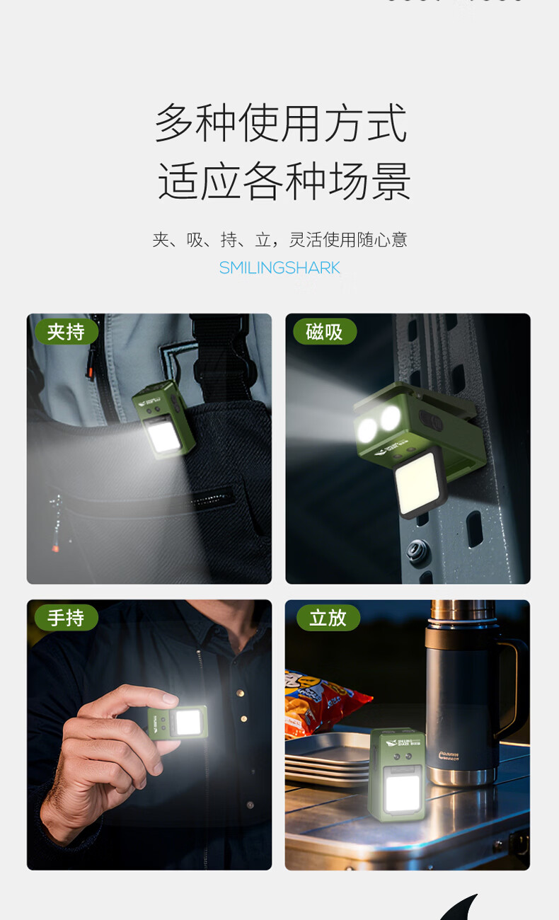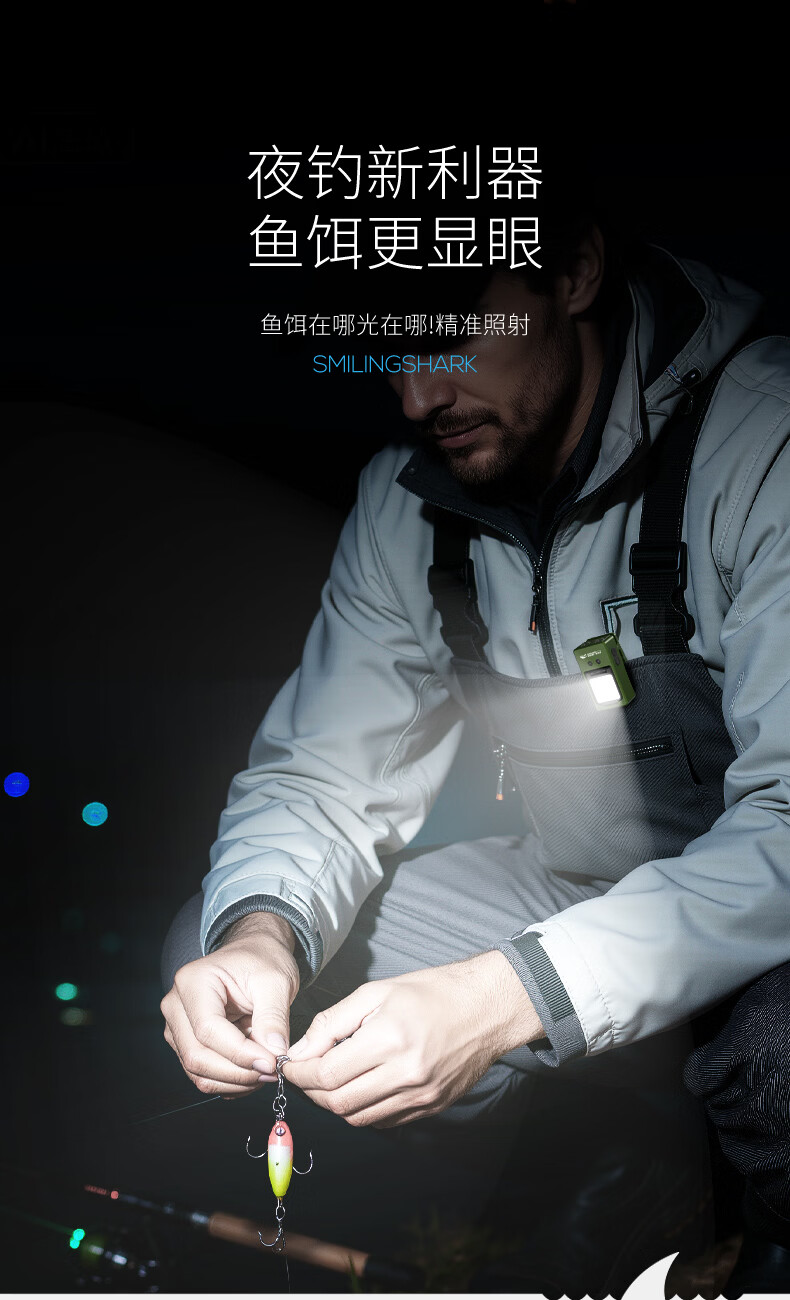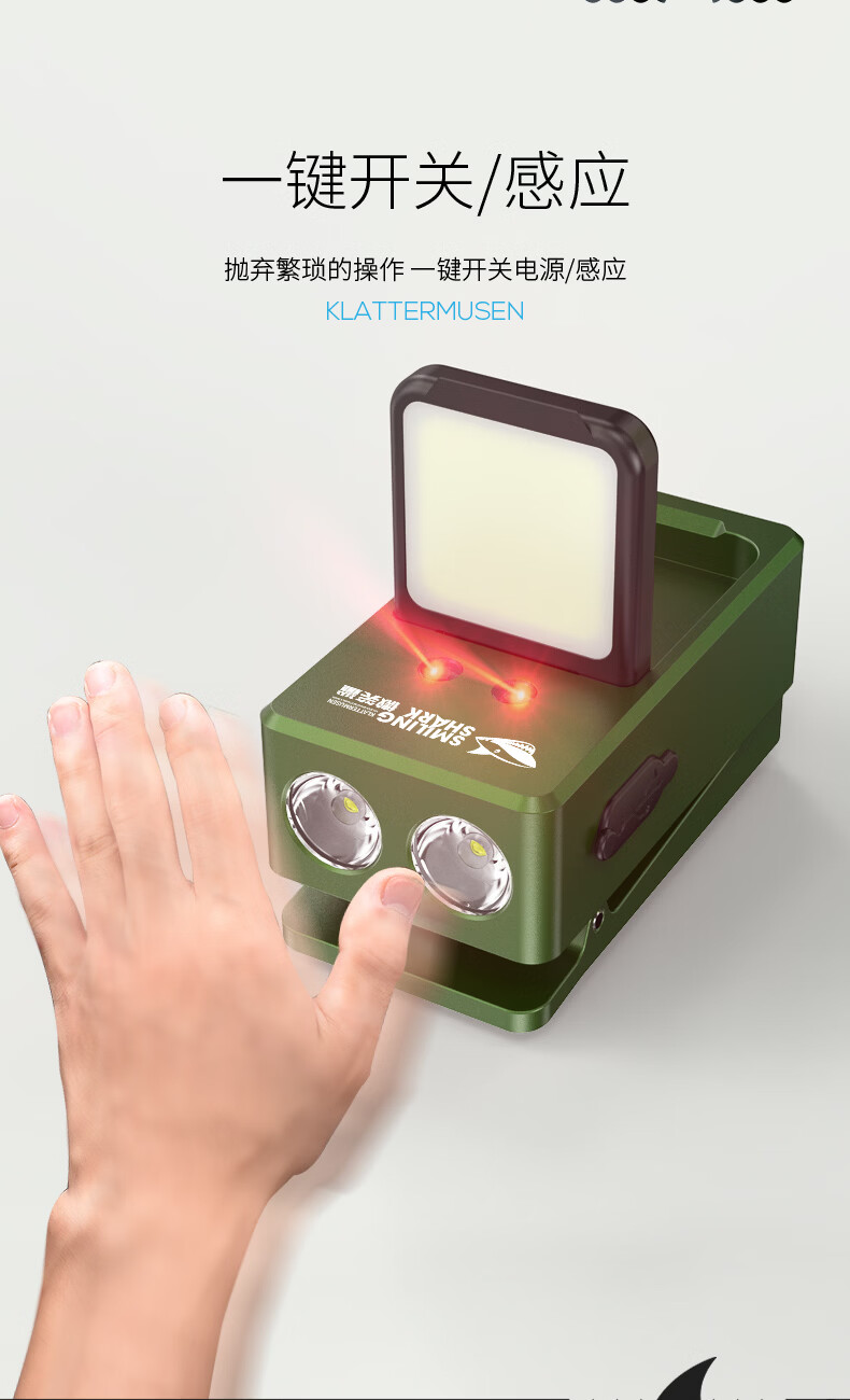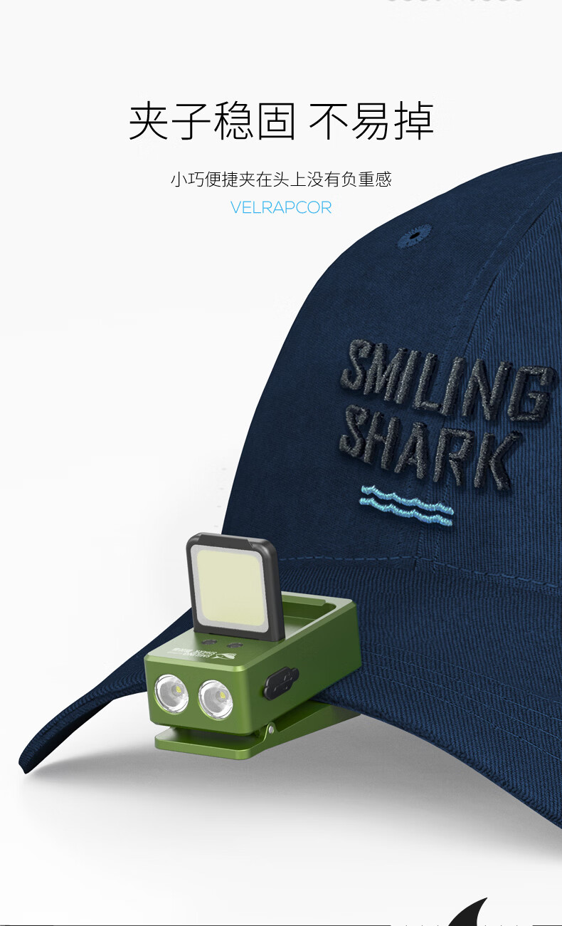 微笑鲨夹帽灯感应夜钓鱼灯可充电强光头灯超亮登山夜爬灯户外徒步夜跑灯 绿色款【可感应夹子灯-带磁吸】钓鱼/夜跑/登山 挥手感应+尾部磁吸+小巧便携