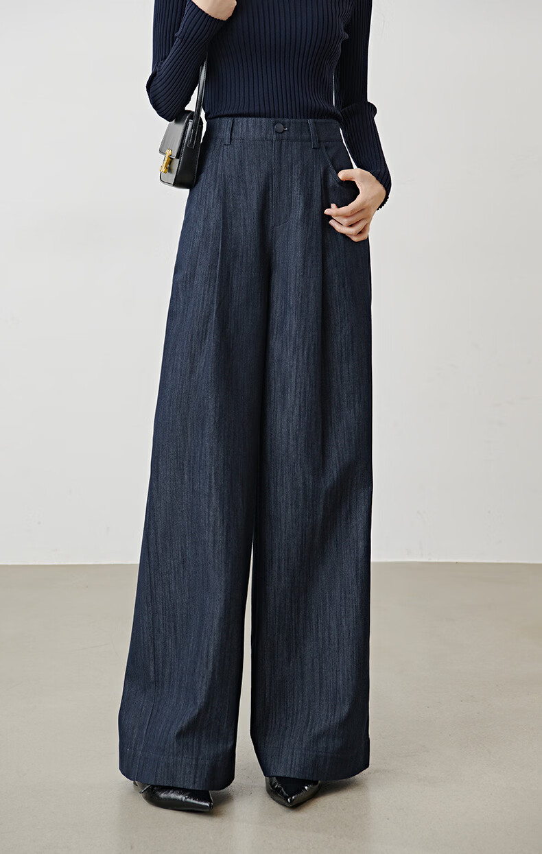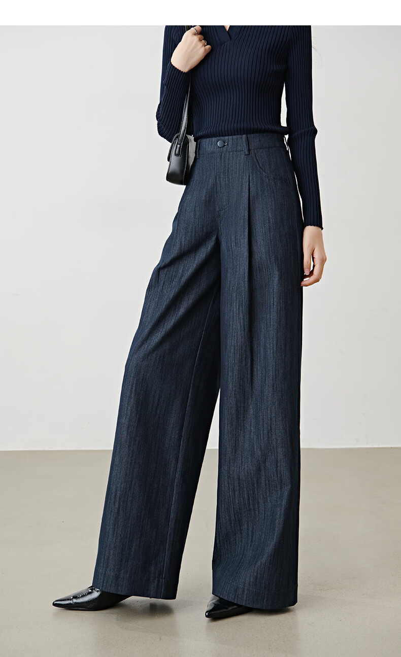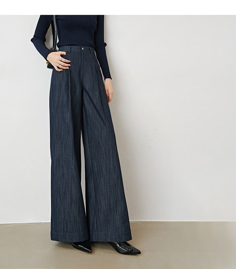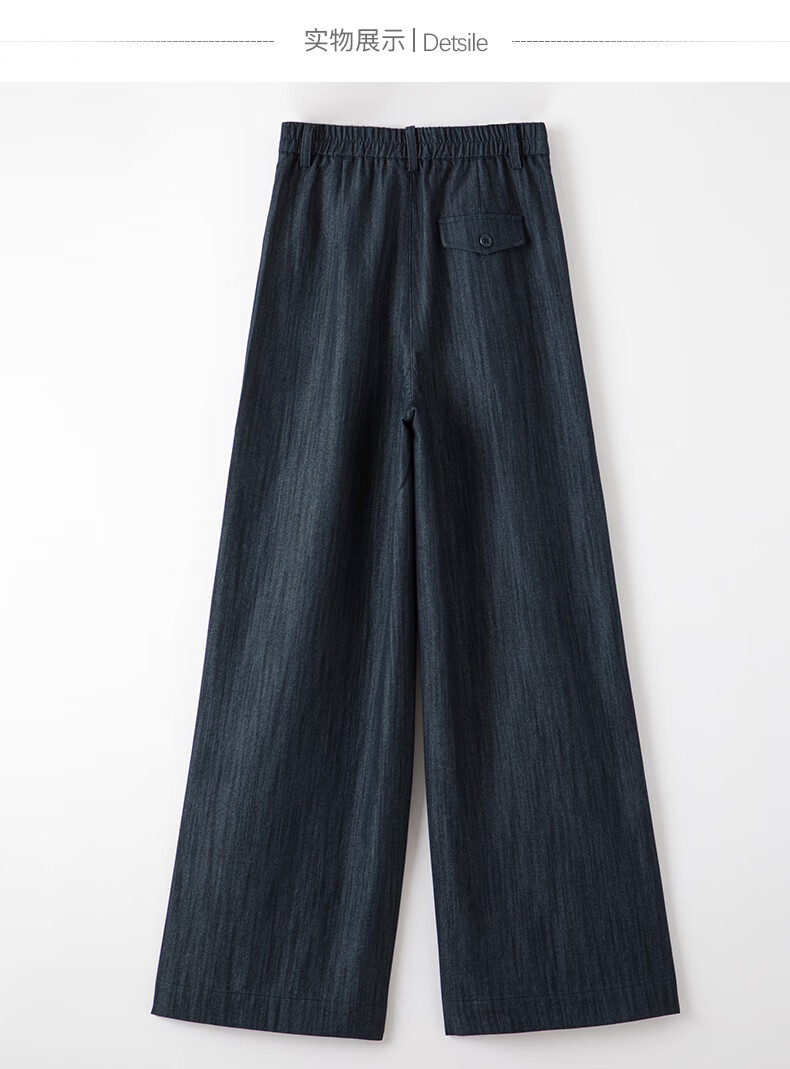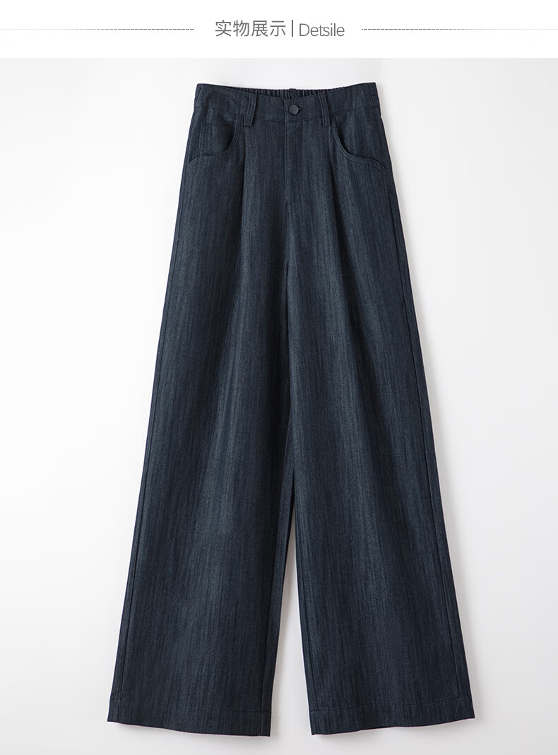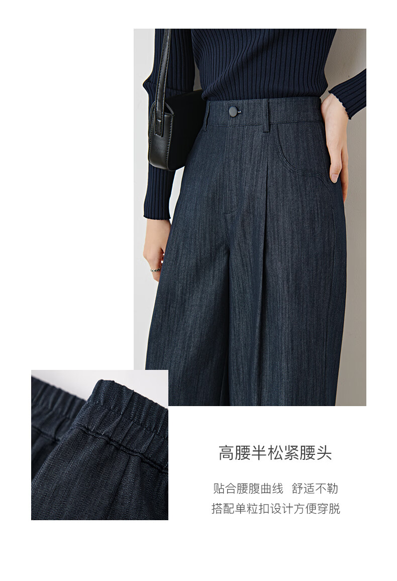 晚白2026年春款时尚简约固色工艺棉料裤子高腰显瘦轻量感窄版阔腿裤女 深蓝色 28