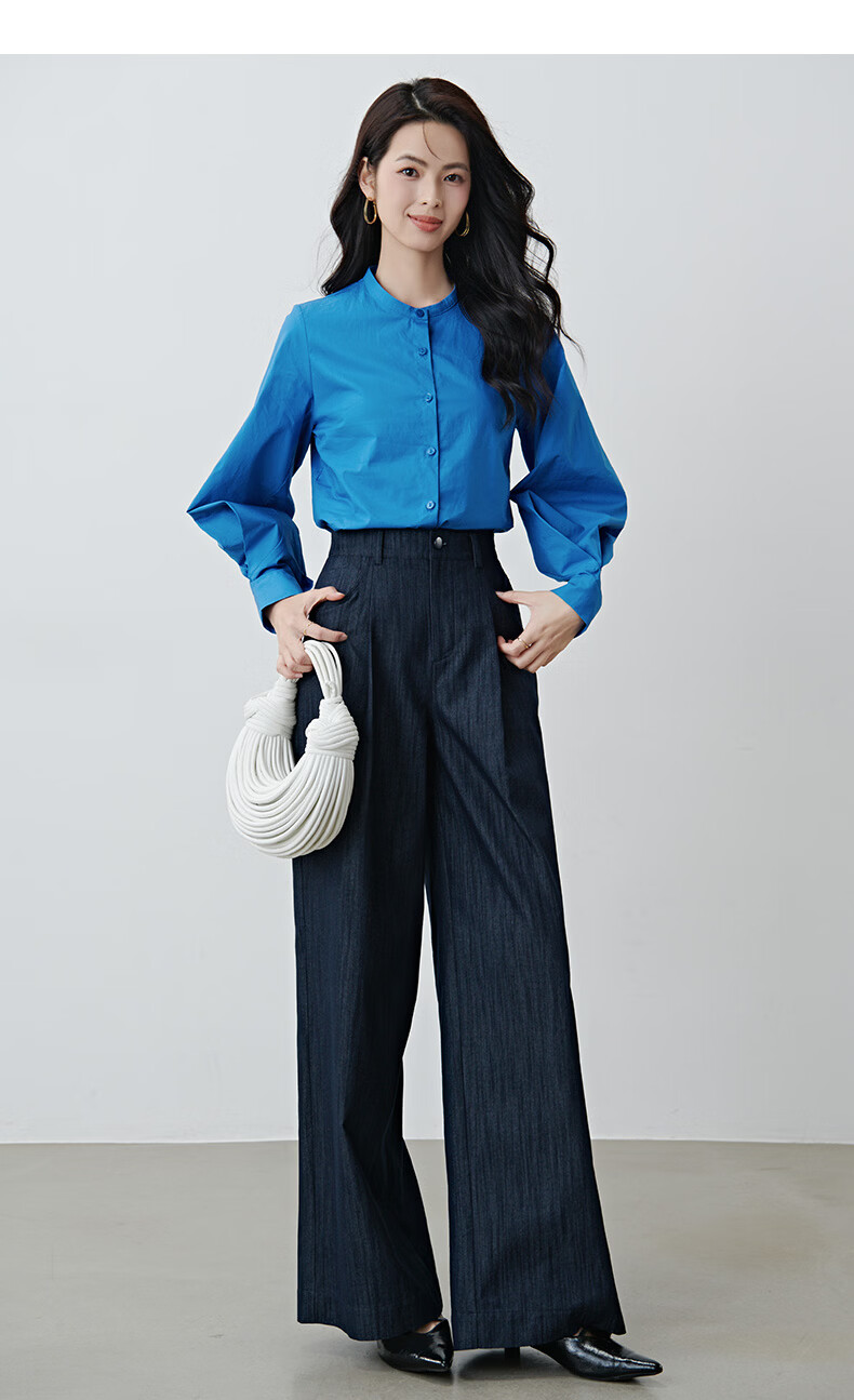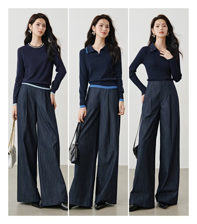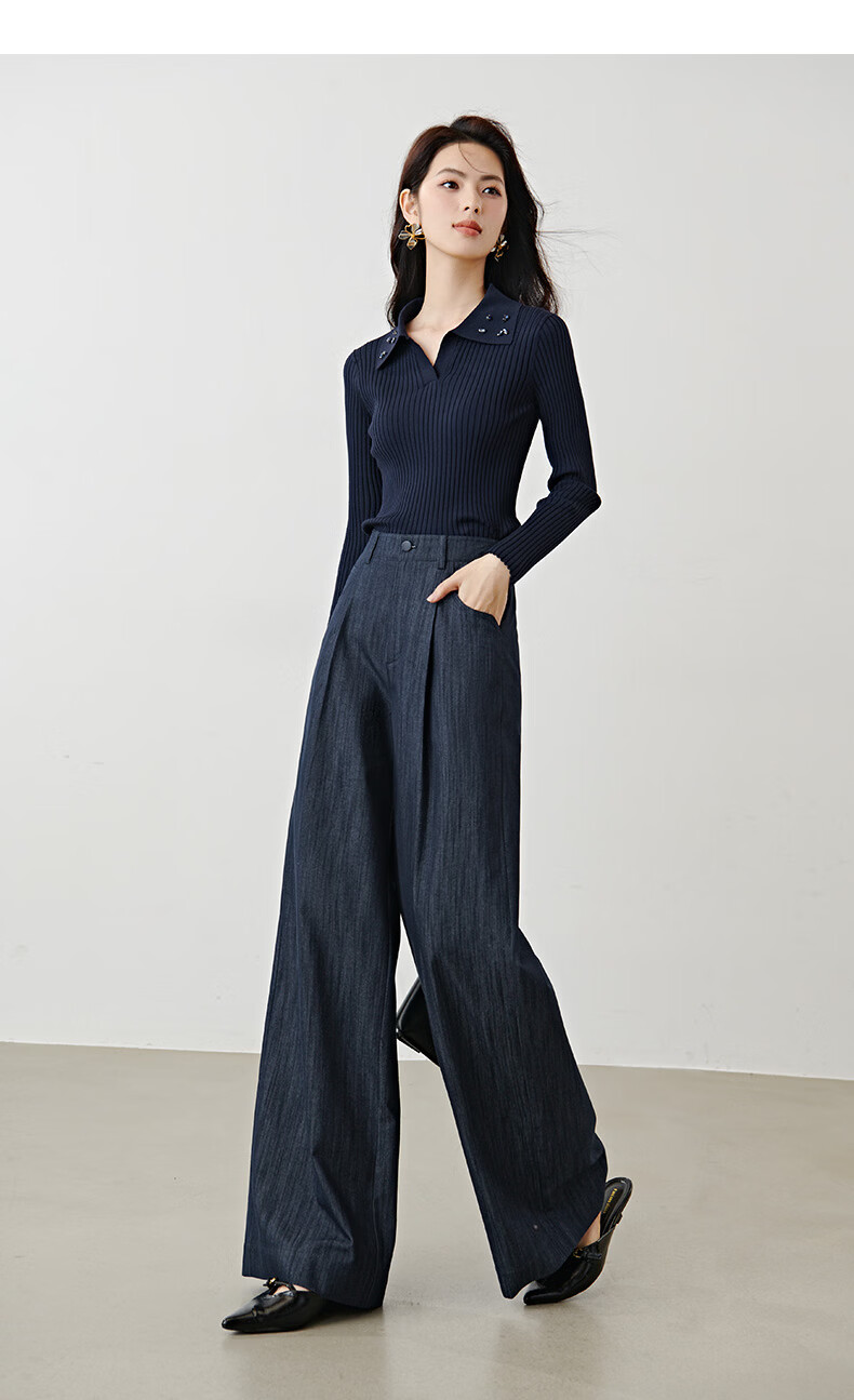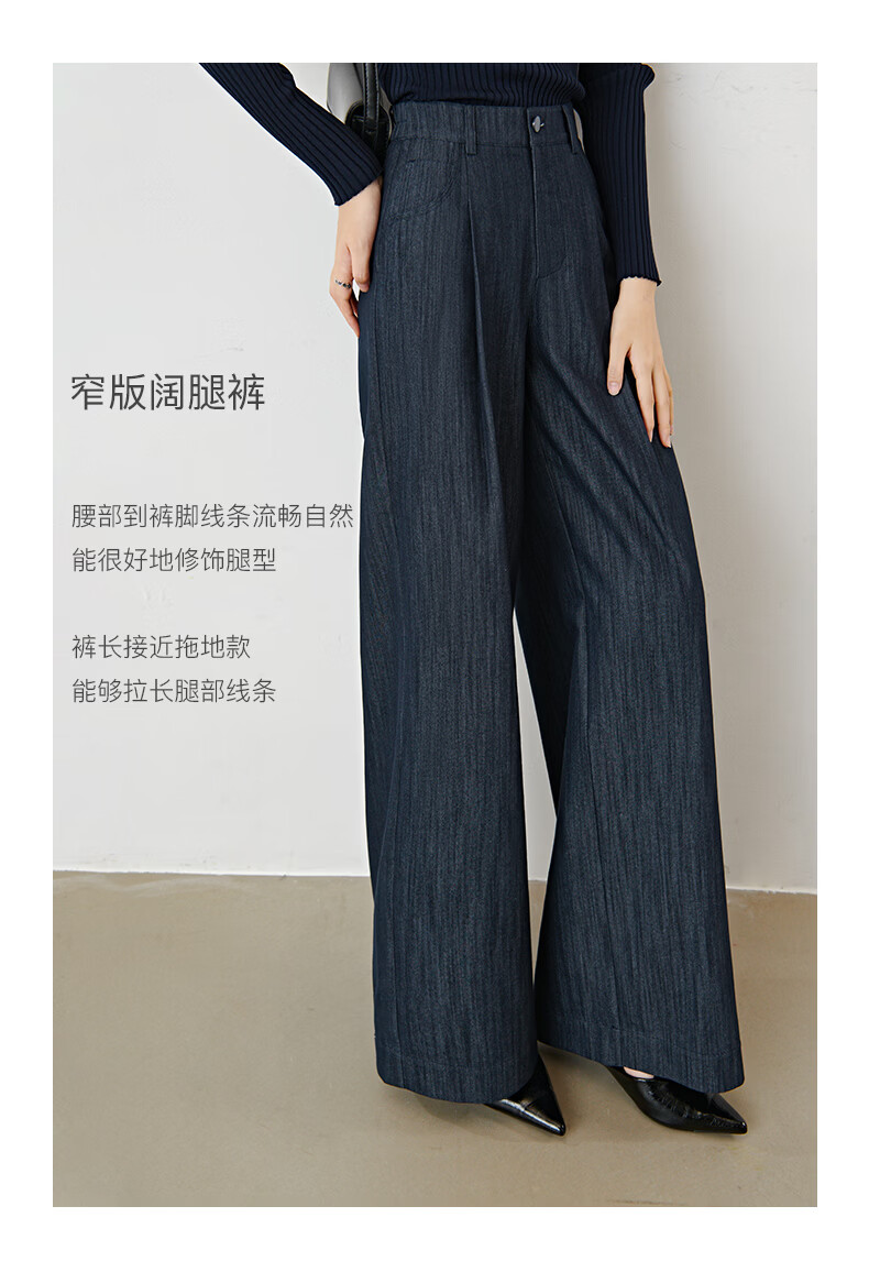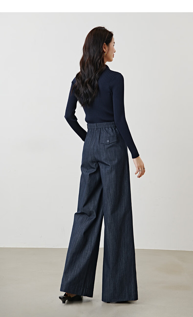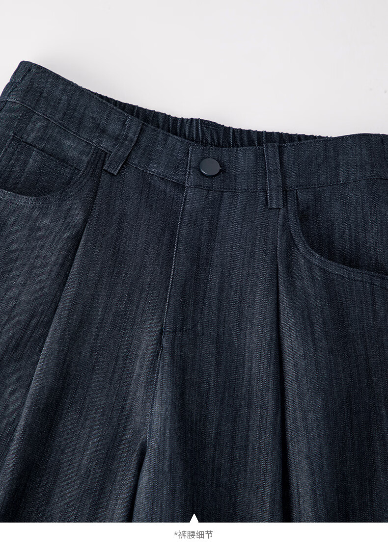 晚白2026年春款时尚简约固色工艺棉料裤子高腰显瘦轻量感窄版阔腿裤女 深蓝色 28