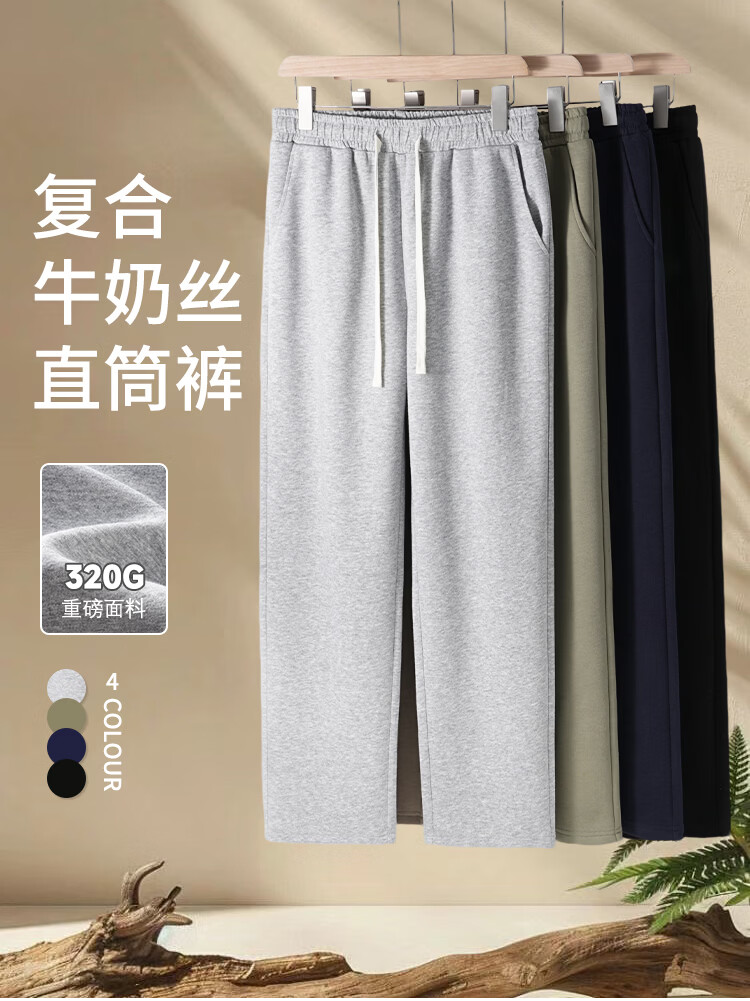 真维斯(Jeanswest)直筒休闲裤男士阔腿长裤2026春秋季青少年运动裤大码宽松垂感长裤 橄榄绿 棕系笔刷心_K M