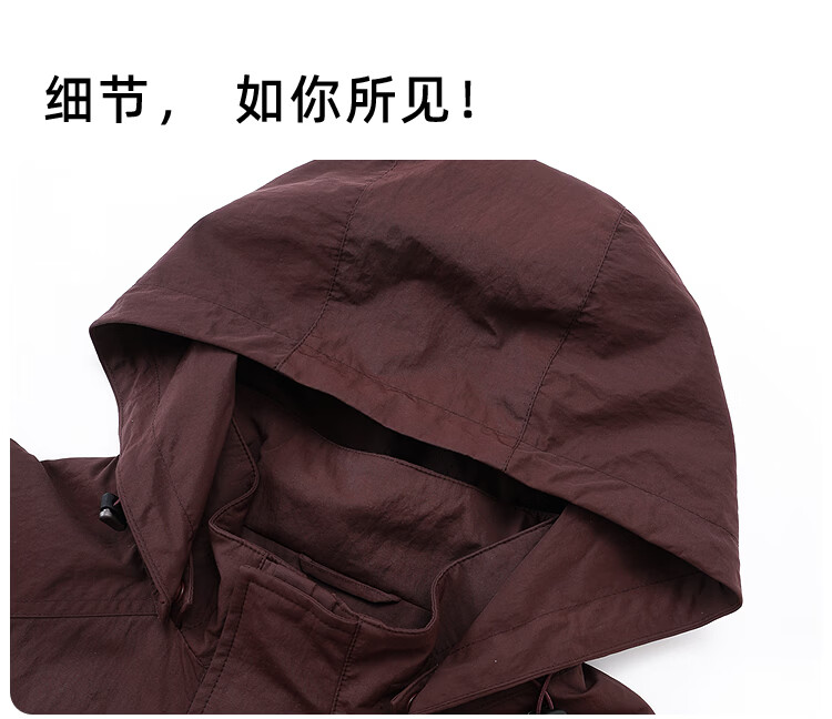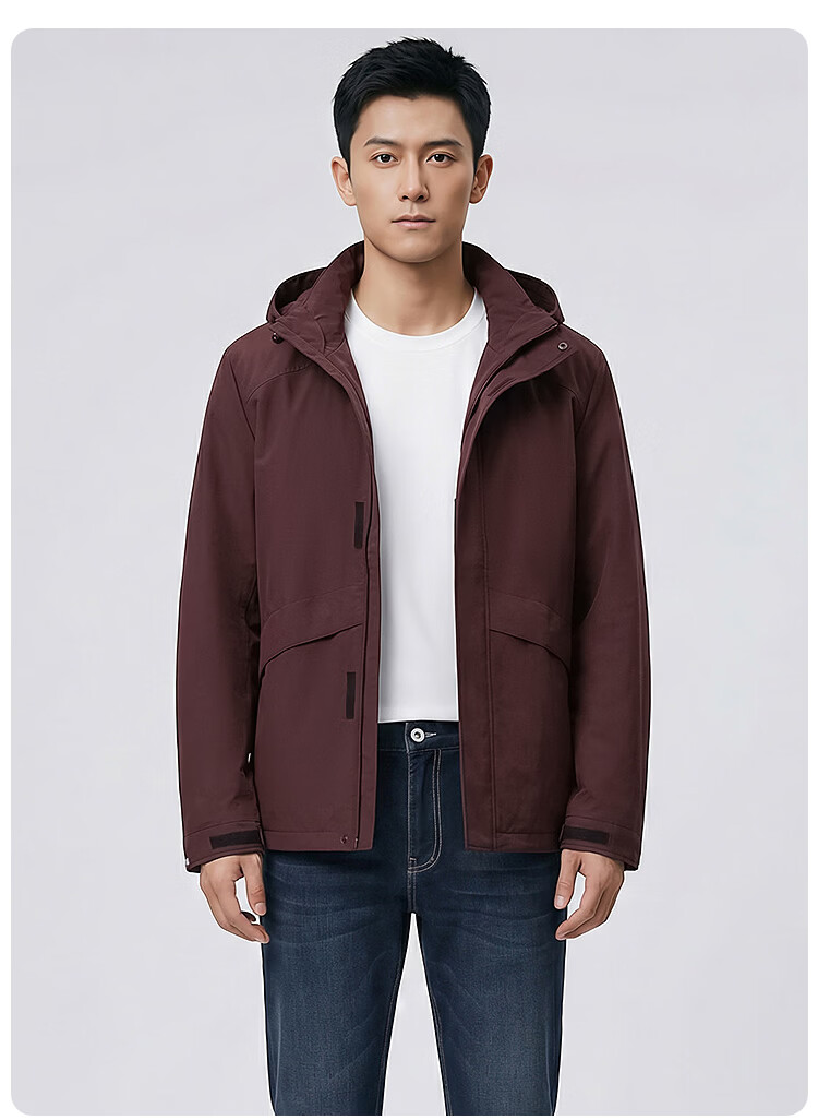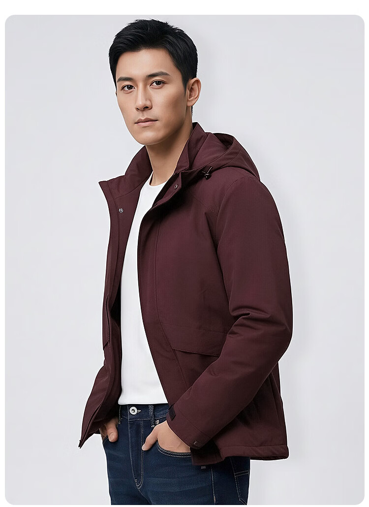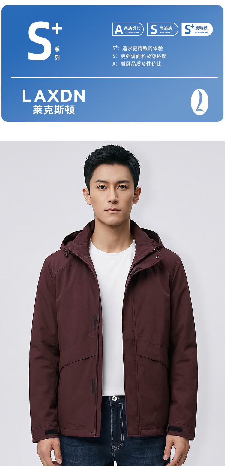 莱克斯顿(laxdn)夹克外套男春秋微皱面料可脱卸帽纯色休闲简约修身上衣男装 紫红色 S