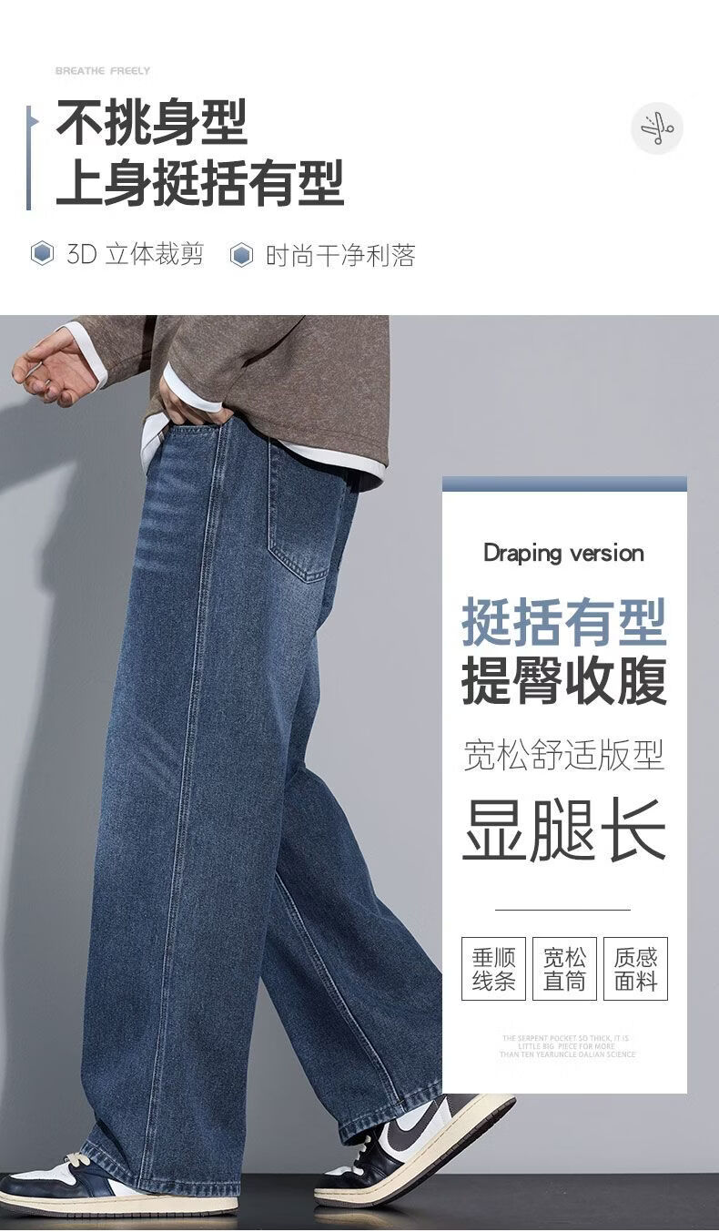 真维斯(Jeanswest)2026秋冬潮牌美式复古水洗牛仔裤男新款垂感宽松百搭休闲直筒裤 灰色 M