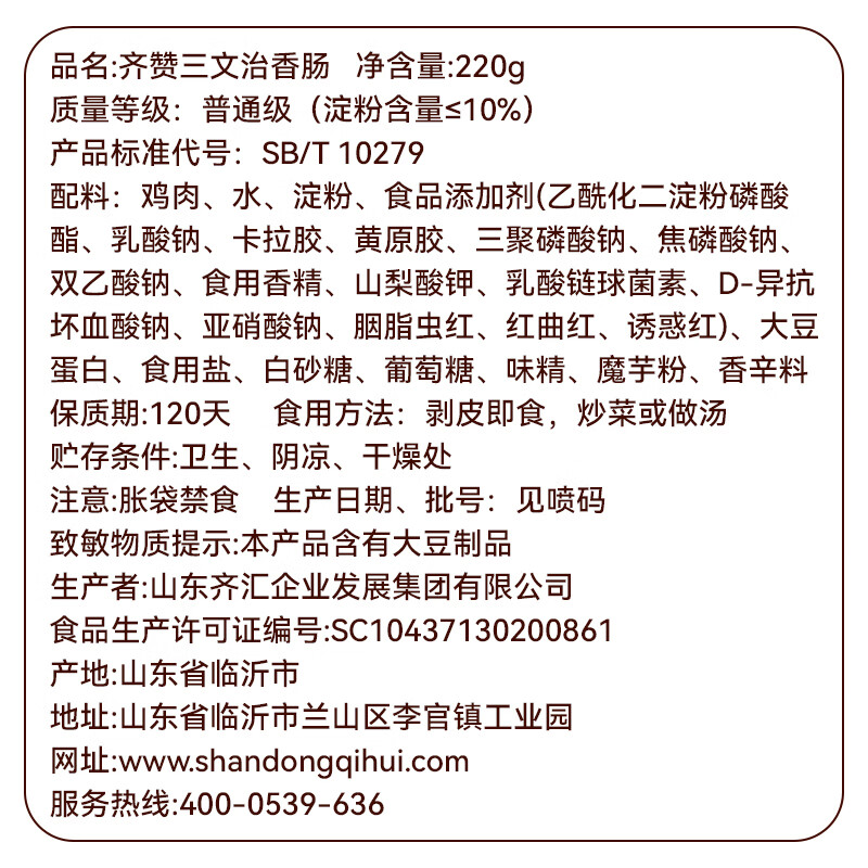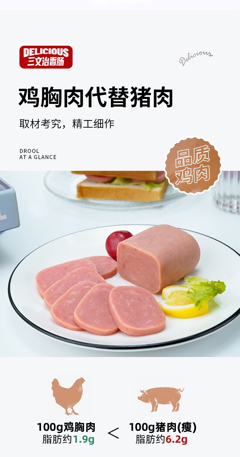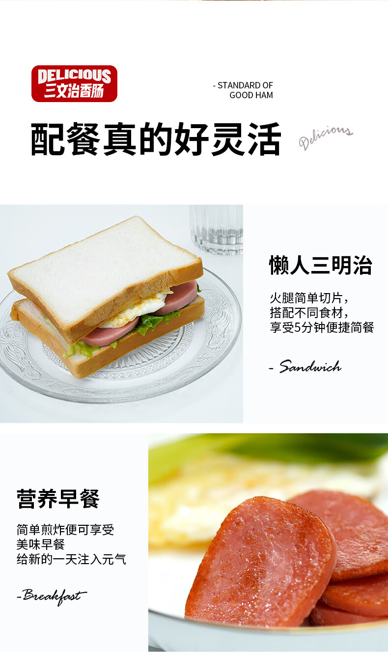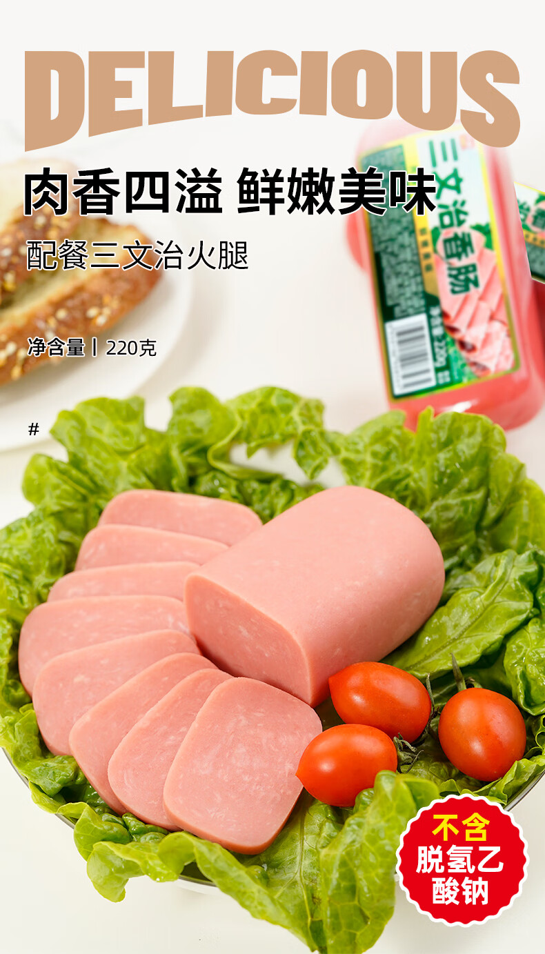 齐赞三文治火腿午餐肉方腿方便速食即食火腿切片早餐肠火锅食材方火腿 【三文治火腿】220g*5支