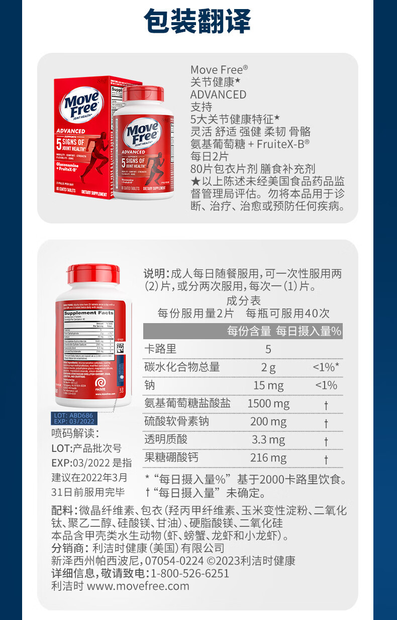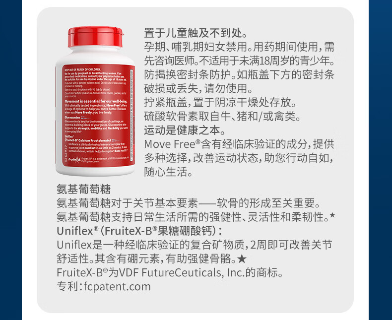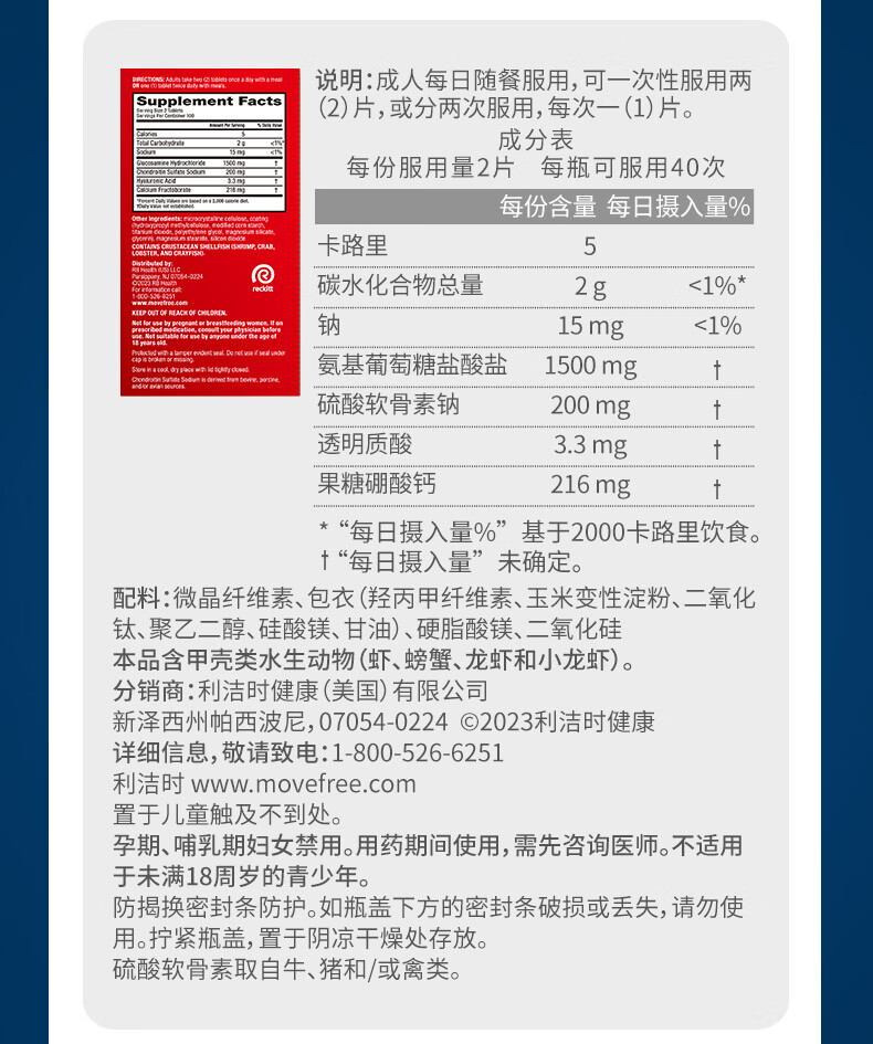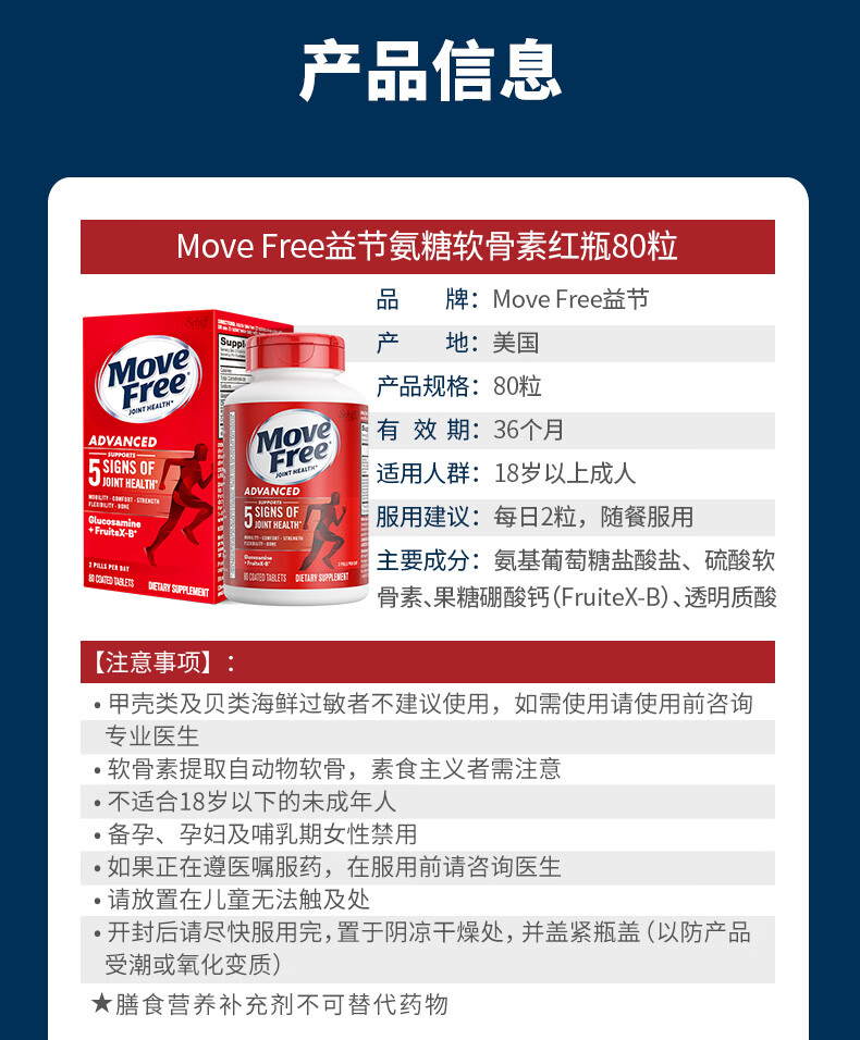 益节(Move Free)氨糖软骨素维骨力 美国原装进口 成人中老年人 【320粒】红瓶氨糖 80粒*4瓶