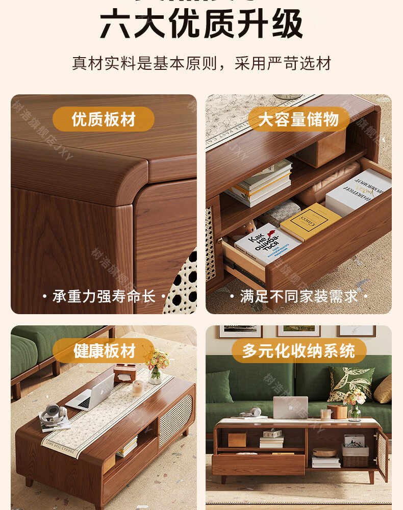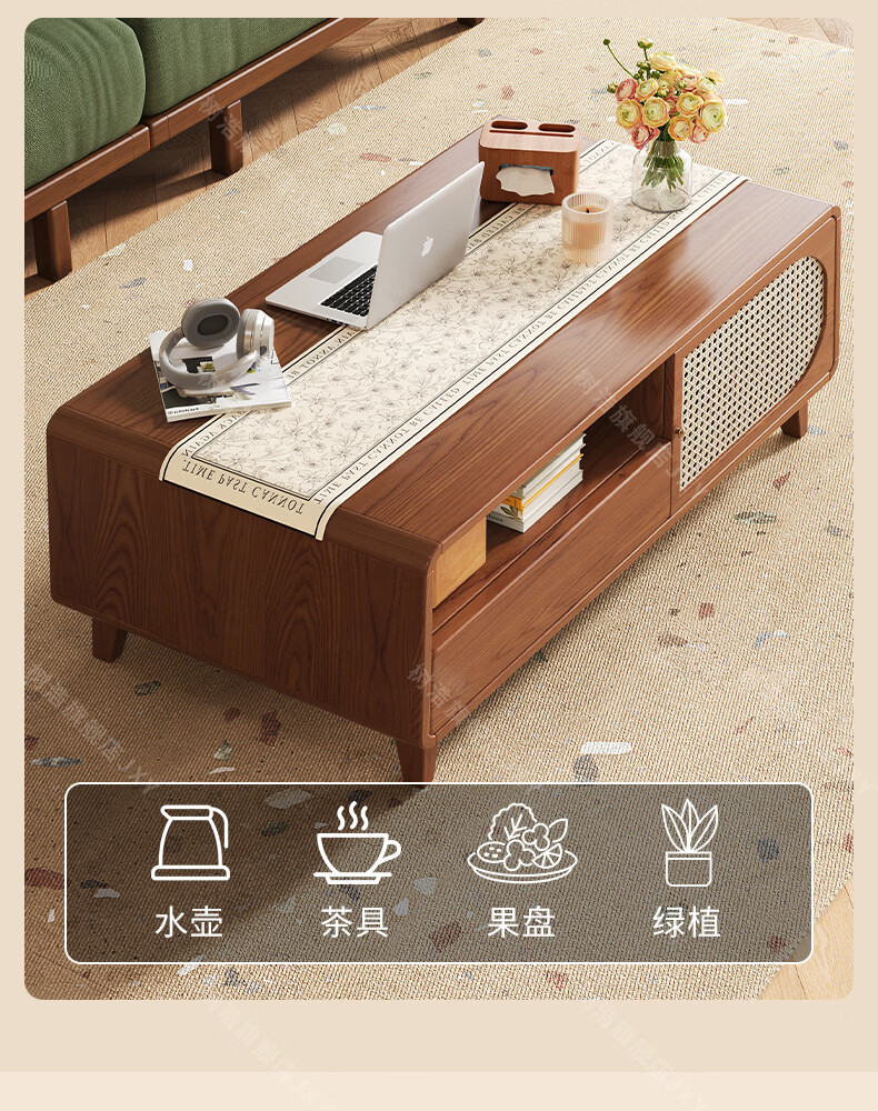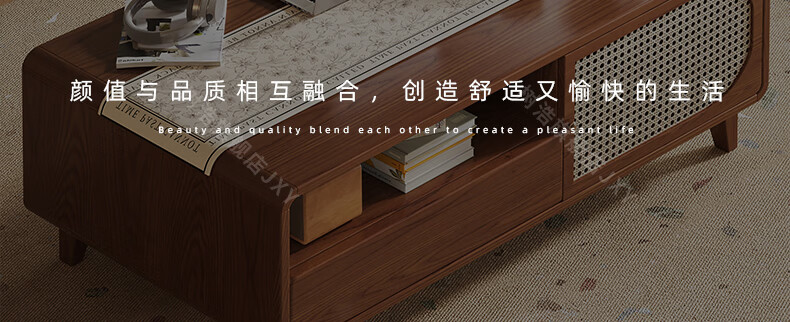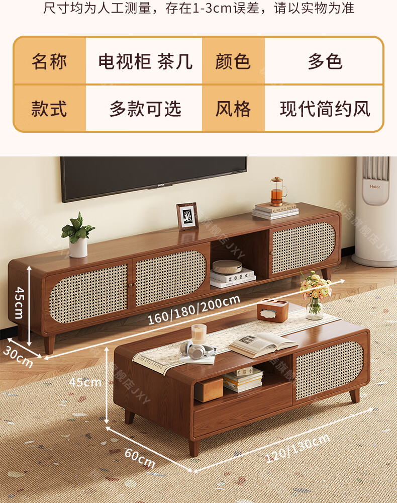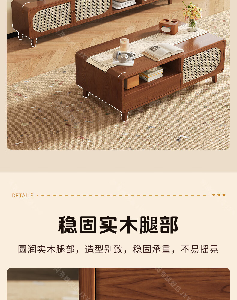 树浩茶几客厅茶桌茶台出租房置物架电视柜组合小户型储物柜简约风桌子 胡桃色-藤编款式【茶几】120双门双抽款